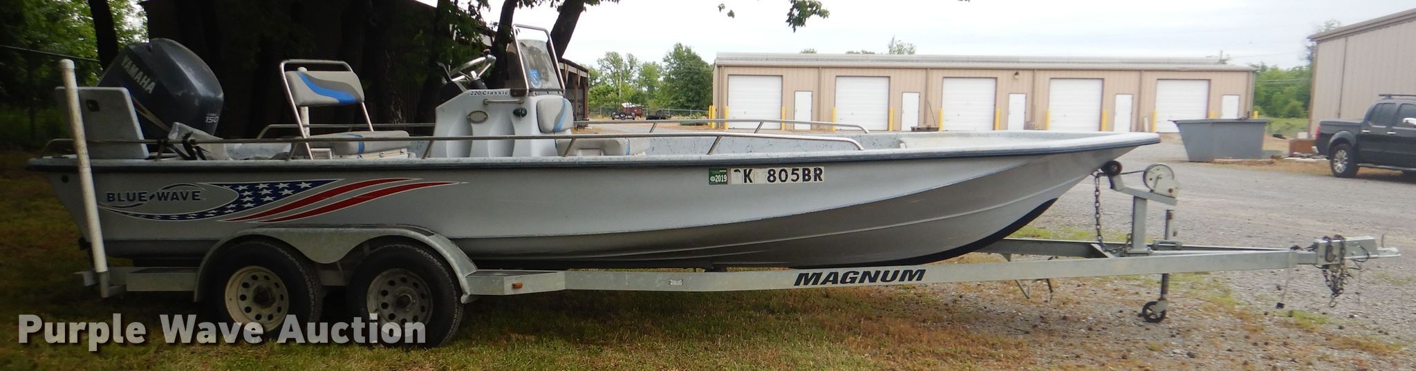 2005 Bluewave 220 Classic boat. Length: 22', Hull ID: PWV072671405. Engine Engine type: Outboard, 2005 Yamaha 150 Four Stroke, Serial: 63PL1020334, Displacement: 2.7L, Cylinders: 4, Fuel type: Gas, HP: 150. Trailer Magnum, Overall length: 22', Overall width: 84", Ball hitch size: 2 5/16", Axles: Tandem, VIN 1VAA242251347387. Notes Lower unit missing, No prop, Unknown operating condition. Oklahoma boat and motor titles. Transfer of ownership documentation for trailer will be a bill of sale. Oklahoma Department of Wildlife Conservation. 9097 N 34th St W. Porter, OK 74454