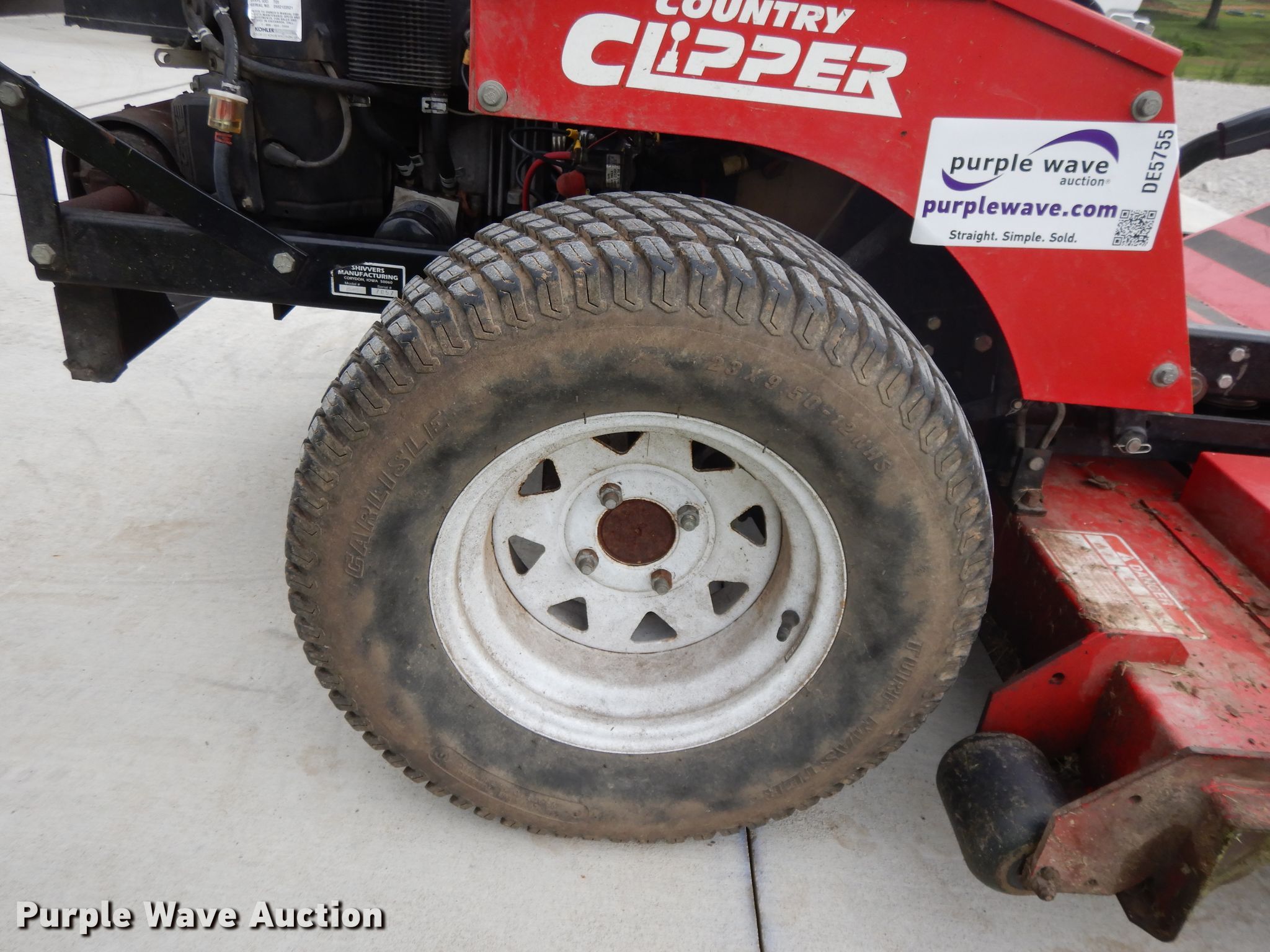 Purple Wave is selling a used Commercial Turf Mower in Missouri. This item is a Country Clipper 2504MT ZTR lawn mower with the following: 856 hours on meter, 60" cut, Kohler CV25S 725cc two cylinder gas engine, Serial 2932122521, Hydrostatic transmission, Country Clipper 6004M mower deck, 13x5.00-6 front tires, 23x9.50-12 rear tires, Serial 7057
