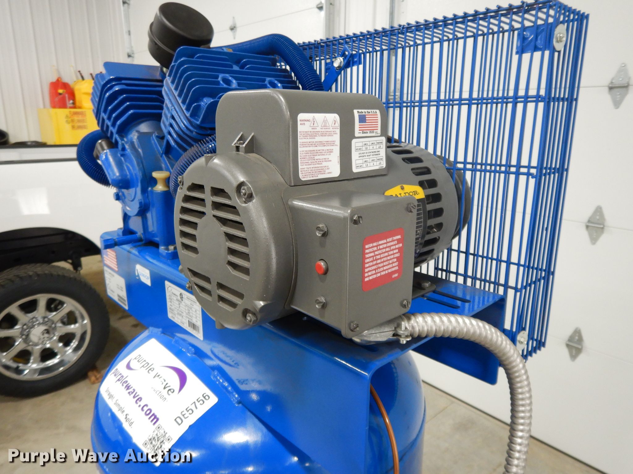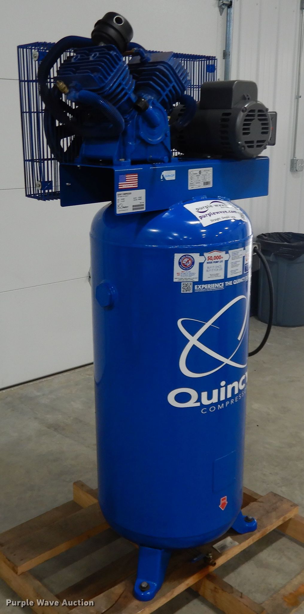 Purple Wave is selling a used Air Compressor in Missouri. This item is a 2013 Quincy QT54 air compressor with the following: Baldor electric motor, Serial W1402281210, Quincy 2V41C60VC air compressor, 15.2 CFM, 175 psi, Serial UTZ552840