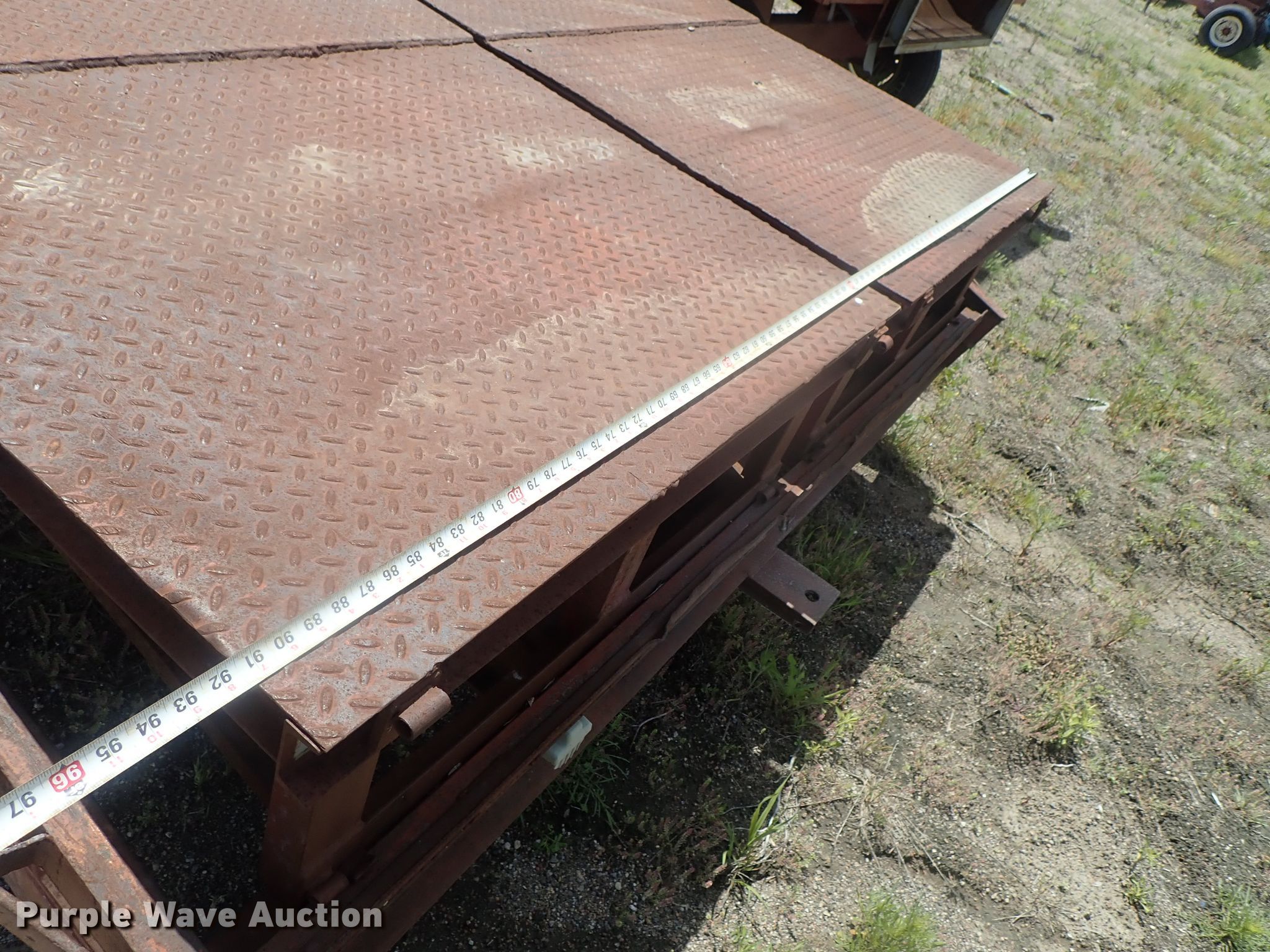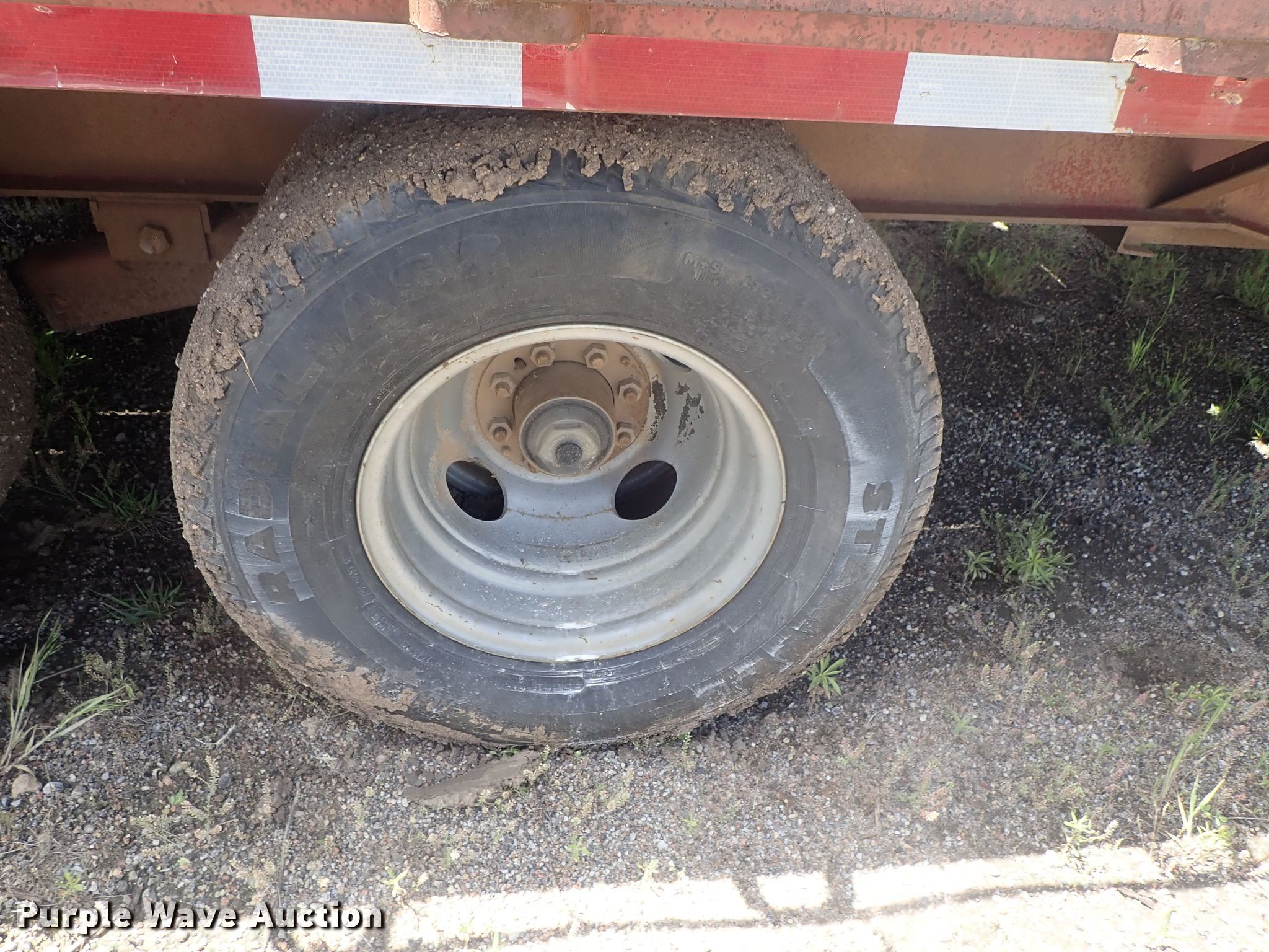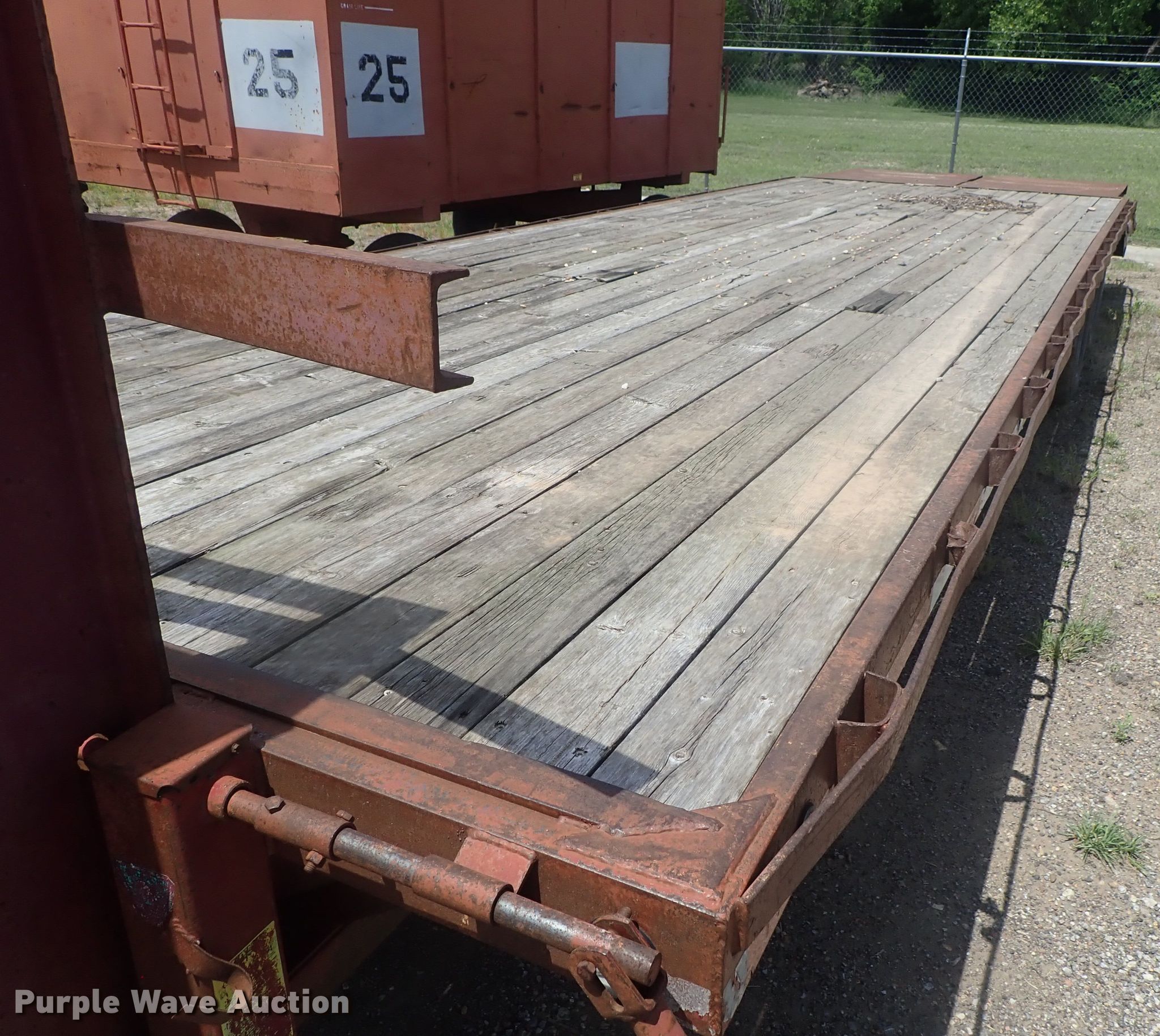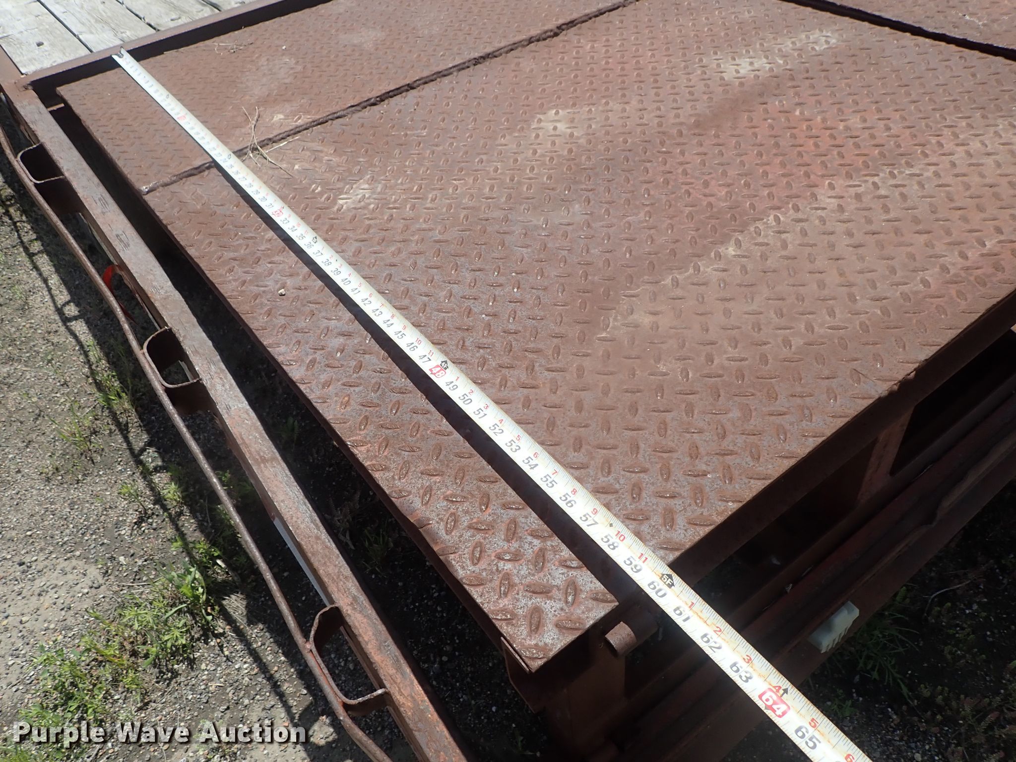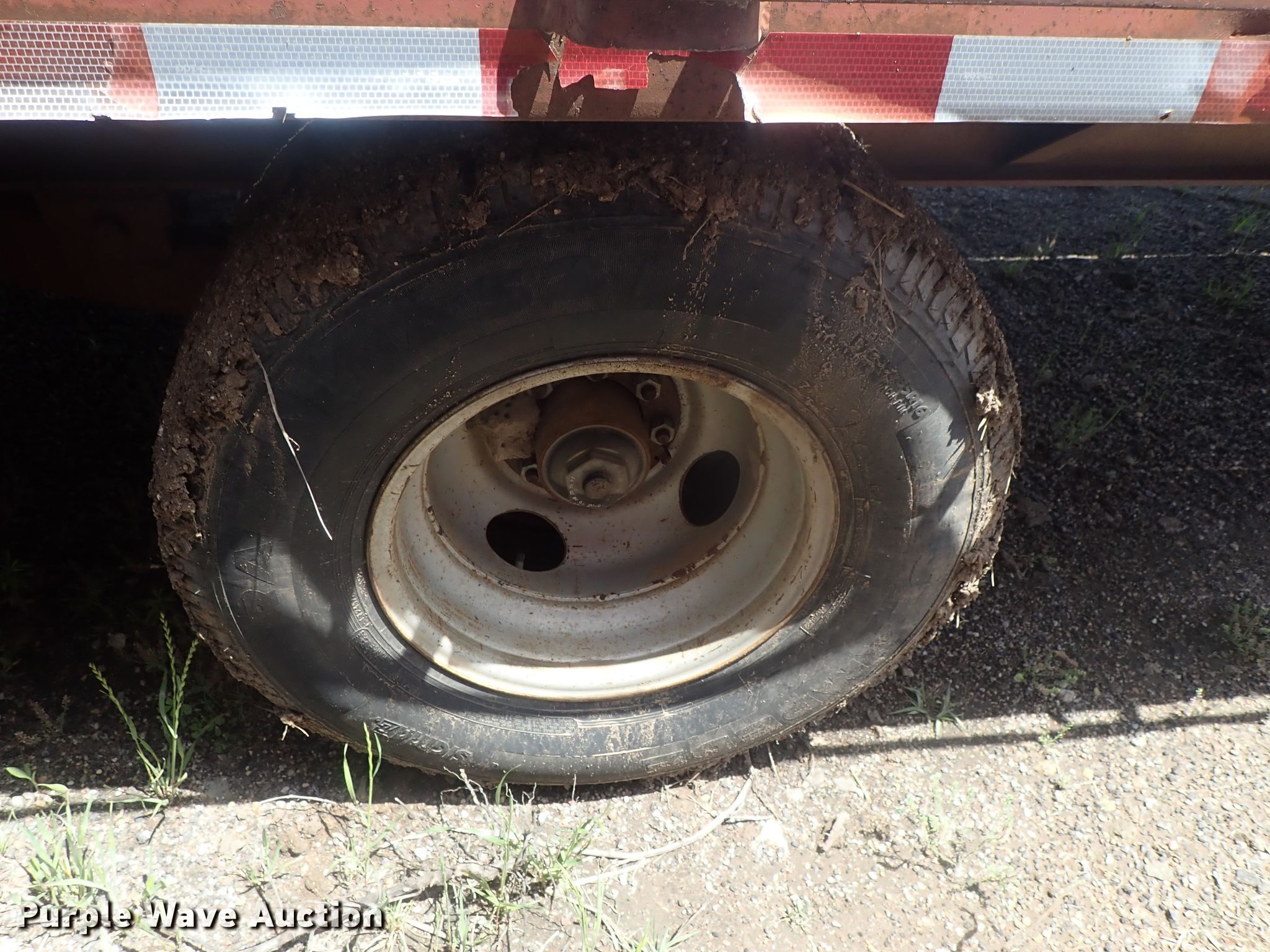 Purple Wave is selling a used Equip. Trailer in Kansas. This item is a 1996 PJ equipment trailer with the following: 30'L overall, 25'L x 92"W wood deck, 5' tail length, Dual leg landing gear, Spring suspension, Electric brakes, Tandem axle, Steel wheels, 235/85R16 tires