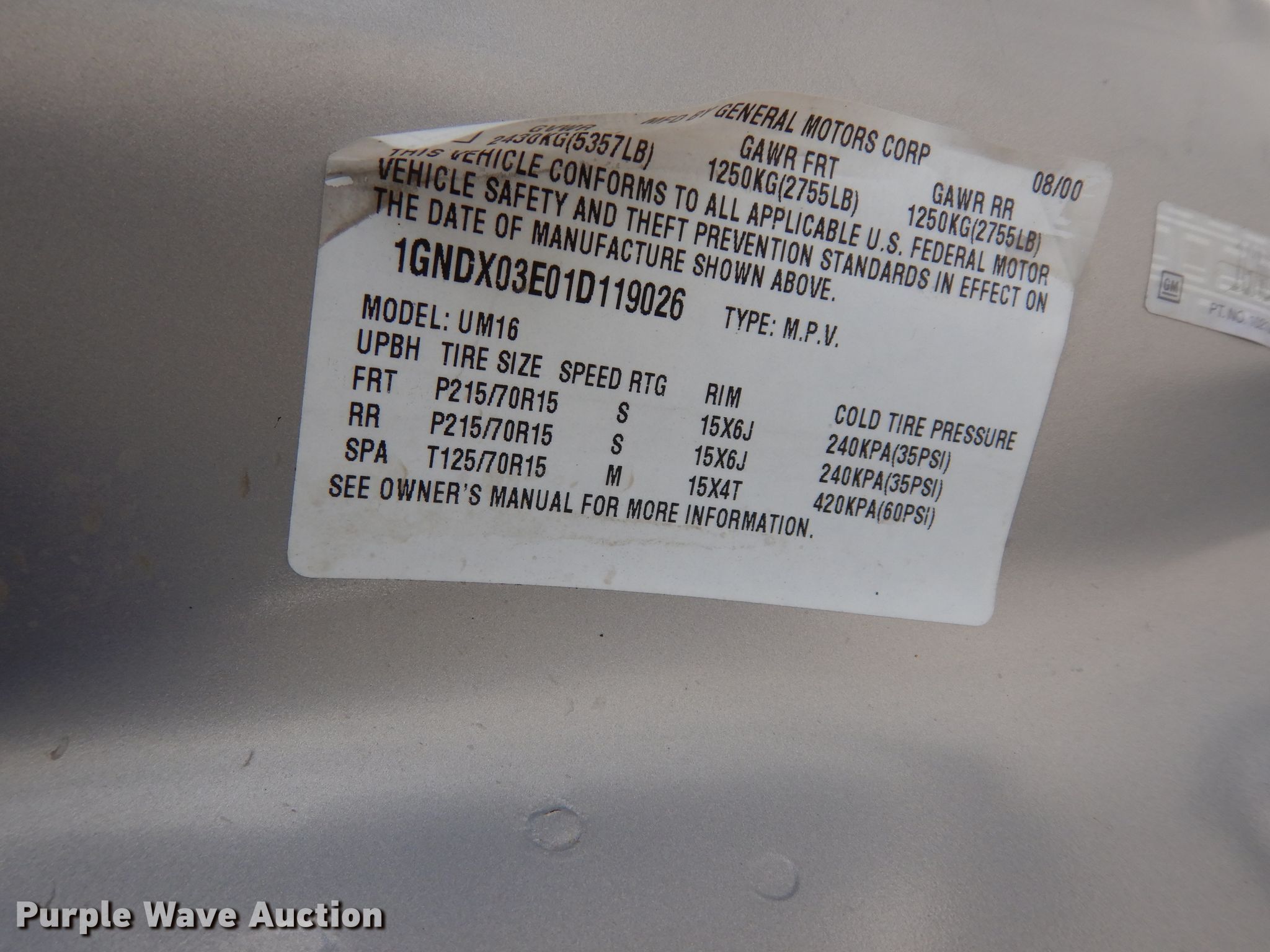 Purple Wave is selling a used Passenger Vehicle in Kansas. This item is a 2001 Chevrolet Venture van with the following: 303,846 miles on odometer