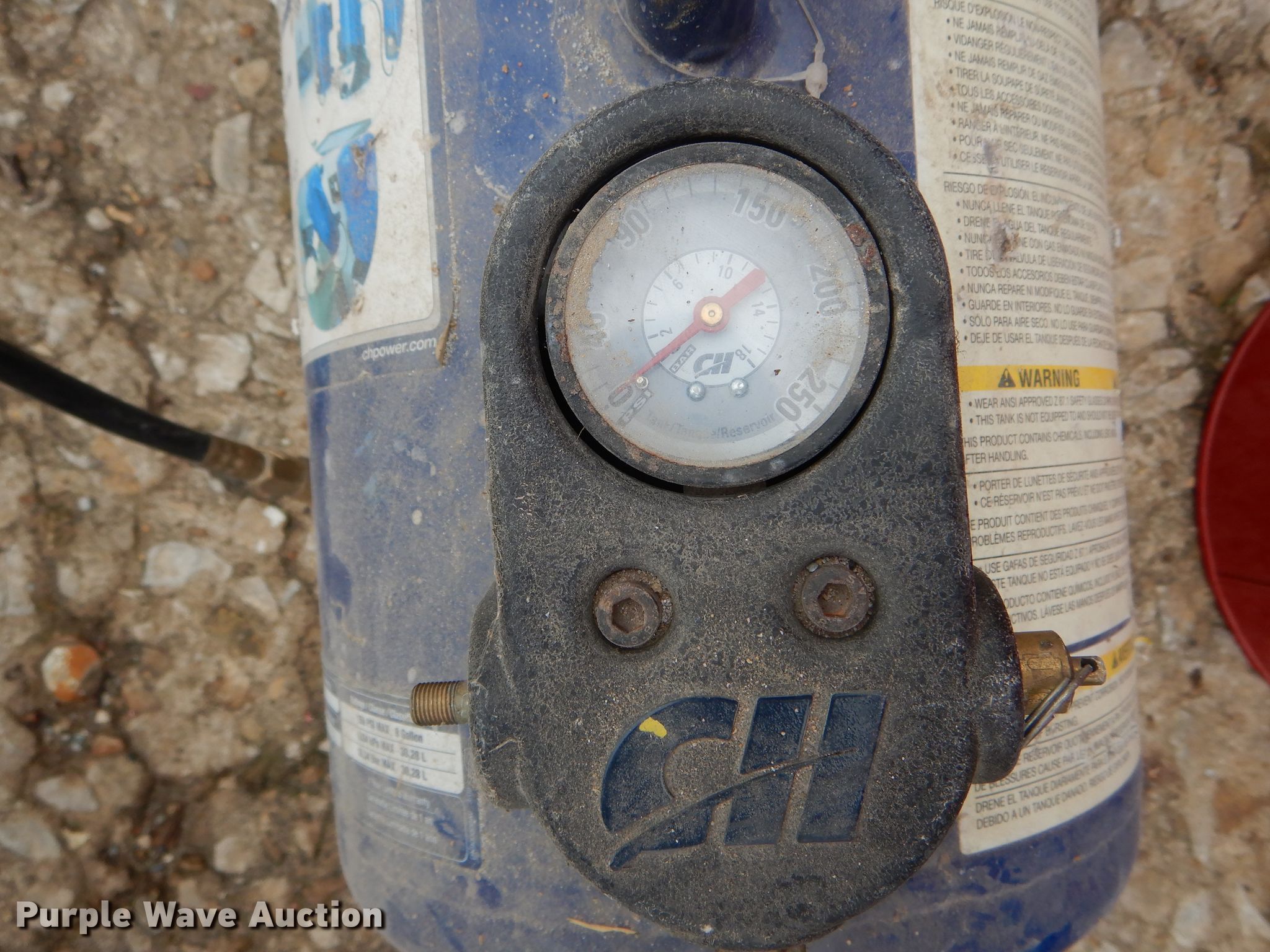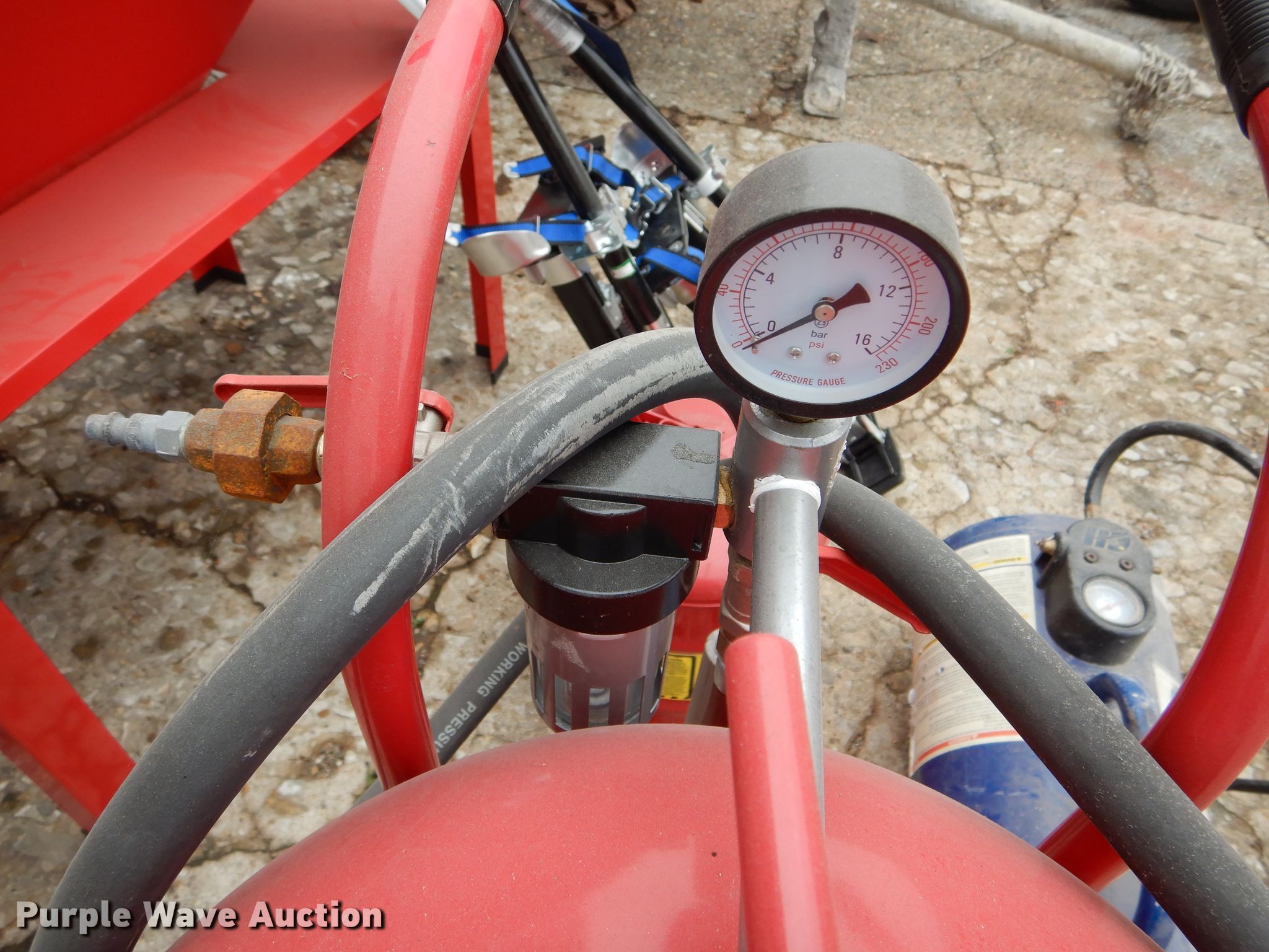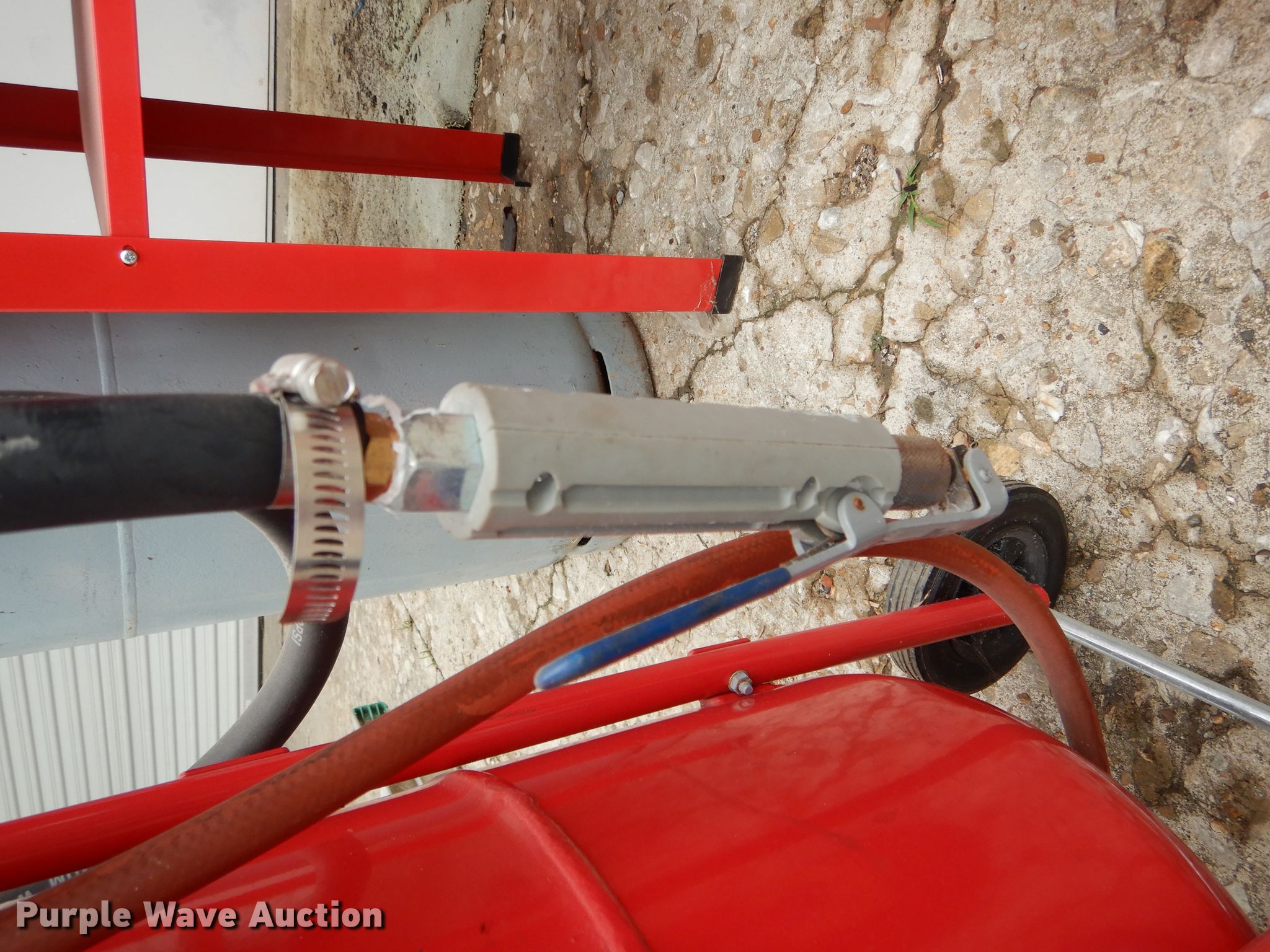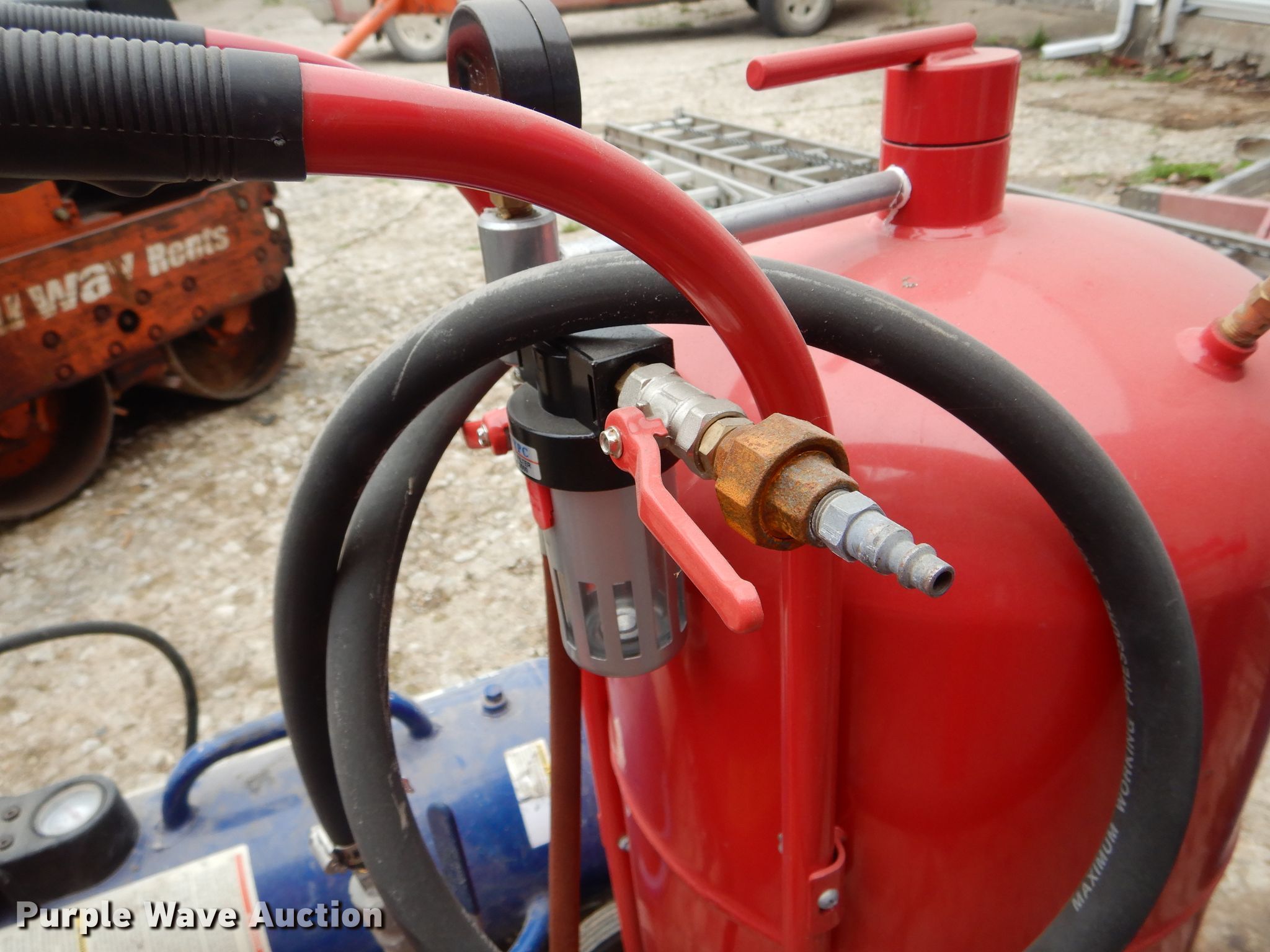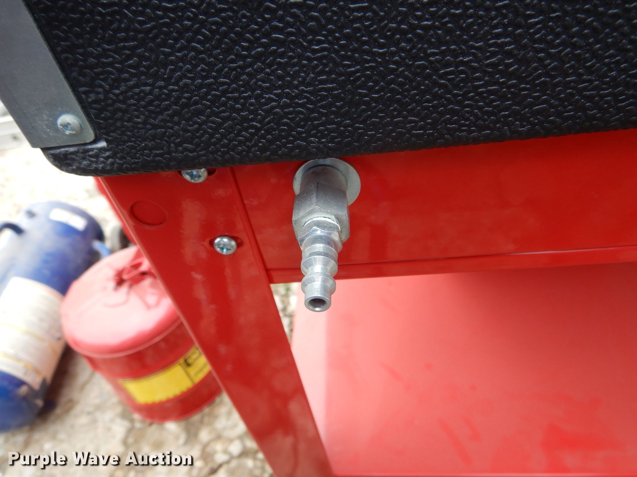 Purple Wave is selling a used Tools in Missouri. This item is a Tools with the following: Air tank, 150 maximum psi, Eight gallon capacity, Stilts, Justrite fuel tank, Five gallon capacity, Central Pneumatic media blaster, 110 lbs, Hackney 43" x 14" propane tank, Central Pneumatic blast cabinet, 40 lbs capacity
