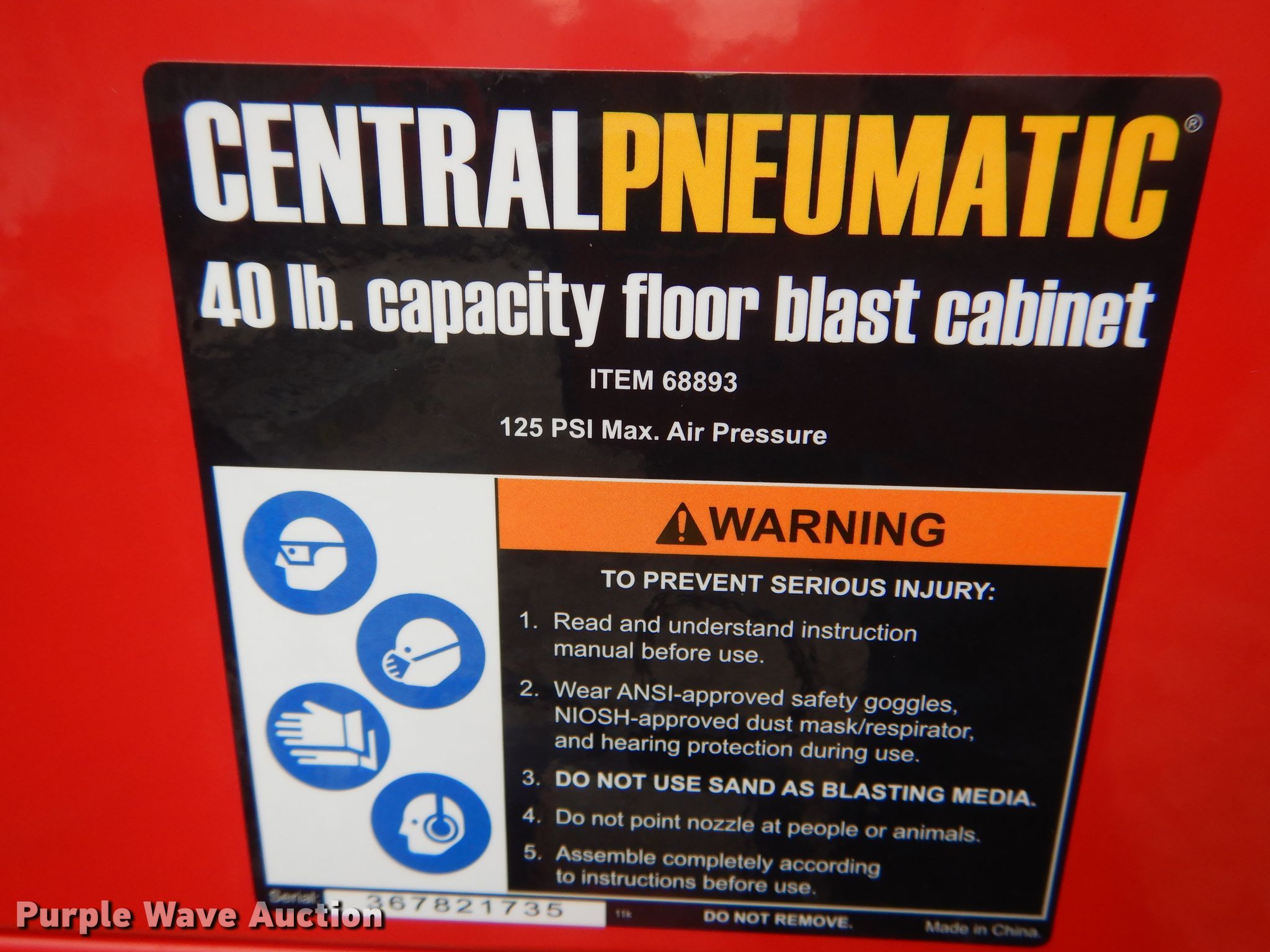 - Central Pneumatic blast cabinet
