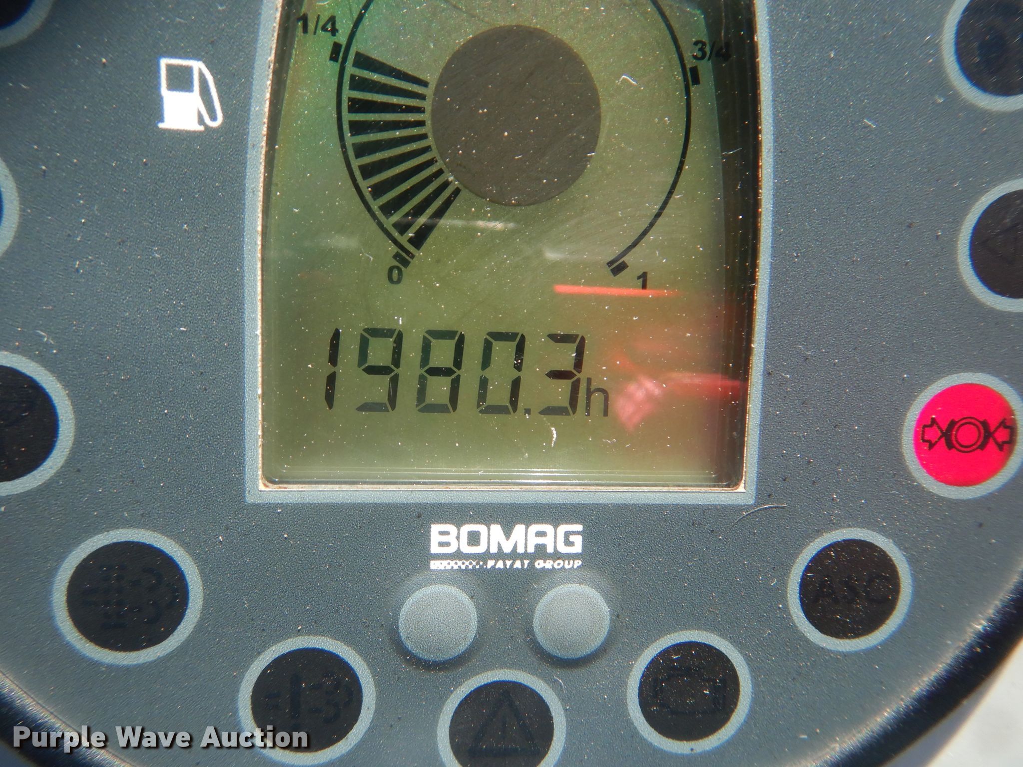 2015 Bomag BW211D-50 single drum vibratory roller. 1,980 hours on meter, Serial: 101585401116. Engine Deutz TCD , Serial: 11713888, Displacement: 3.6L, Cylinders: 4, Fuel type: Diesel, HP: 120, kW: 90. Transmission Hydrostatic. Operators station EROPS AC, Heat. Operational Drum: Smooth, Padfoot, Combination/ Shell kit, Vibratory system: Single, Drum width Front: 86", Drum diameter Front: 60", Drum scrapers: Front, Rear. Tires Rear: 23.1-26R3, Number of tires: 2. Gravel Grinders. 2700 Peak Blvd. Muskogee, OK 74403