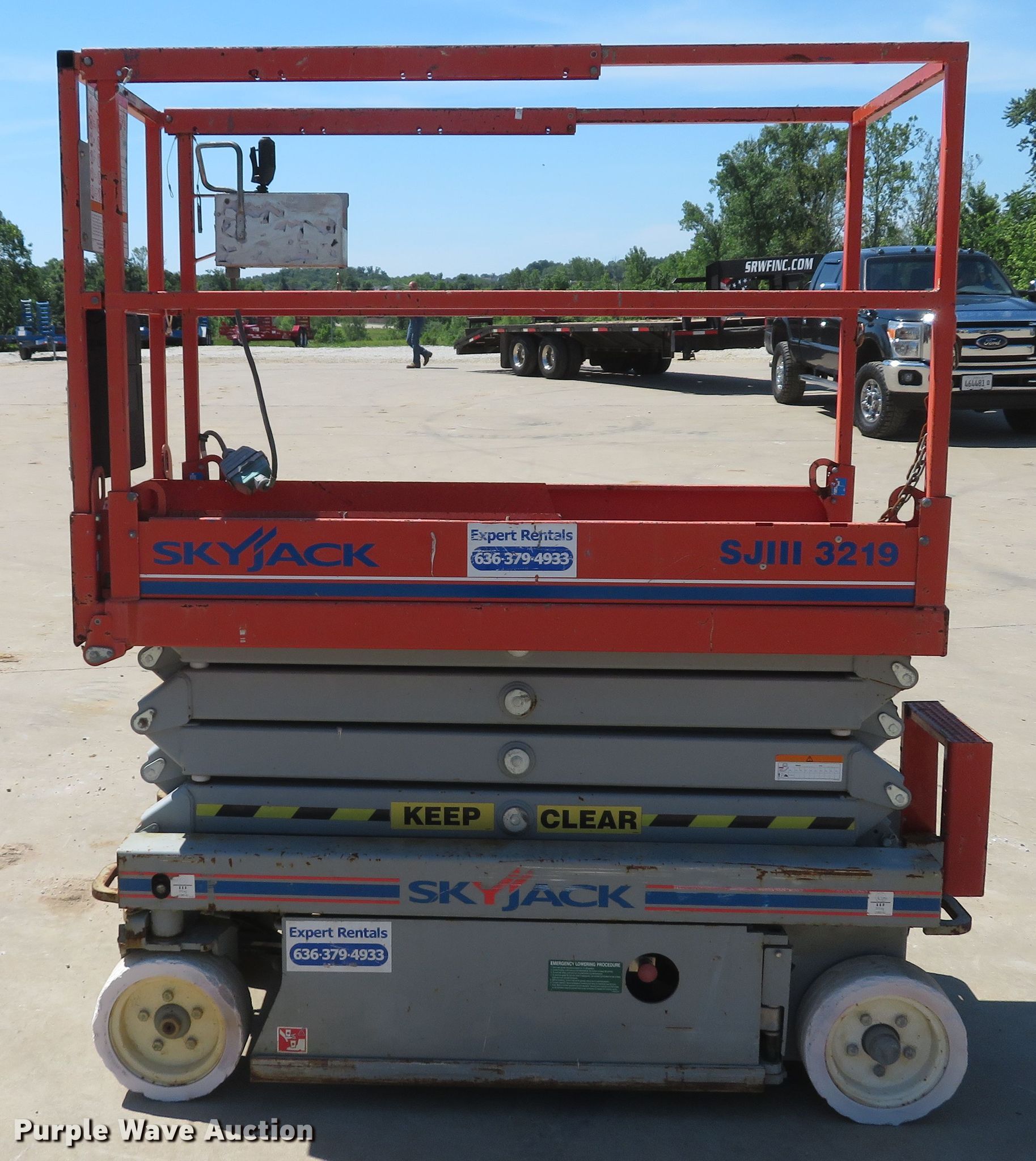 Purple Wave is selling a used Scissor or Vertical Lift in Missouri. This item is a 2012 Skyjack SJIII 3219 scissor lift with the following: 224 hours on meter, Serial: 22033023, Unit #: 9