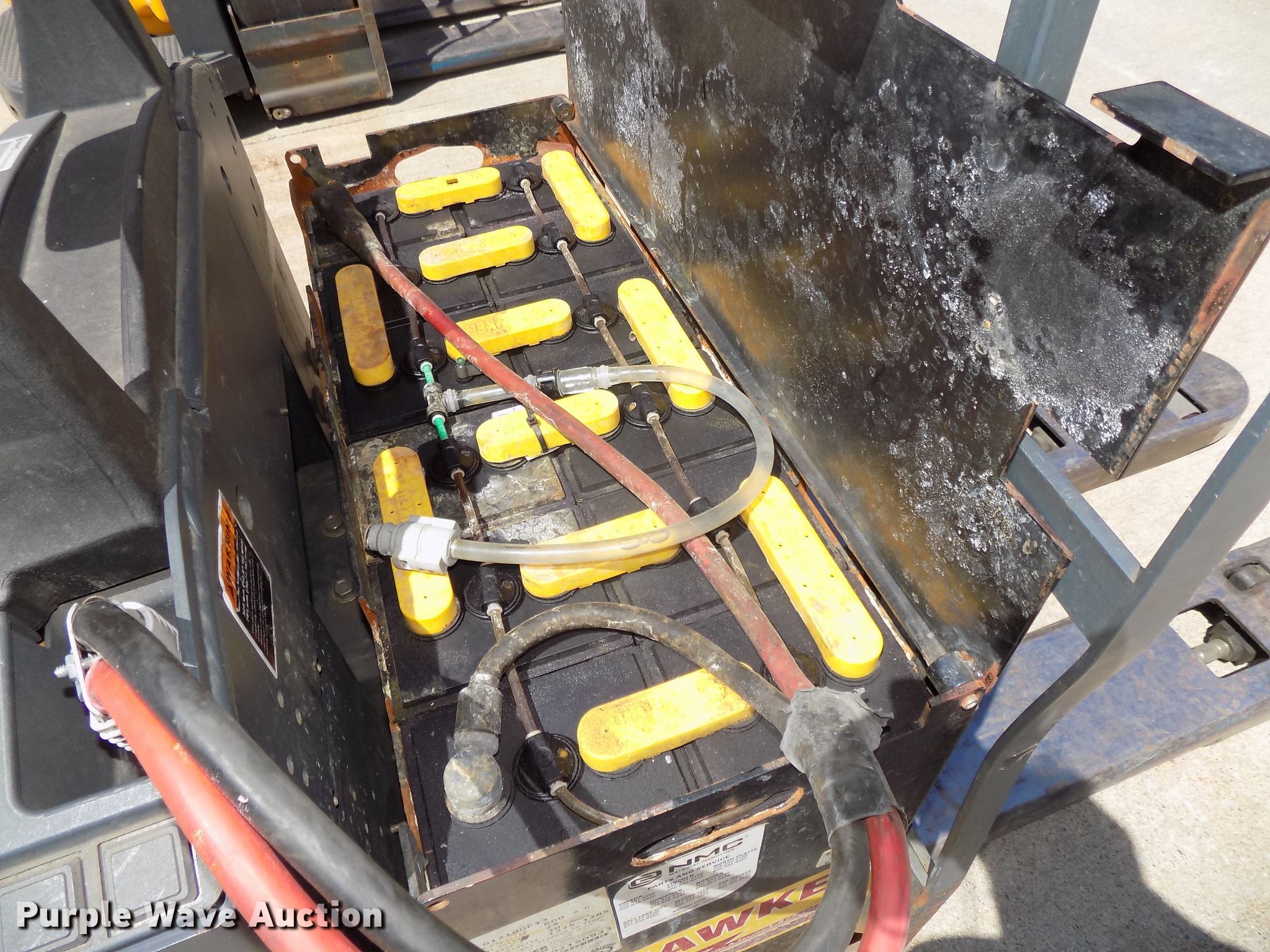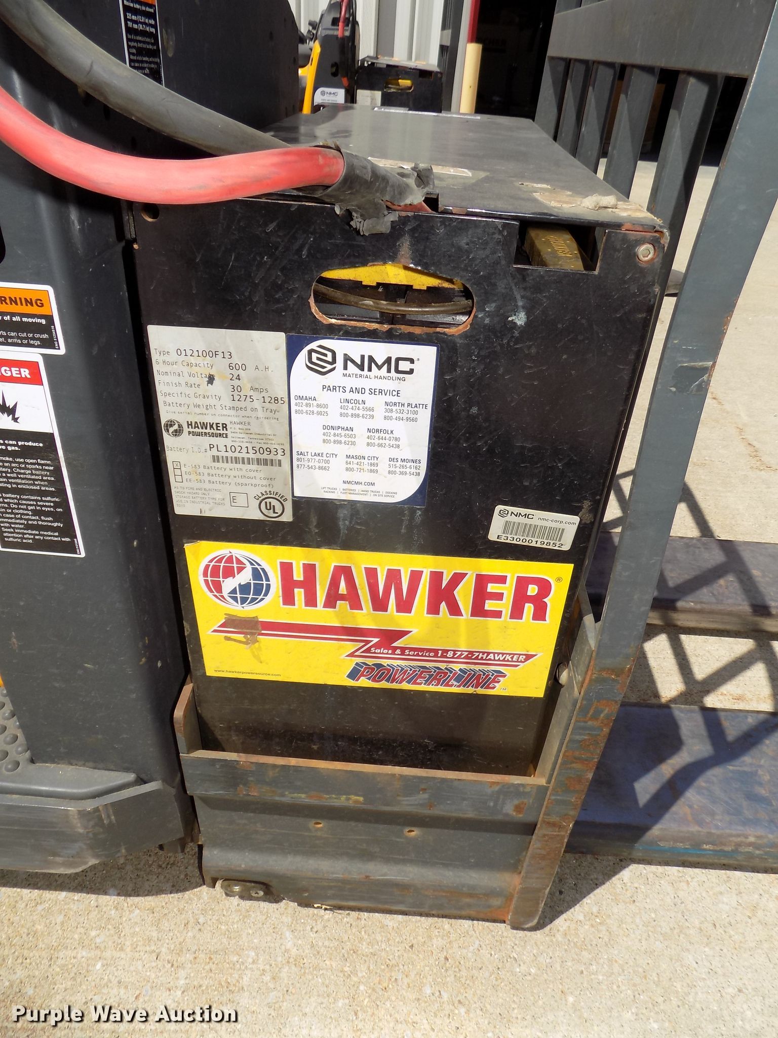 Purple Wave is selling a used Tools in Nebraska. This item is a Jungheinrich ECR327 pallet jack with the following: 3,892 hours on meter, 47"L forks, Power Tech Intellicharger PT312145 charger, Three phase, 480V