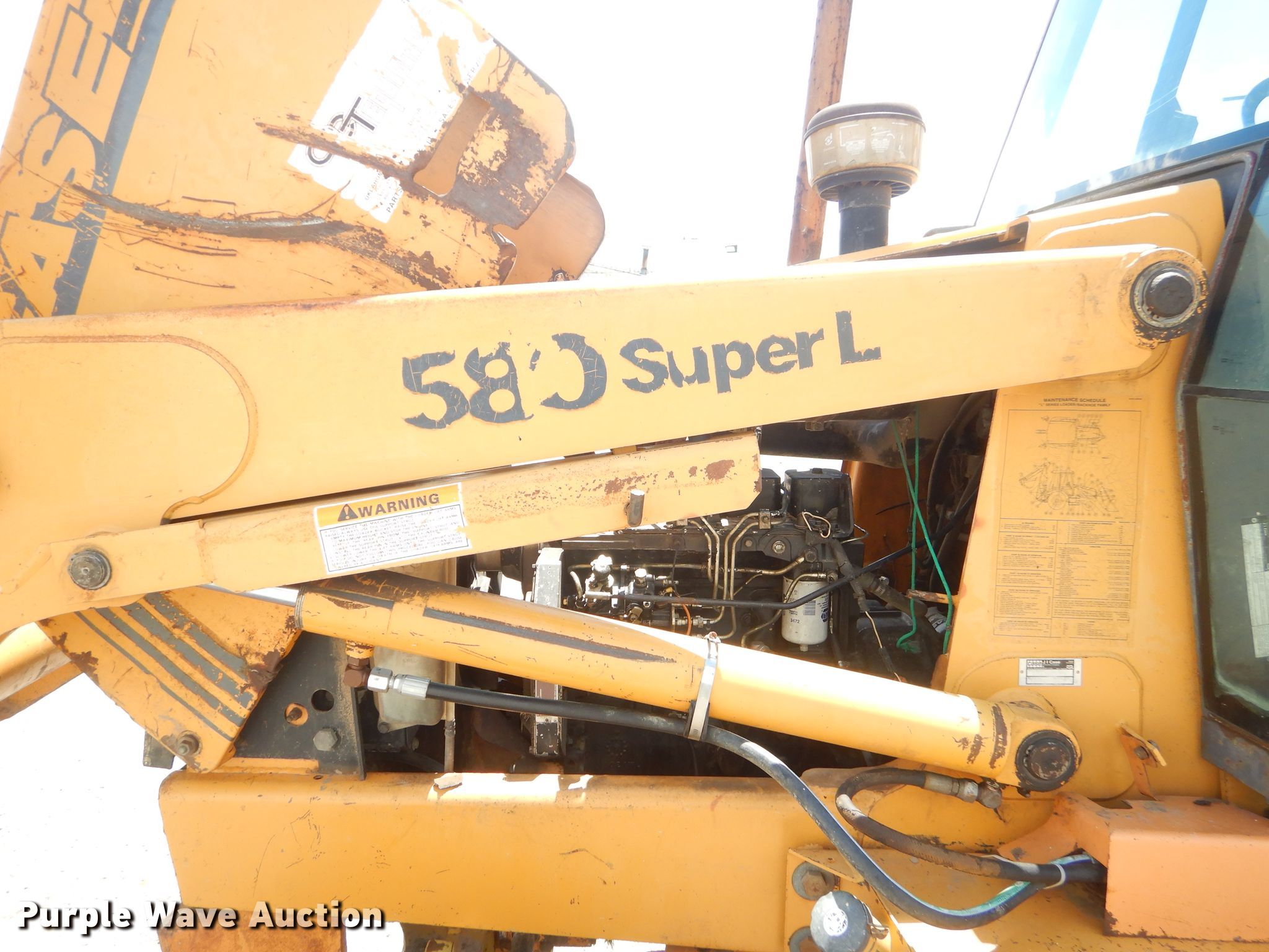 1995 Case 580 Super L backhoe. 8,757 hours on meter, Serial: JJG0191770. Engine Case, Cylinders: 4, Fuel type: Diesel. Transmission Shuttle shift, 4F - 4R. Operators station Enclosed cab, Backhoe controls: 4-stick. Operational Loader Bucket Width: 82", Cutting edge: Bolt-on, Backhoe bucket Width: 16". Tires Front: 12-16.5, Rear: 19.5L-24. Notes Non-operational unit. IMI Worldwide. 200 N Mill St. Pryor, OK 74361