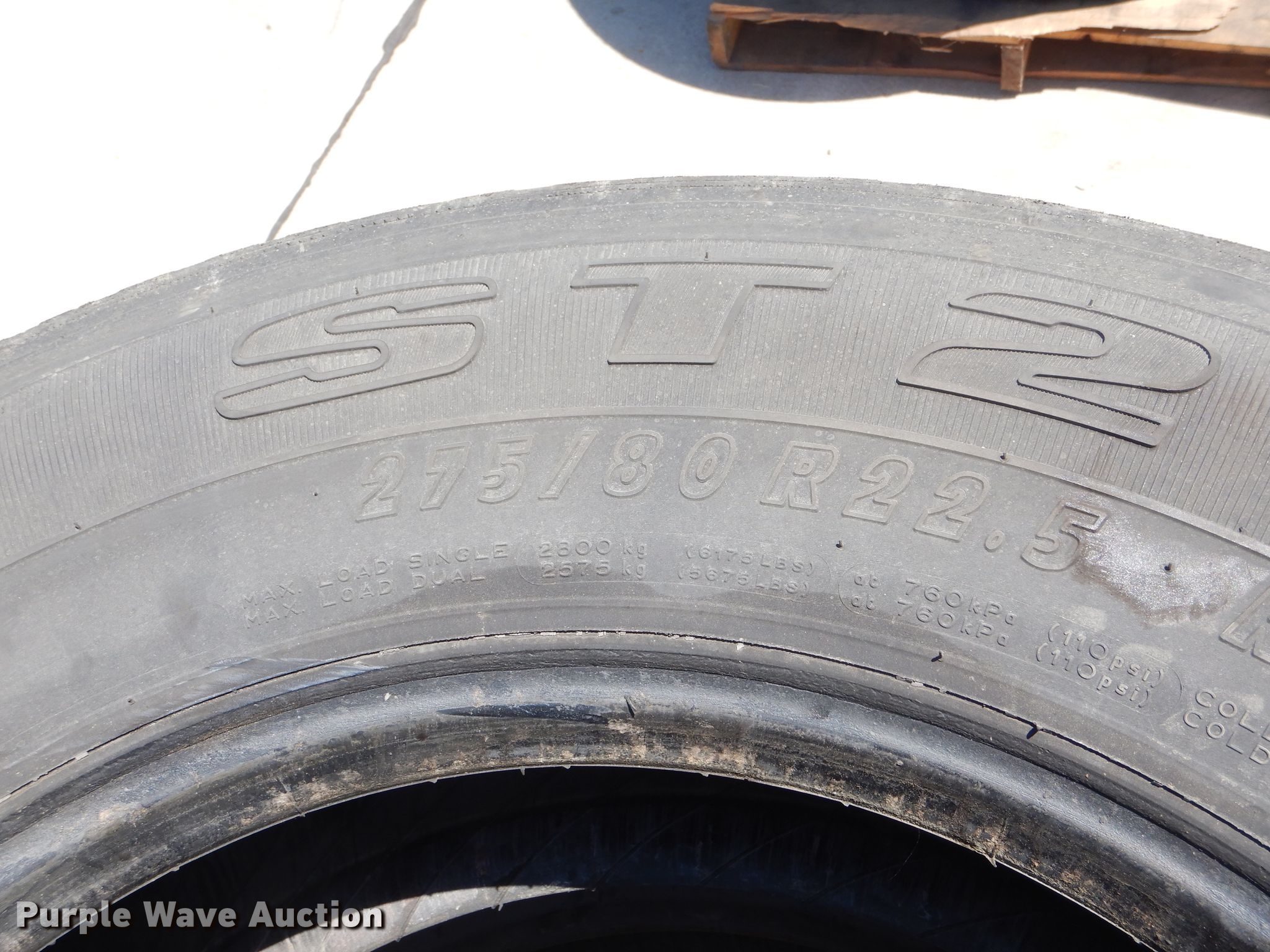 Purple Wave is selling a used Fleet Tires in Missouri. This item is a (16) tires with the following: (15) 275/80R22.5, 215/75R17.5
