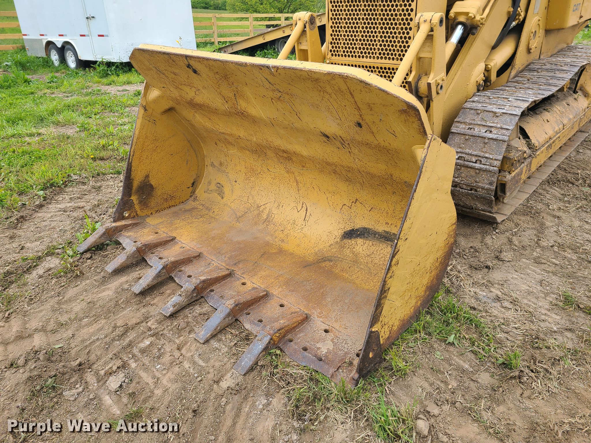 1971 Caterpillar 955K track loader. Serial: 85J4169. Engine Caterpillar, Cylinders: 4, Fuel type: Diesel. Transmission Powershift, 3F - 3R. Operators station OROPS, Bucket controls: Two-lever. Operational Bucket Width: 88", Cutting edge: Bolt-on Teeth: 6.. Tracks Width: 15", Grouser pads: Double. Midwest MO Contractors. Richmond, MO 64085