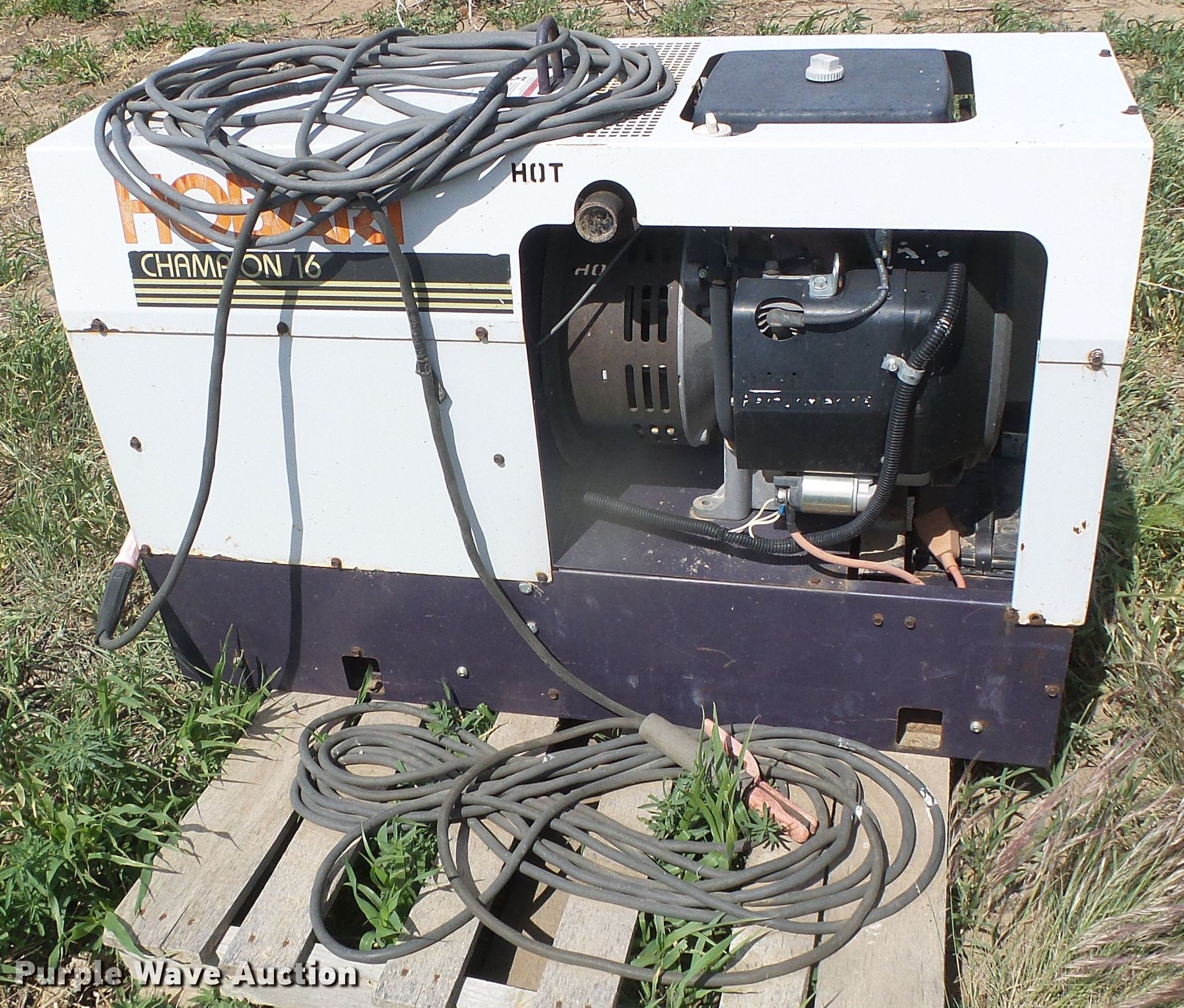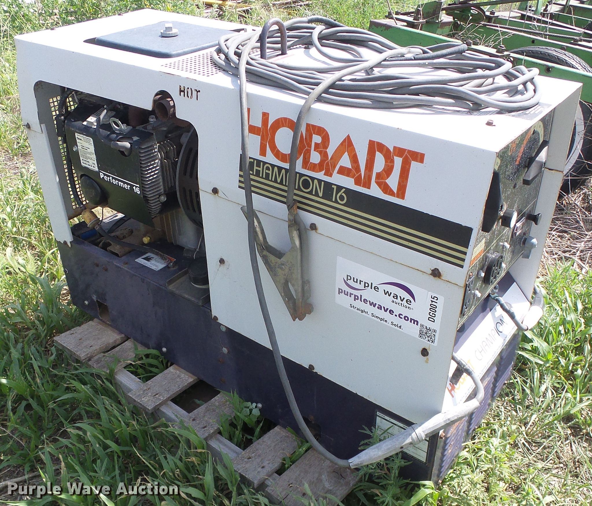 Purple Wave is selling a used Welder (Manual) in Kansas. This item is a Hobart Champion 16 AC/DC welder with the following: 620 hours on meter, Onan Performer 16 714cc gas engine, 8,000 watt generator, 80 to 225 welding amps, Leads, Unknown operating condition