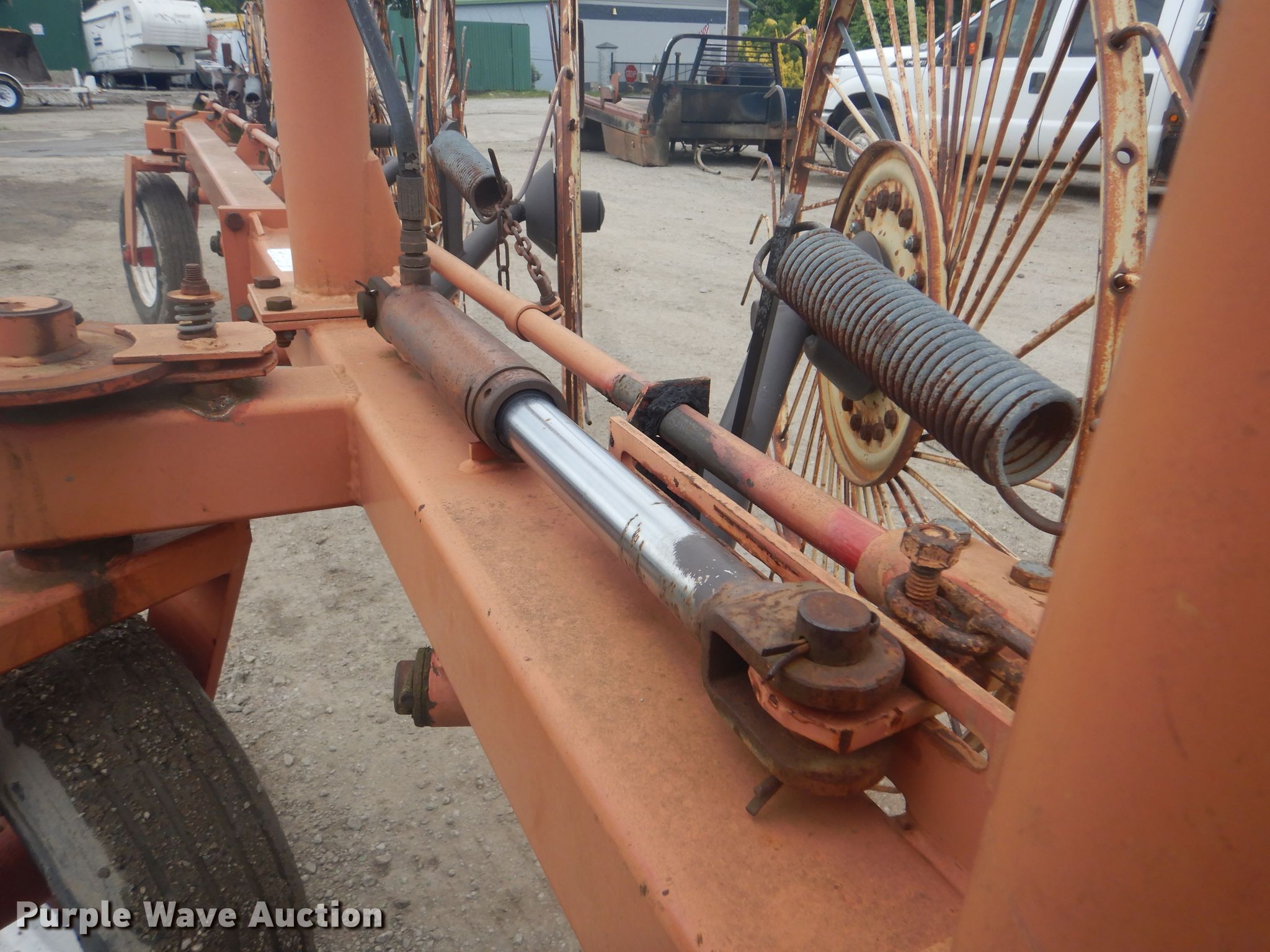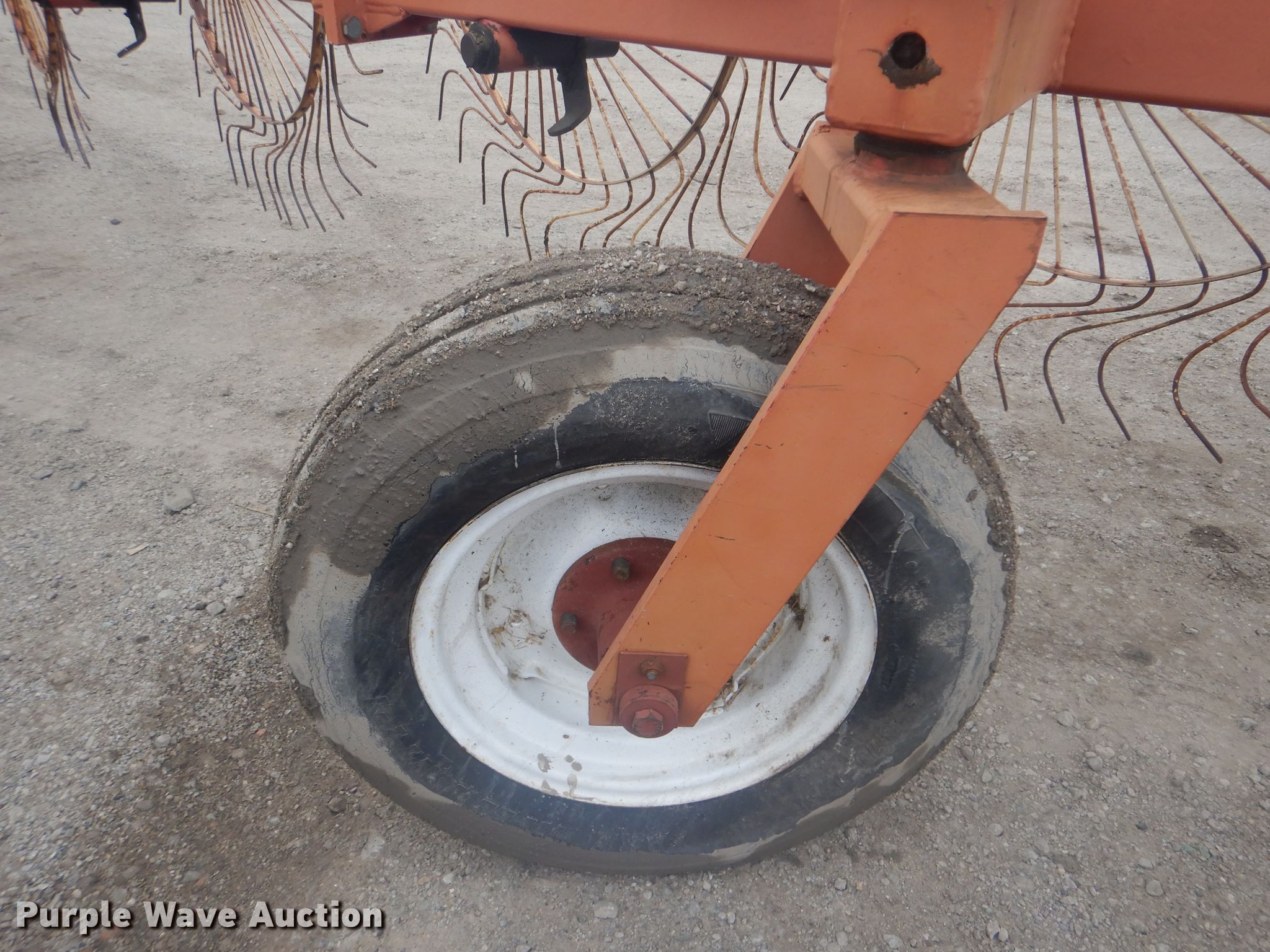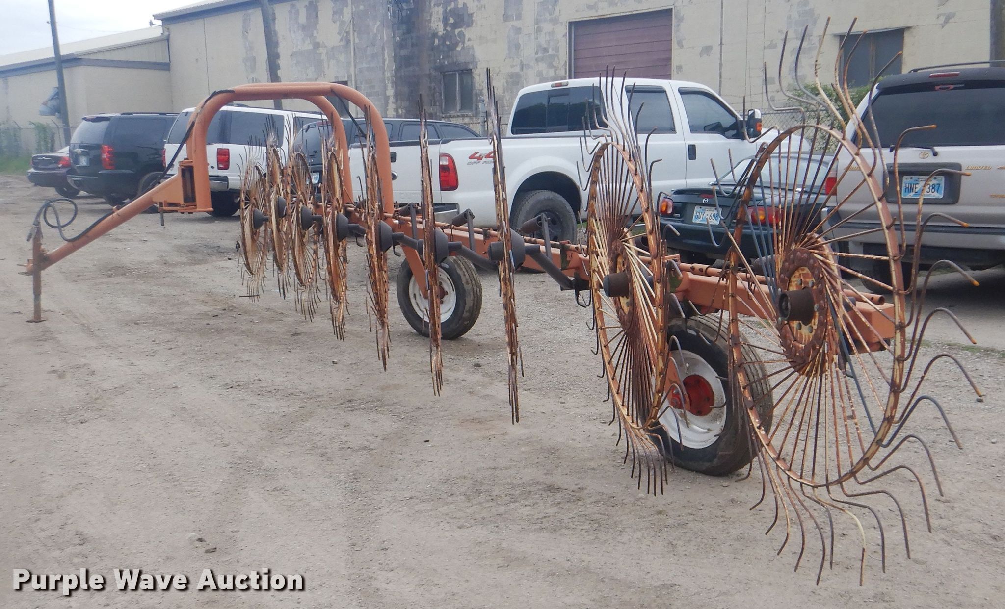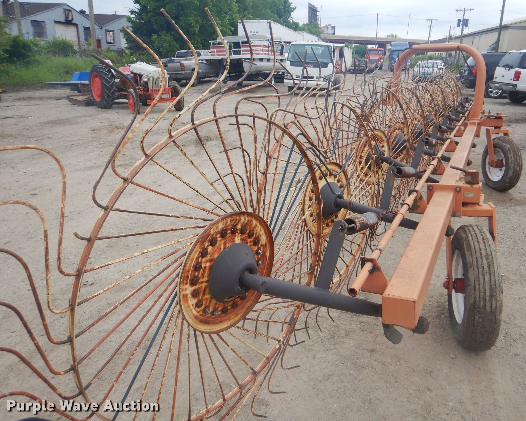 Purple Wave is selling a used Hay Rake in Oklahoma. This item is a Vicon H1050 hay rake with the following: 23' rake width, Hydraulic lift, 6.70-13 tires