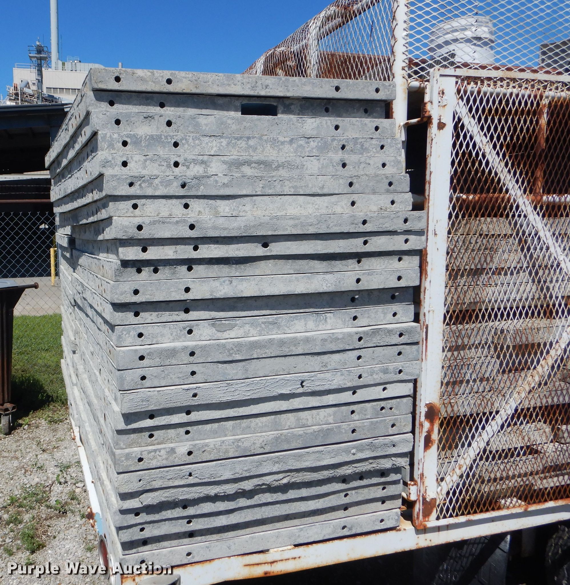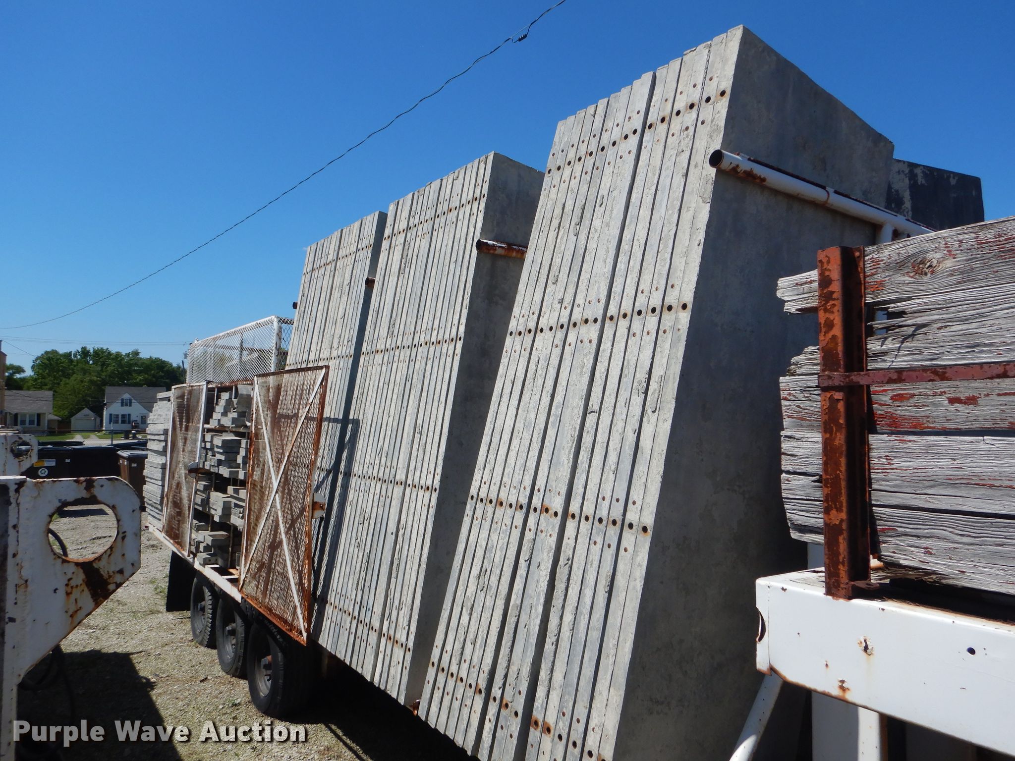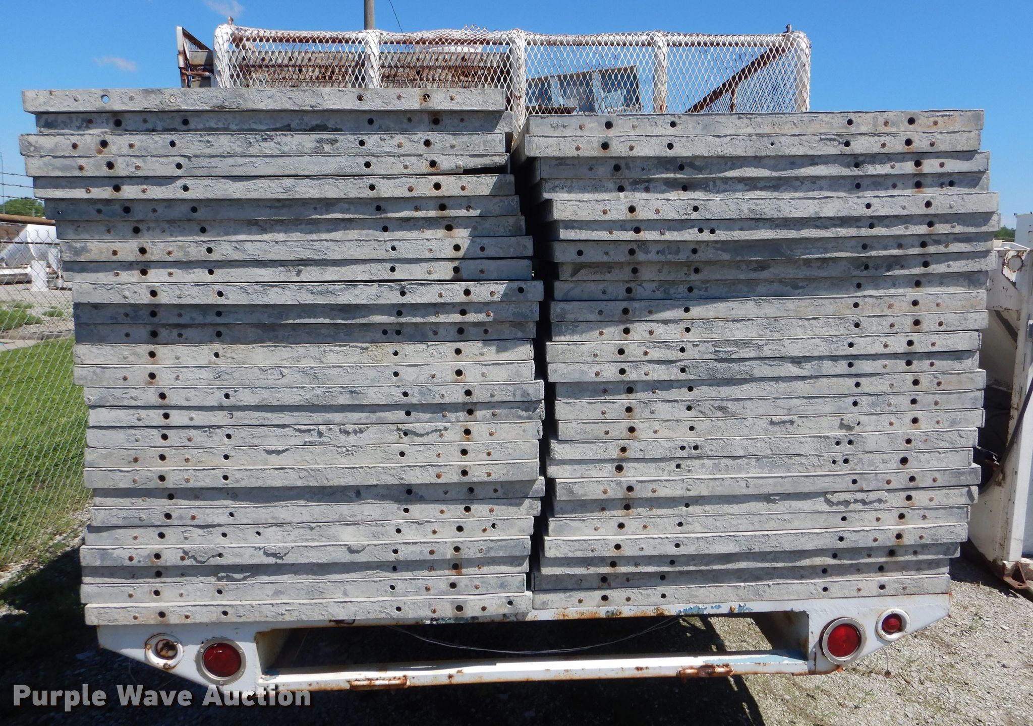 Purple Wave is selling a used Concrete Equip. or Acces. in Missouri. This item is a Approx. 156 aluminum concrete forms with the following: (105) 92"L x 36"W, (51) 4' x 3', Additional forms, 38'L x 96"W trailer, Spring suspension, Hydraulic brakes, 9-14.5LT tires, 12.5'L trailer dolly, Spring suspension, 8.25-20 tires