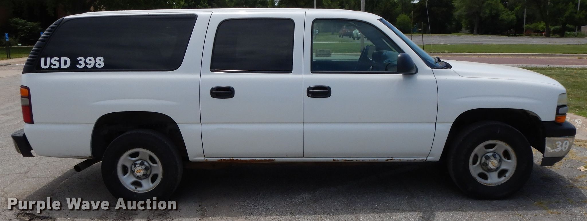 2001 Chevrolet Suburban C1500 SUV. 187,838 miles on odometer, Unit #: 30. Engine Displacement: 5.3L V8 16V OHV, Cylinders: 8, Fuel type: Gas. Transmission Automatic. Interior AC, Heat, Power windows, Power locks, Cruise control. Tires Size: 245/75R16. Notes Service engine light on , Non-operational rear door handle, AC issues, blows warm. Kansas title. 1GNEC16T71J257521. USD 398 Peabody Schools. 801 N Sycamore St. Peabody, KS 66866