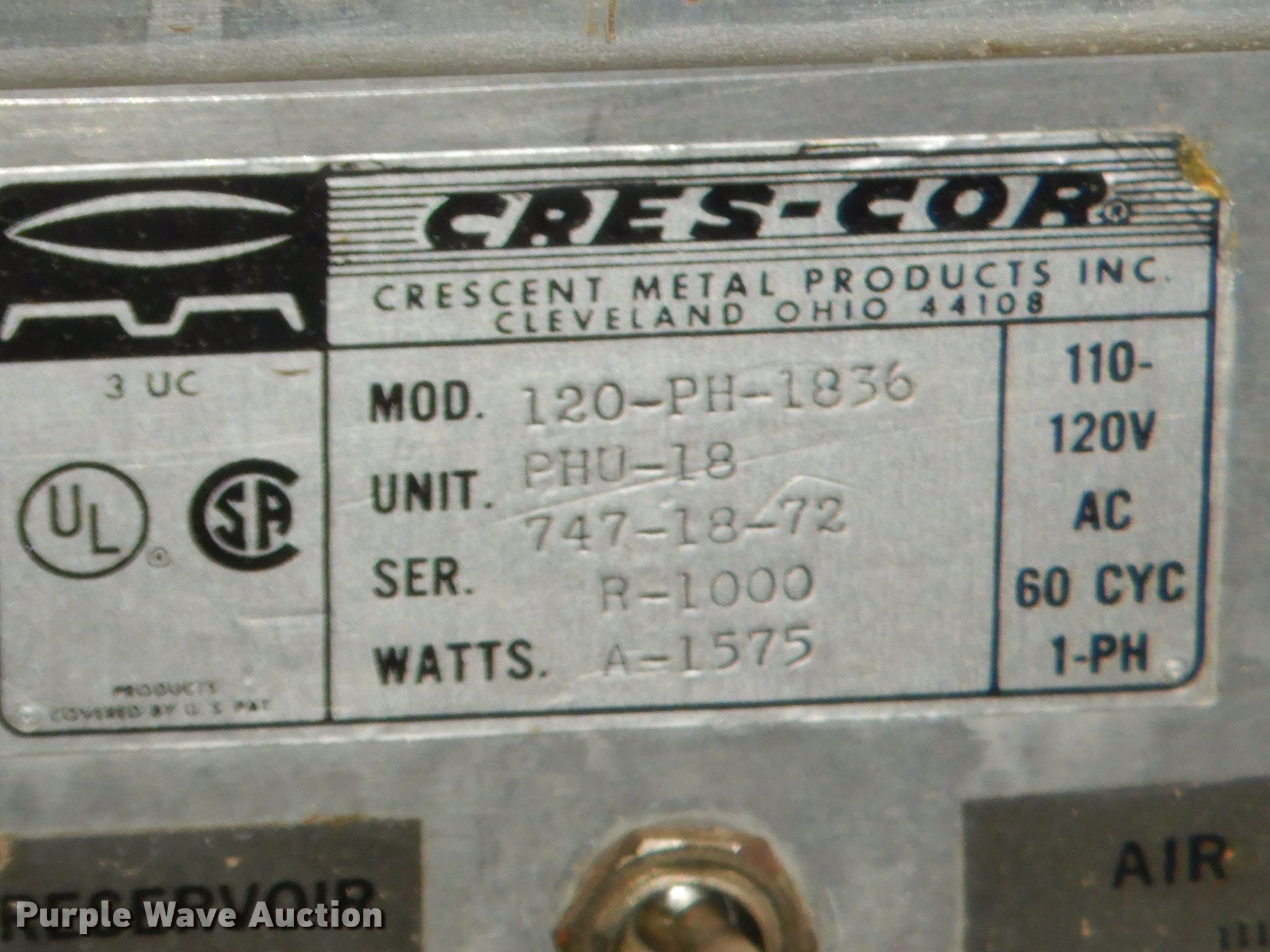 Purple Wave is selling a used Restaurant Equip. in Kansas. This item is a (4) CresCor food warmers with the following: Model 120-PH-1836, HCFNSN-RA2, 25-120, 120V, Casters