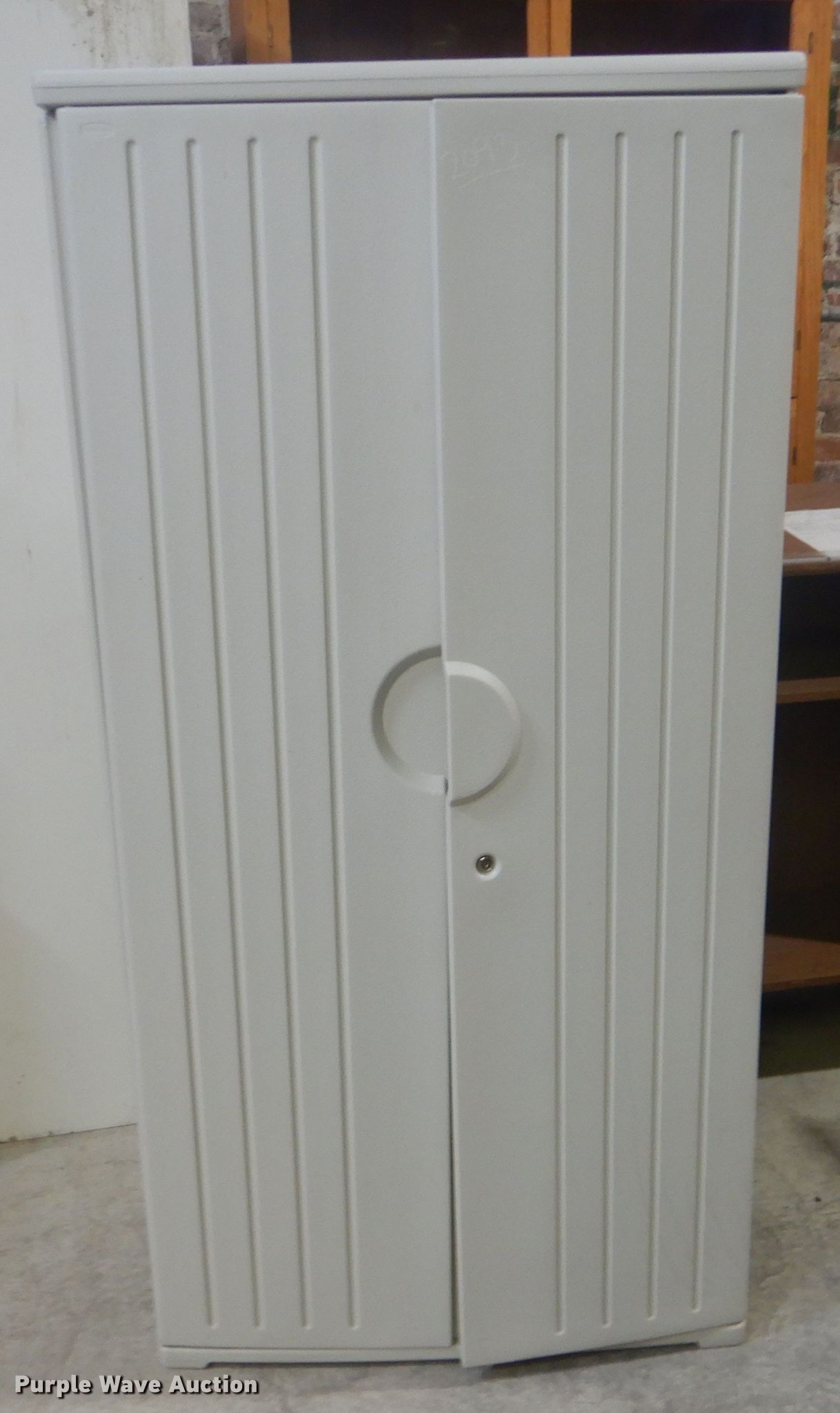 Purple Wave is selling a used Furniture in Oklahoma. This item is a Rubbermaid storage cabinet with the following: 20" x 36" x 72", Unit# 2093