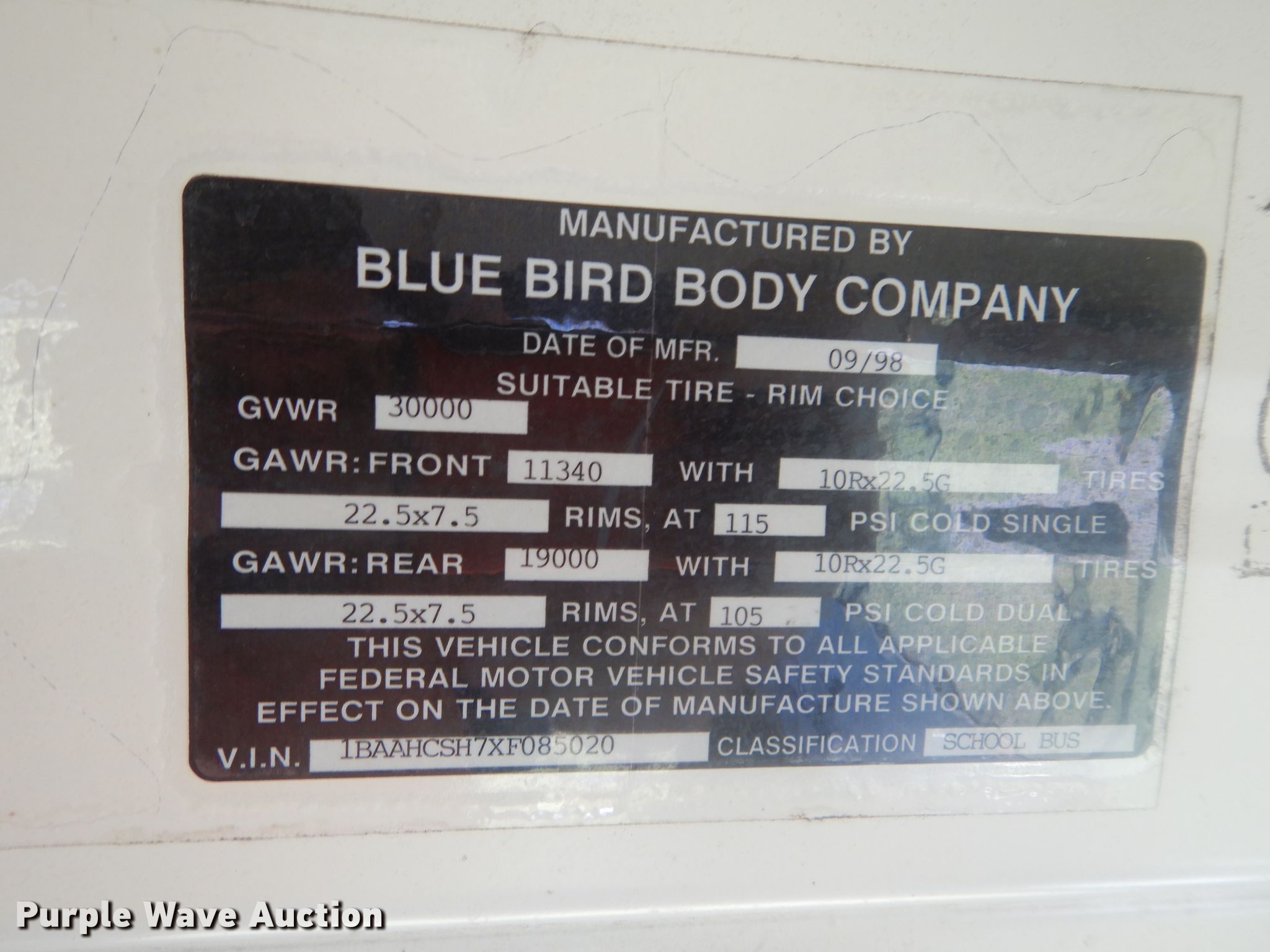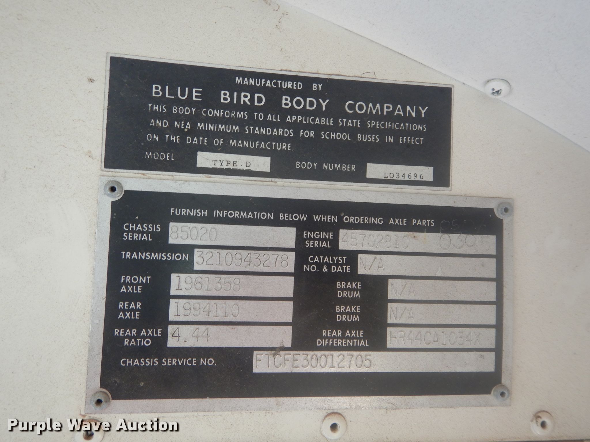 Take a look at this used 1999 Blue Bird TC2000 school bus being sold on July 7th, 2020 in the SOLD! July 7 Government Auction made by Blue Bird. Take a look at all of the item information below or take a look at similar auctions for Transit Vehicles.