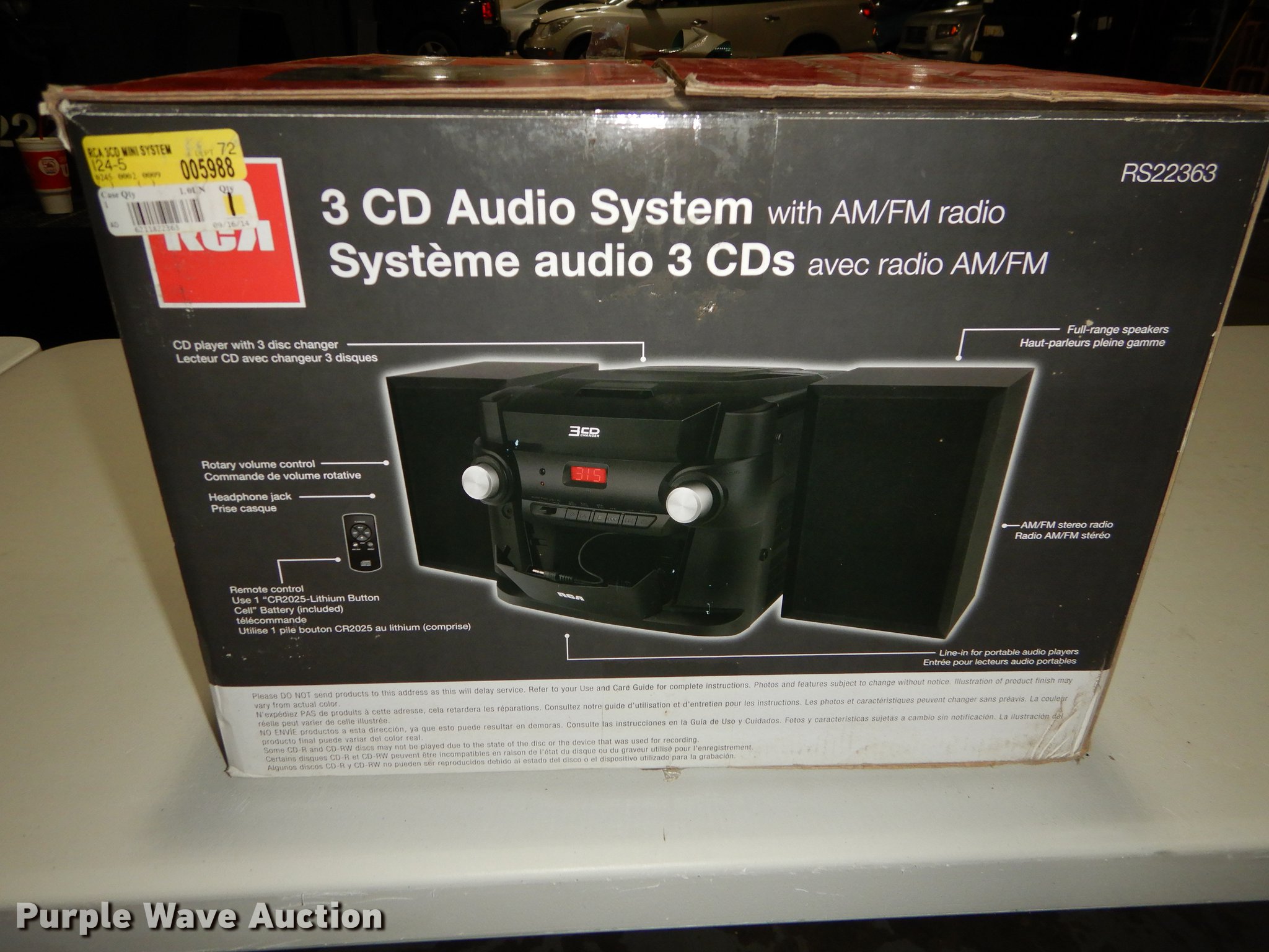 Purple Wave is selling a used Electronics in Kansas. This item is a RCA audio system with the following: AM/FM, Three CD changer