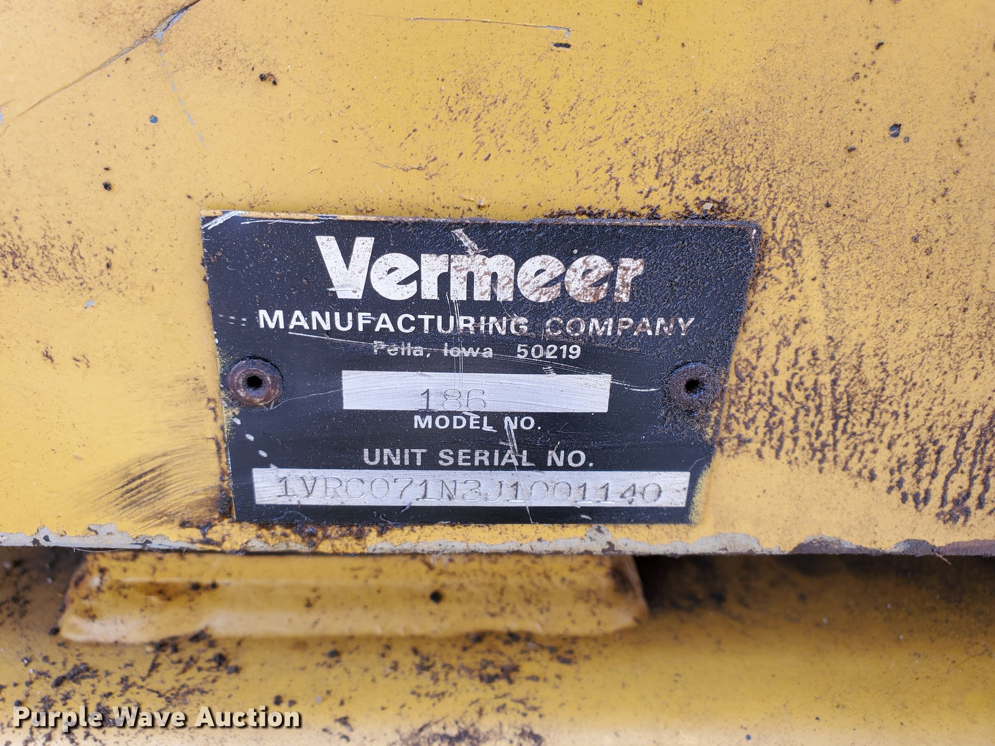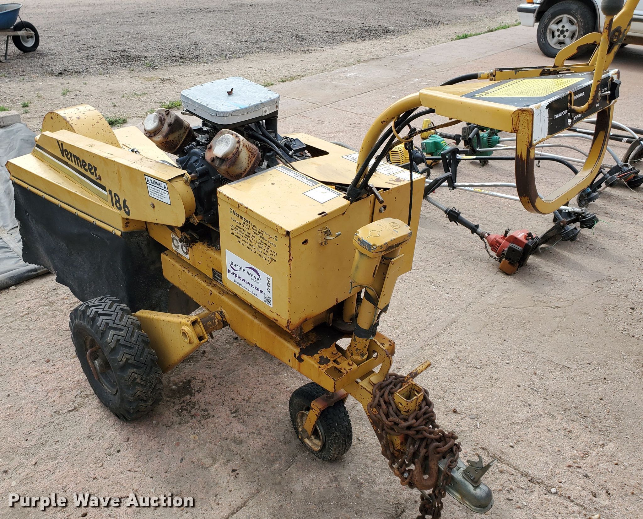 Purple Wave is selling a used Wood Chipper or Stump Grinder in Kansas. This item is a 1988 Vermeer 186 stump grinder with the following: Briggs & Stratton gas engine, 18 HP, 2" ball hitch, 5.70-8 tires, Serial 1VRC071N3J1001140