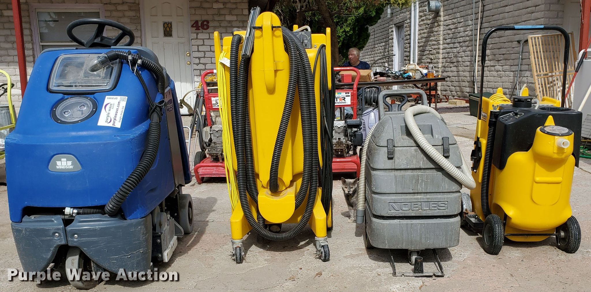 Purple Wave is selling a used All Other Household Items in Kansas. This item is a Floor cleaning equipment with the following: Kaiwhiz no touch cleaning system, Nobles vacuum, Kaivac KV120, Windsor Chariot iextract, Unknown operating condition