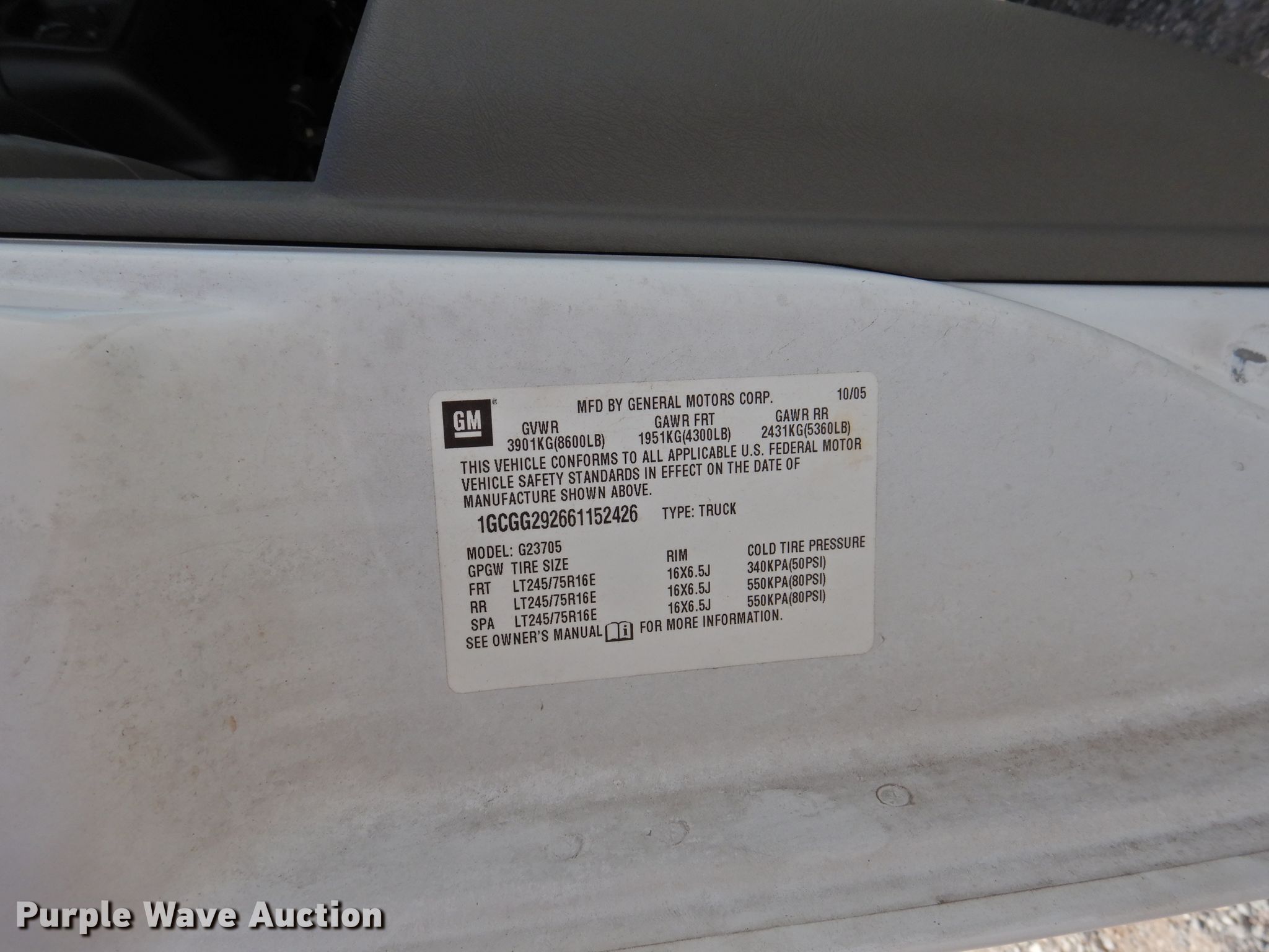 2006 Chevrolet Express 2500 van. 200,107 miles on odometer. Engine Displacement: 6.6L V8 OHV 32V, Cylinders: 8, Fuel type: Diesel. Transmission Automatic. Interior AC, Heat, Power windows, Power locks, Cruise control. Tires Size: 245/75R16. Notes Windshield cracked, Check engine light on. Oklahoma title. 1GCGG292661152426. Cotton Electric COOP. 226 Broadway. Walters, OK 73572