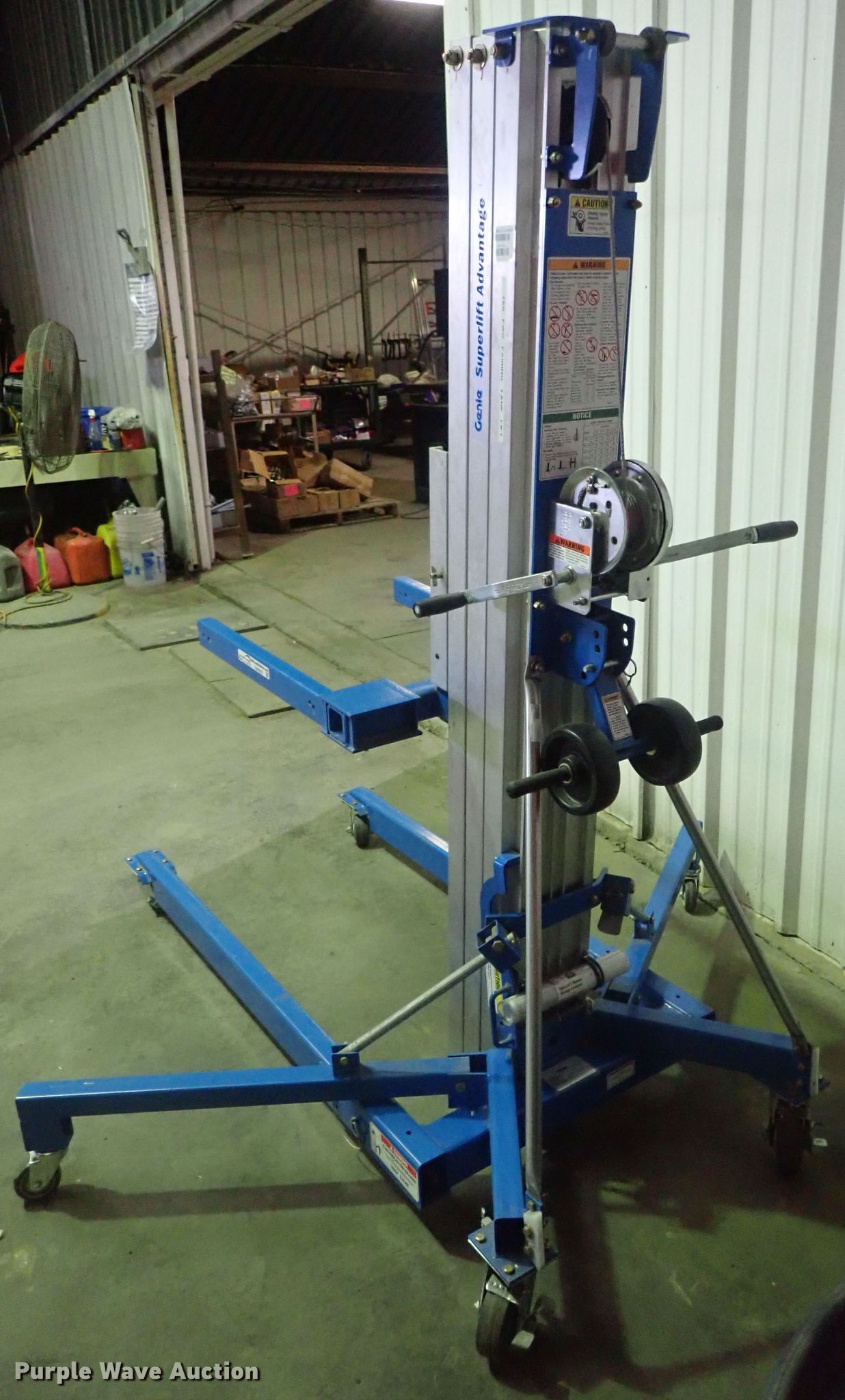 Purple Wave is selling a used Tools in Kansas. This item is a Genie SLA-15 material lift with the following: Serial SLA14-56405