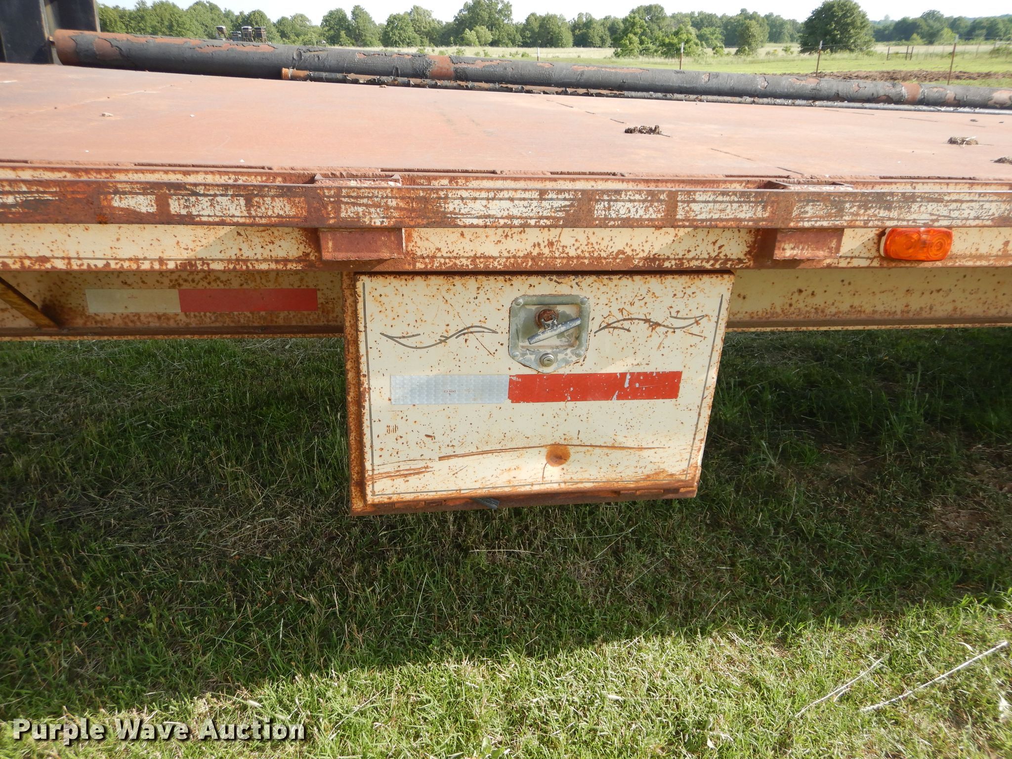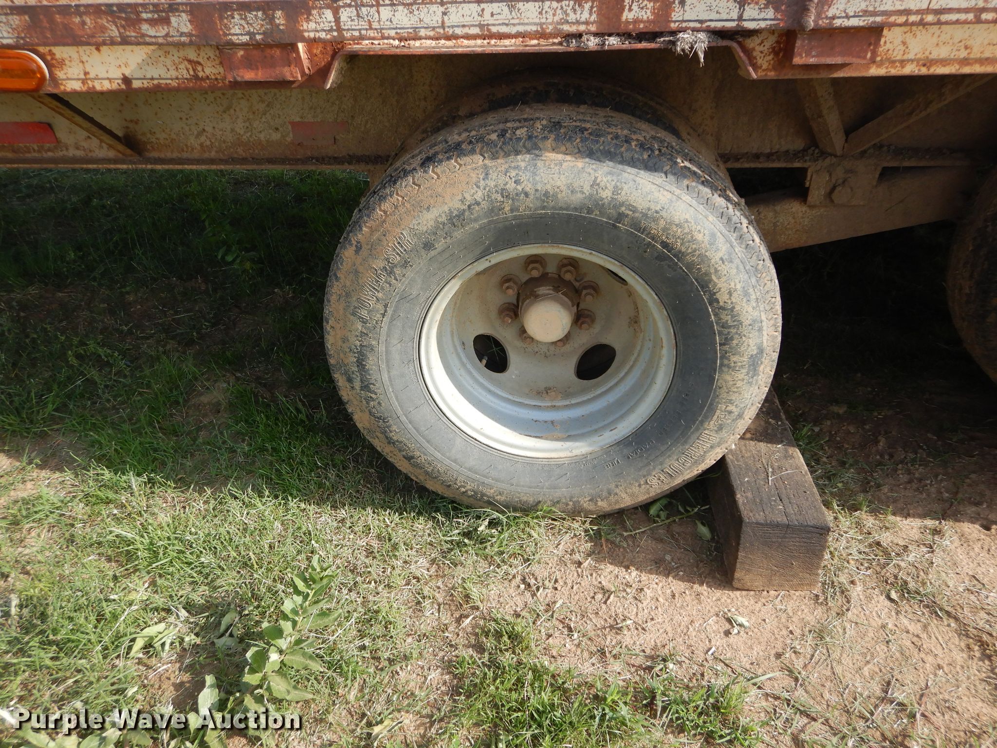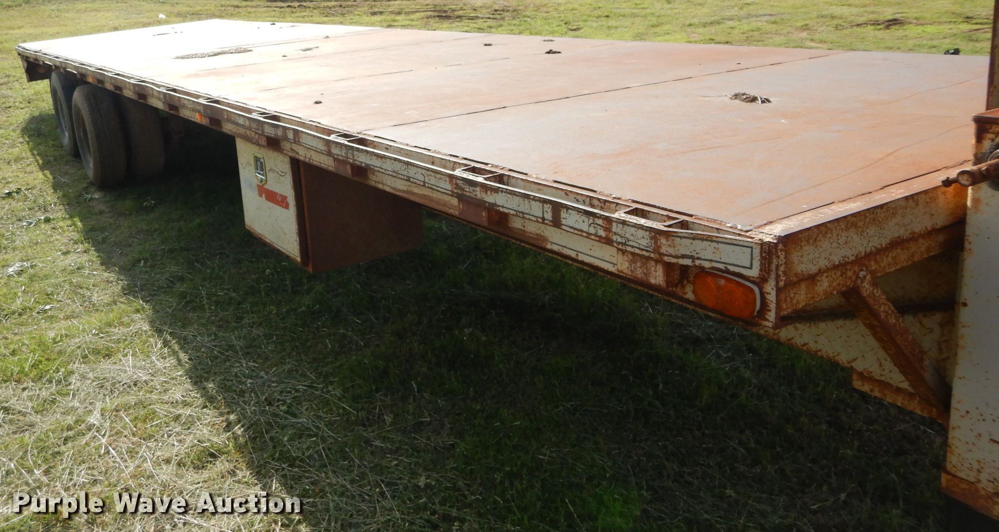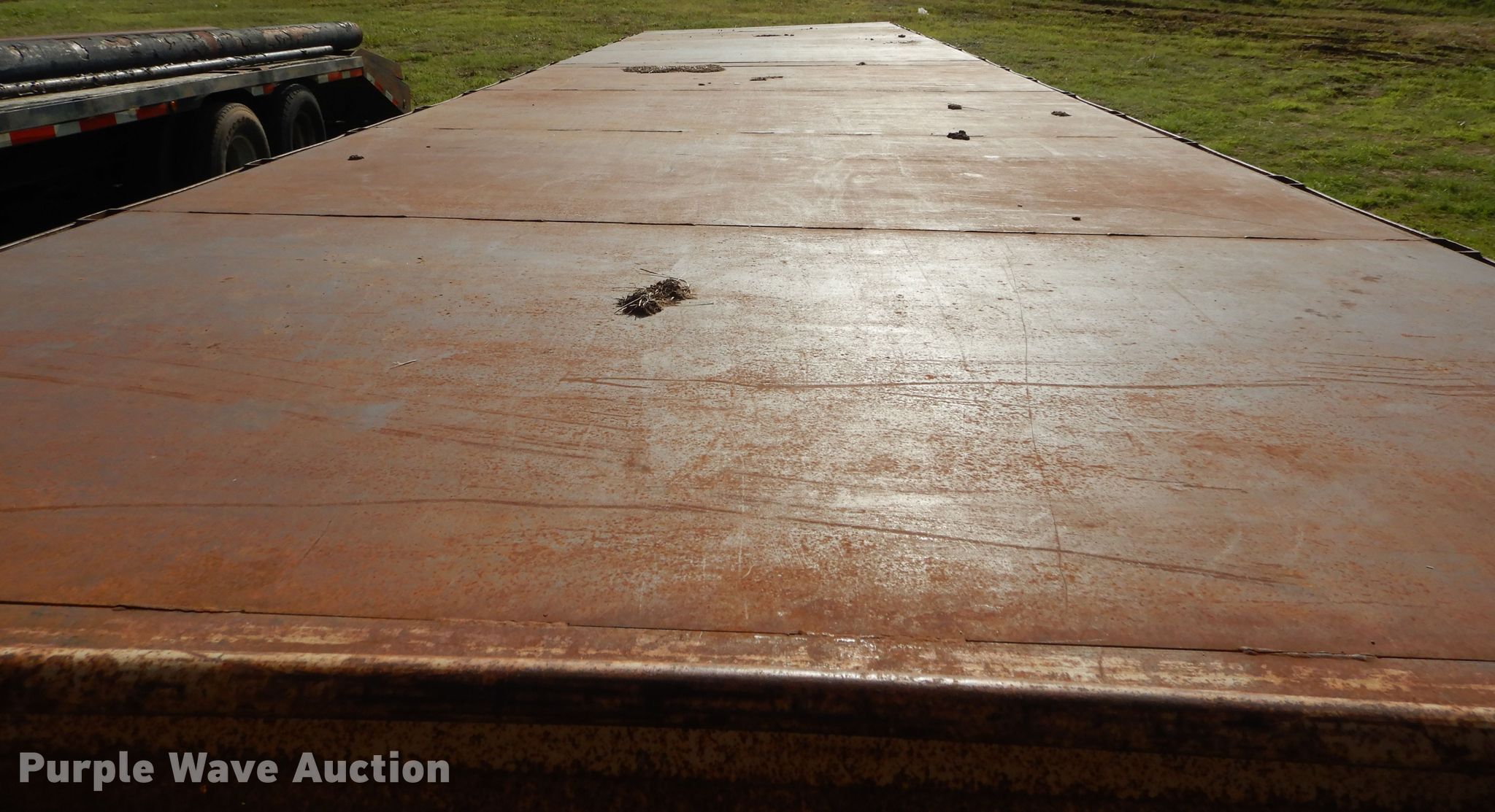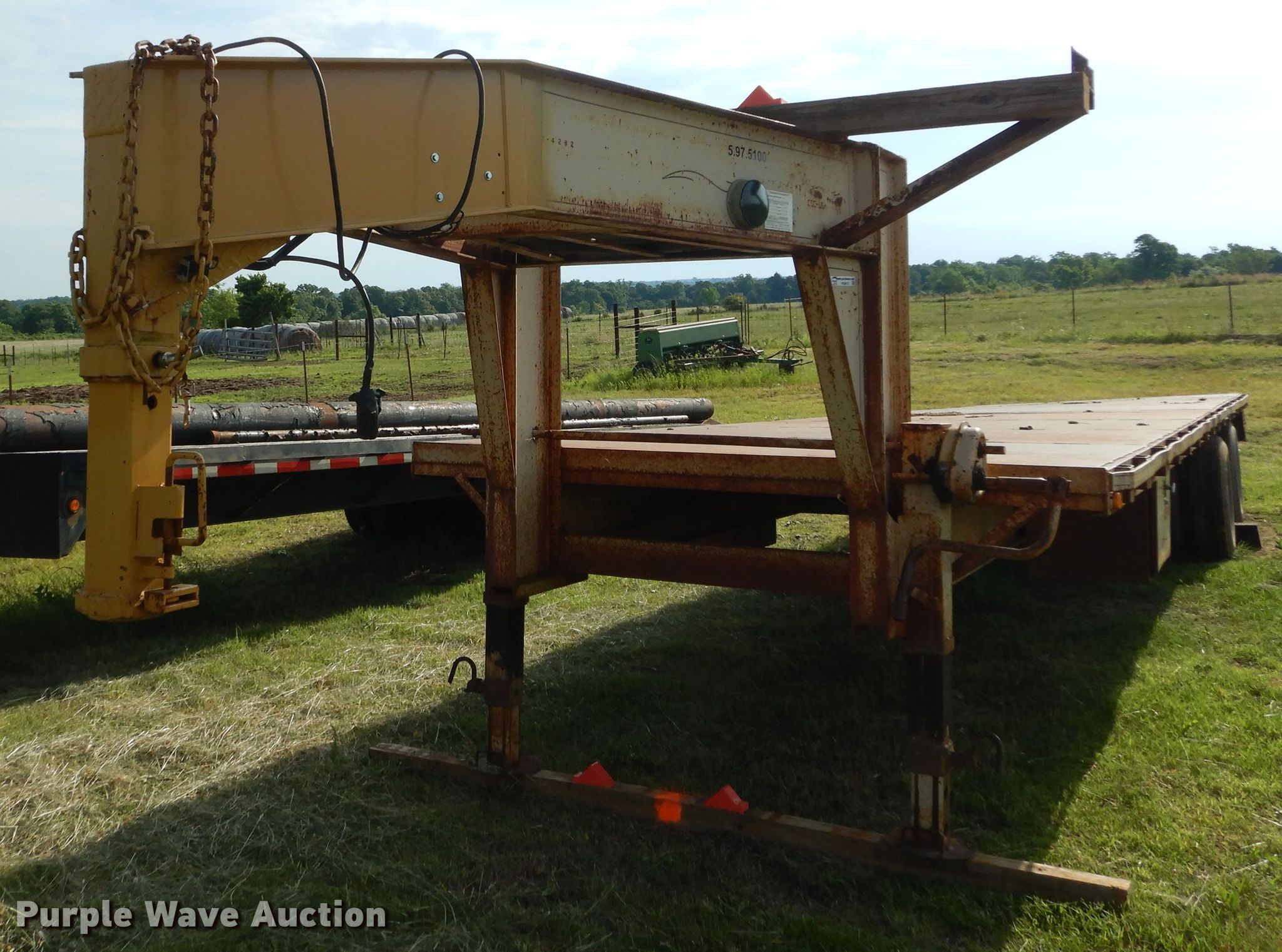 Purple Wave is selling a used Equip. Trailer in Oklahoma. This item is a Starlight equipment trailer with the following: 40'L x 96"W overall, 32'L x 8'W deck, Steel deck, Dual leg landing gear, Spring suspension, Electric brakes, Tandem axle, 235/85R16 tirs, GVWR 20,000 lbs