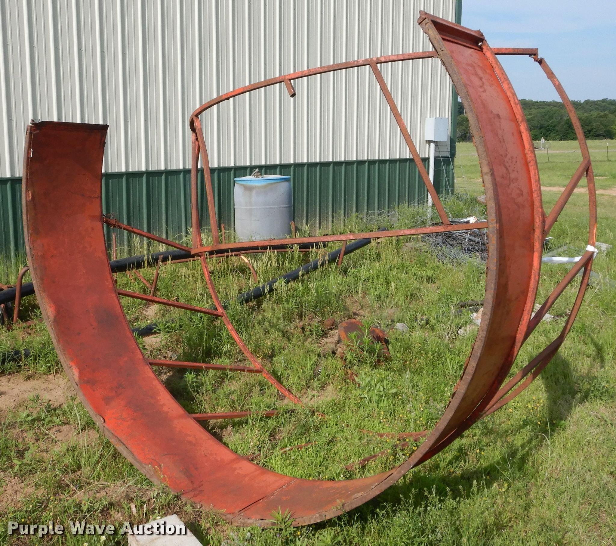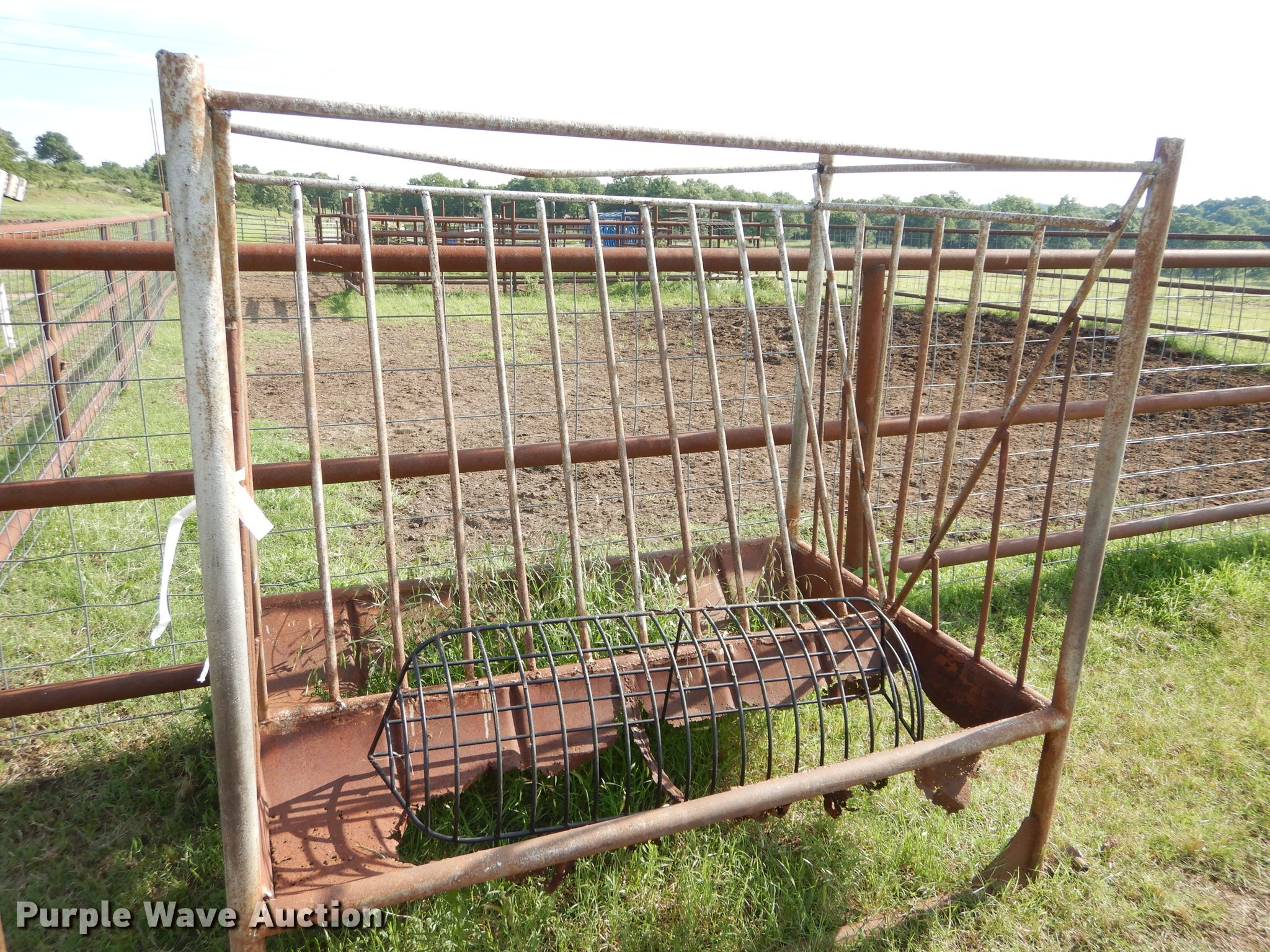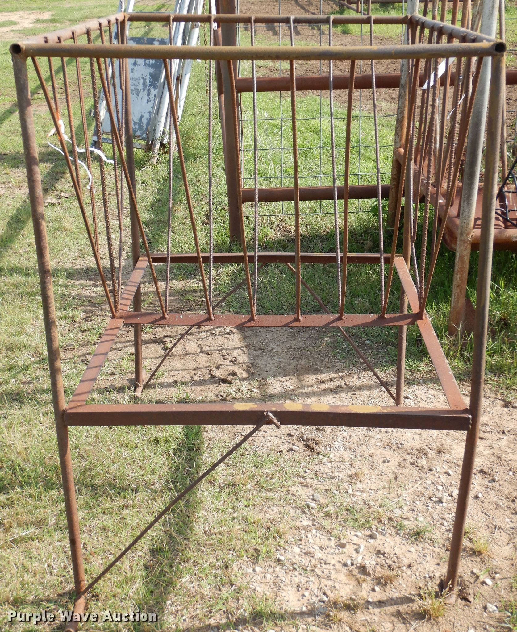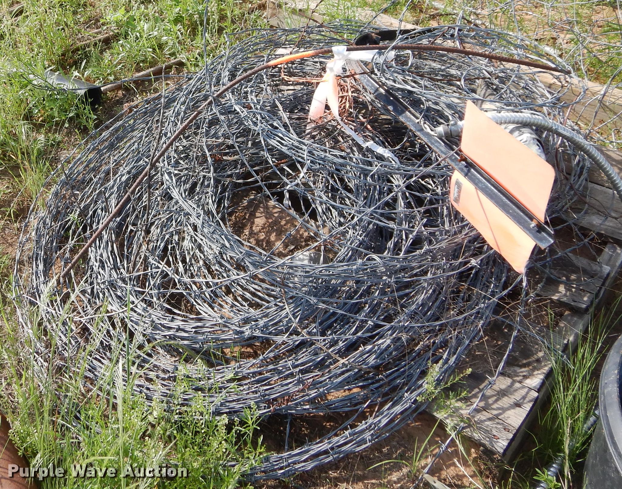 Purple Wave is selling a used Livestock Equip. in Oklahoma. This item is a Livestock feeders with the following: Trough feeders, Hay bale rings, Rolls of barbed wire