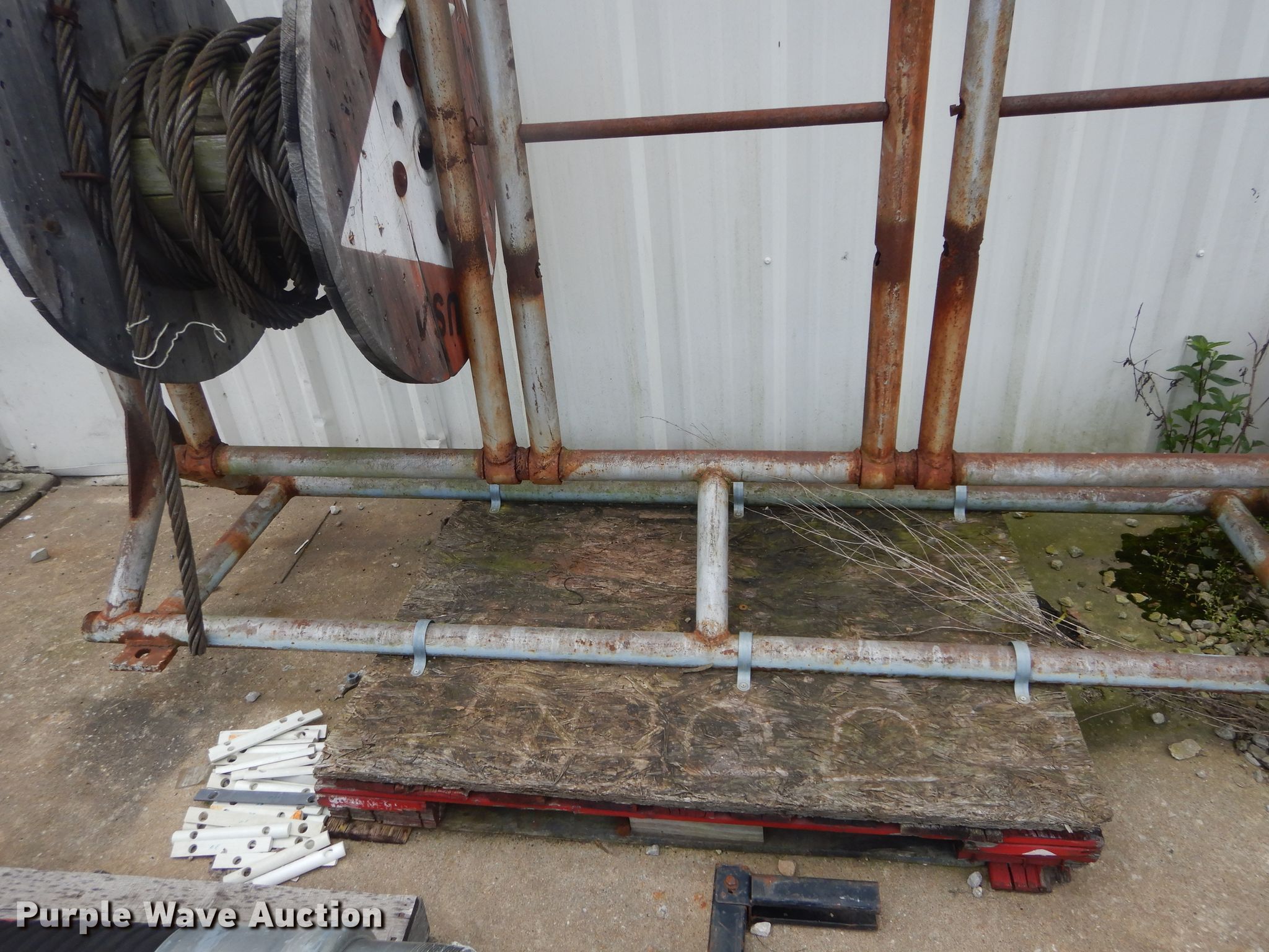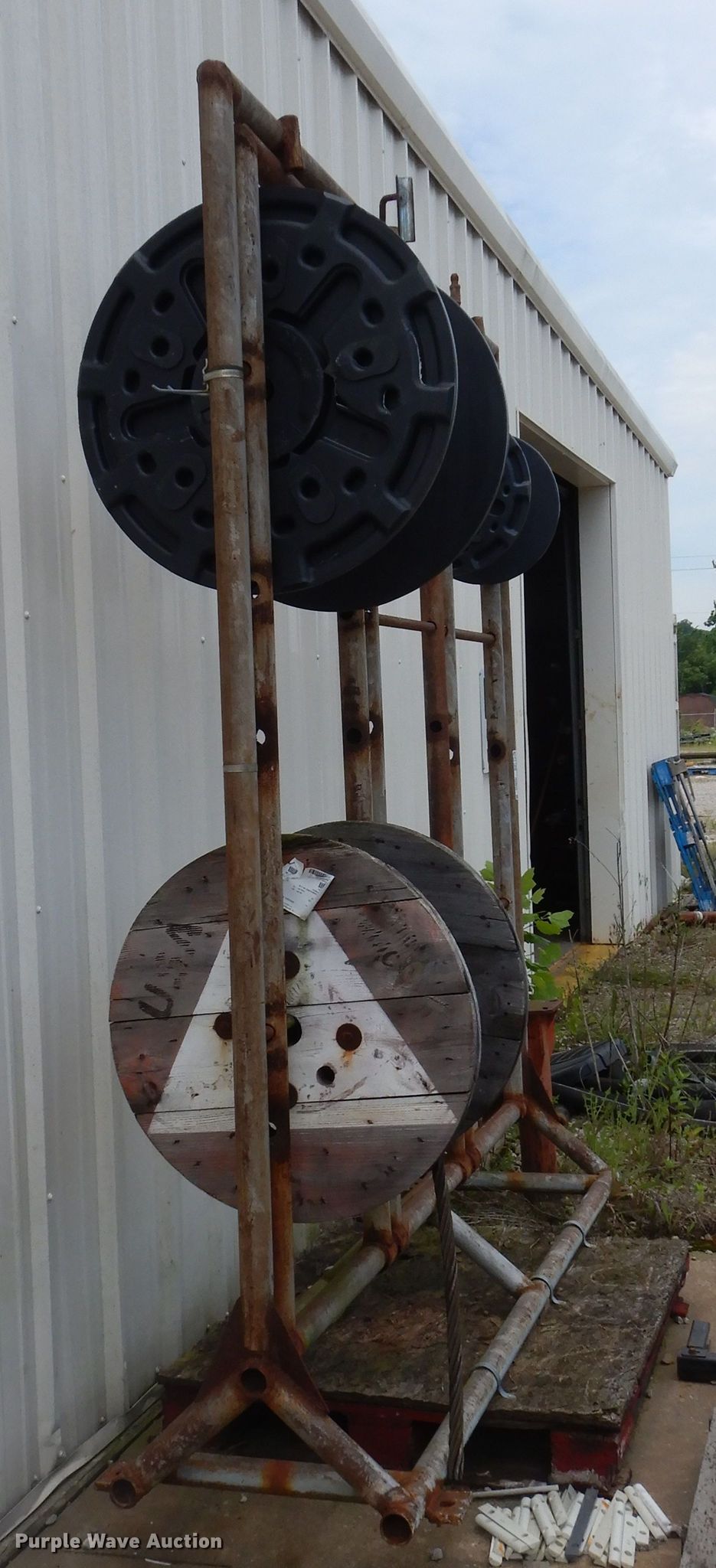 Purple Wave is selling a used Tools in Oklahoma. This item is a Cable reel stand with the following: Approx. 7 reel capacity