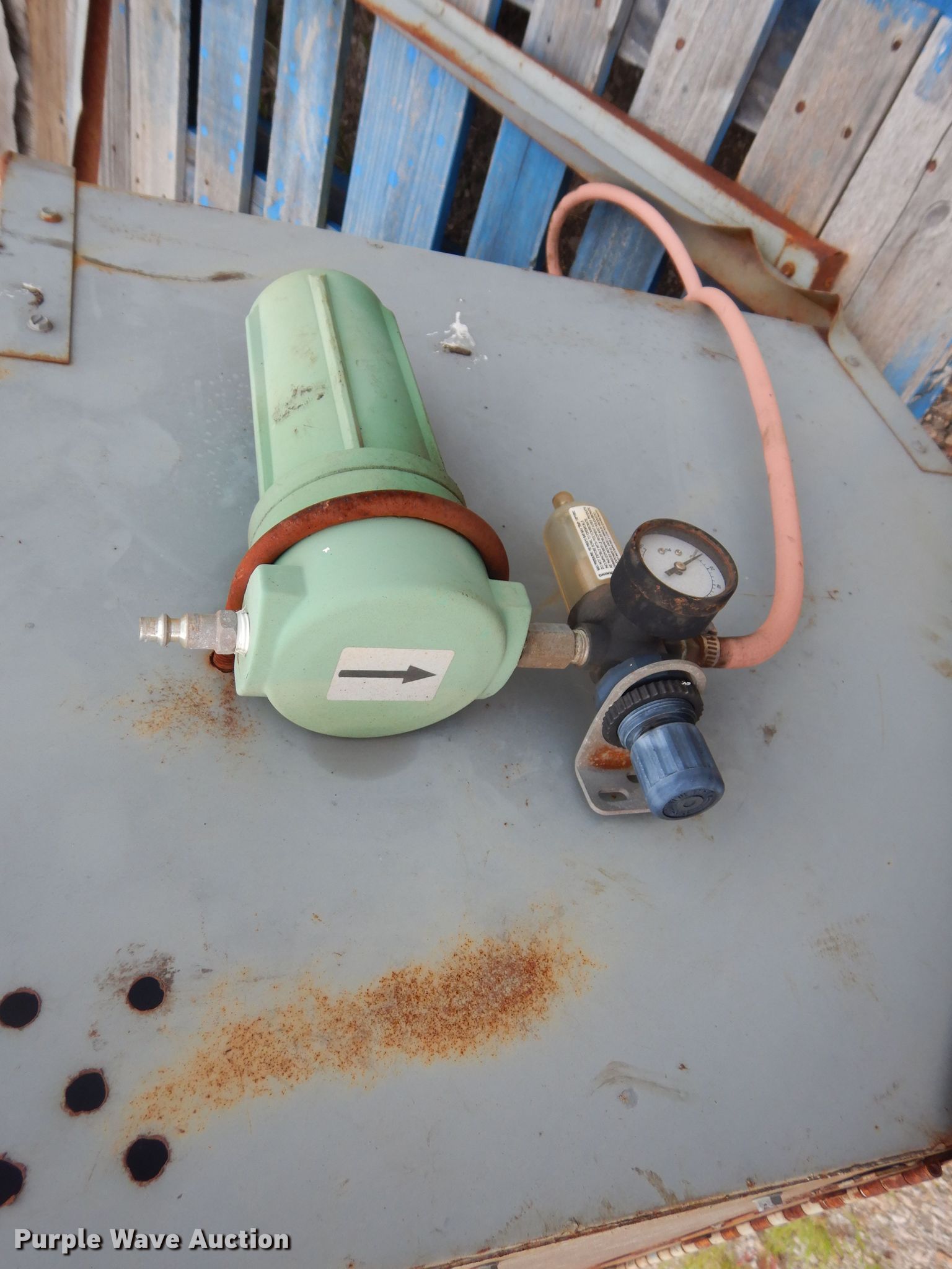 Purple Wave is selling a used Tools in Oklahoma. This item is a Sandblast cabinet with the following: Gloves, Gun, Air hookup, Regulator