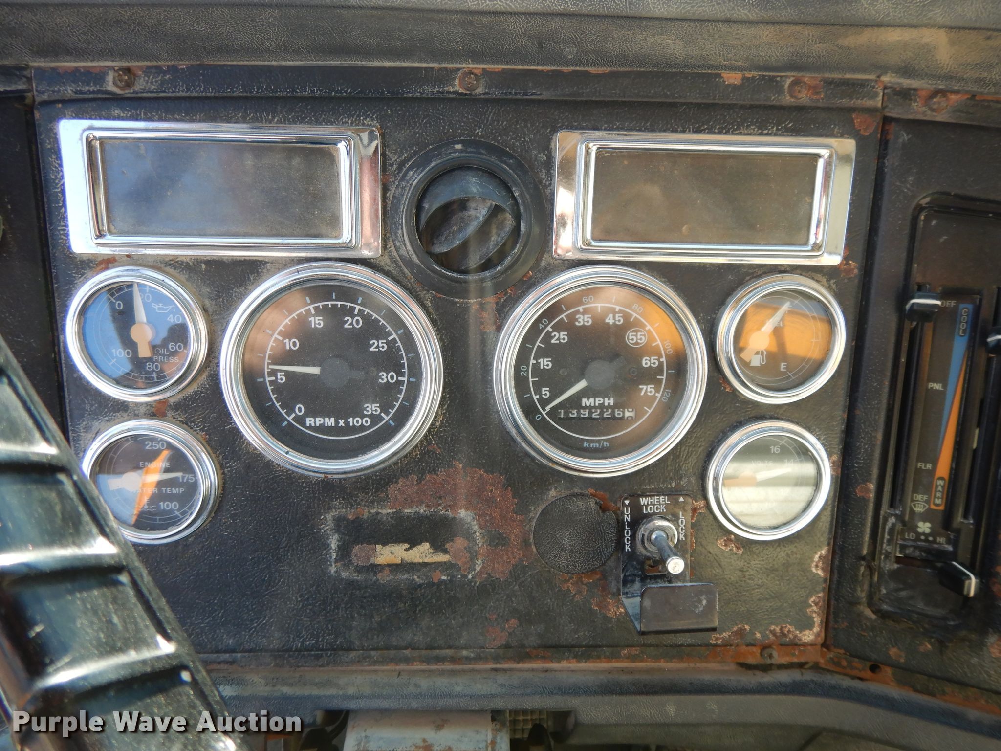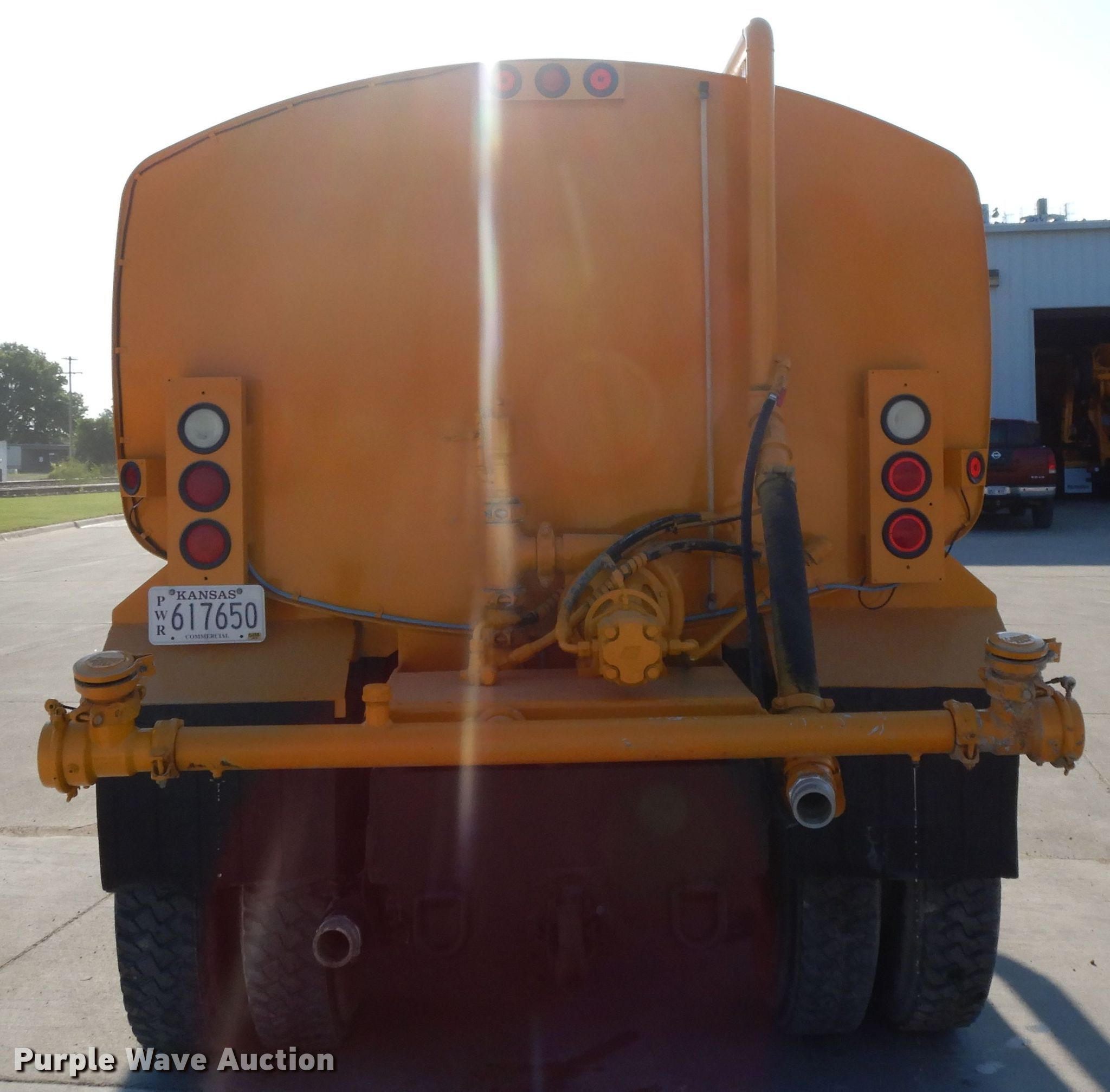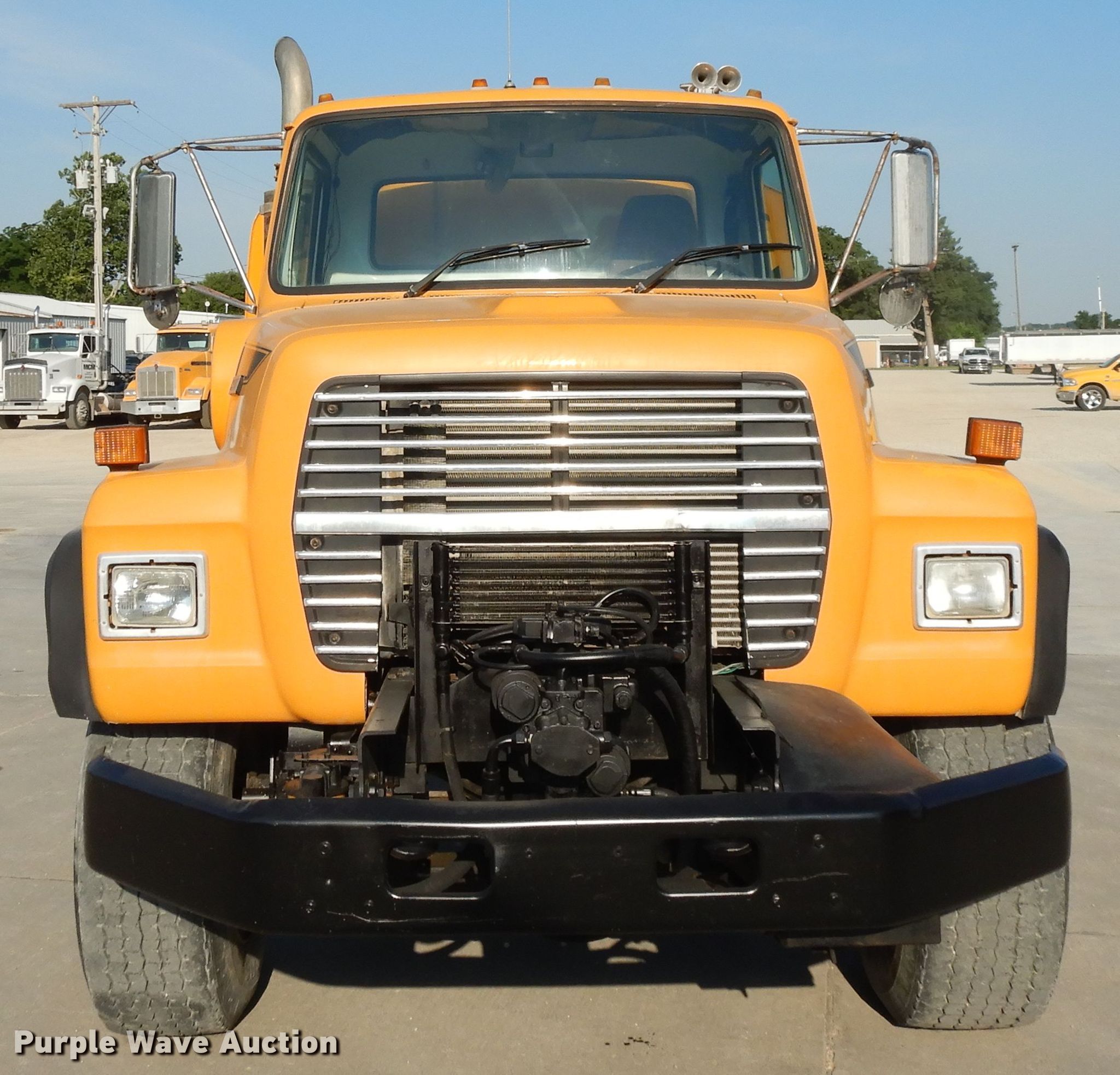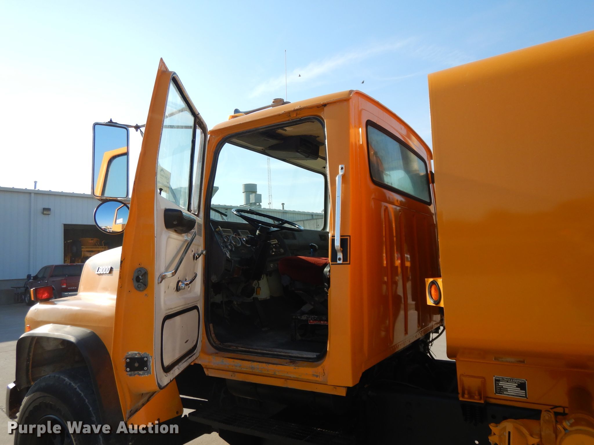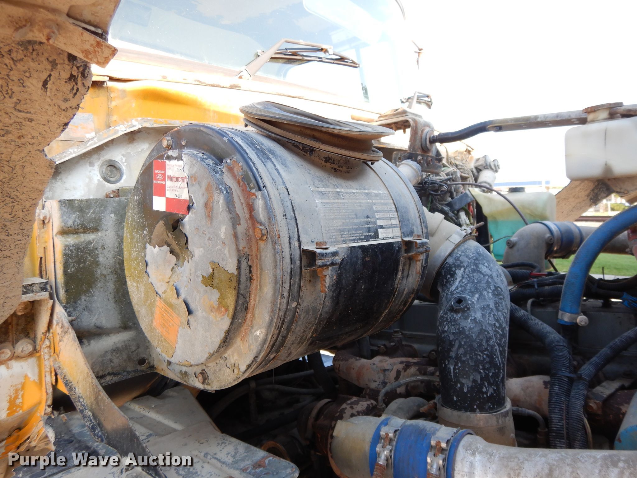 1996 Ford L8000 water truck. 139,226 miles on odometer. Engine Cummins C8.3-275, Serial: 45262743, Displacement: 8.3L, Cylinders: 6, Fuel type: Diesel. Transmission Manual, Speed: 9. Chassis Axles: Tandem, Suspension: Walking beam, Brakes: Air, PTO, GVWR: 60,000 lbs, Wheelbase: 222". Interior Heat. Operational Bed / tank United Truck Equipment, Serial: S0157726, Capacity: 4,000 gallons, 14' L, Spray bar: Rear, Side discharge, Top fill, Rear drain: 3". Tires Front: 385/65R22.5, Rear: 11R22.5. Notes Maintenance records available upon request , Possible oil leak. Kansas title. 1FDZU82E6TVA17035. Midwest Concrete Materials. Manhattan, KS 66503