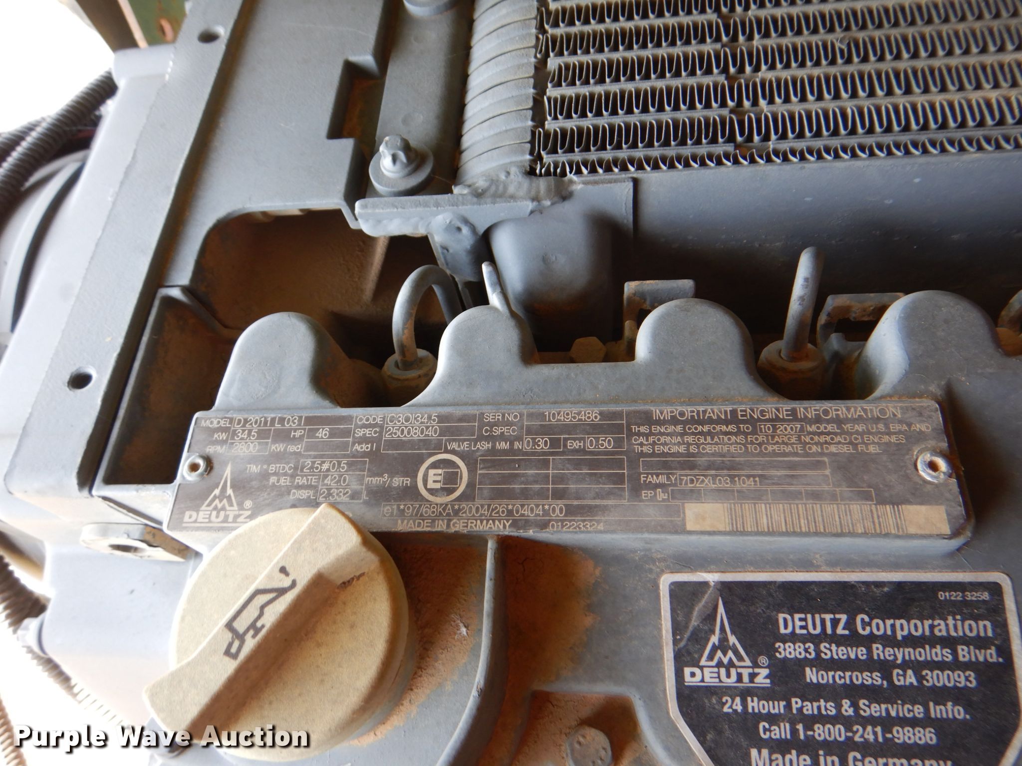 1995 Powerscreen MK11 screen. Unknown hours on meter, Serial: C2741287. Engine Deutz D2011L03 I, Serial: 10495486, Cylinders: 3, Fuel type: Diesel, HP: 46, kW: 34.5. Chassis Axles: Tandem. Operational Length: 57', Decks: Single, Screen size Top: 4.5", Input hopper Length: 9', Width: 6', Discharge conveyor Width: 24", Length: 38', Hydraulic leveling, Tire size: 7.50R16. Notes Tires need replaced, Unknown operating condition. Luciano Haros. 4017 Windmill Rd. Joshua, TX 76058