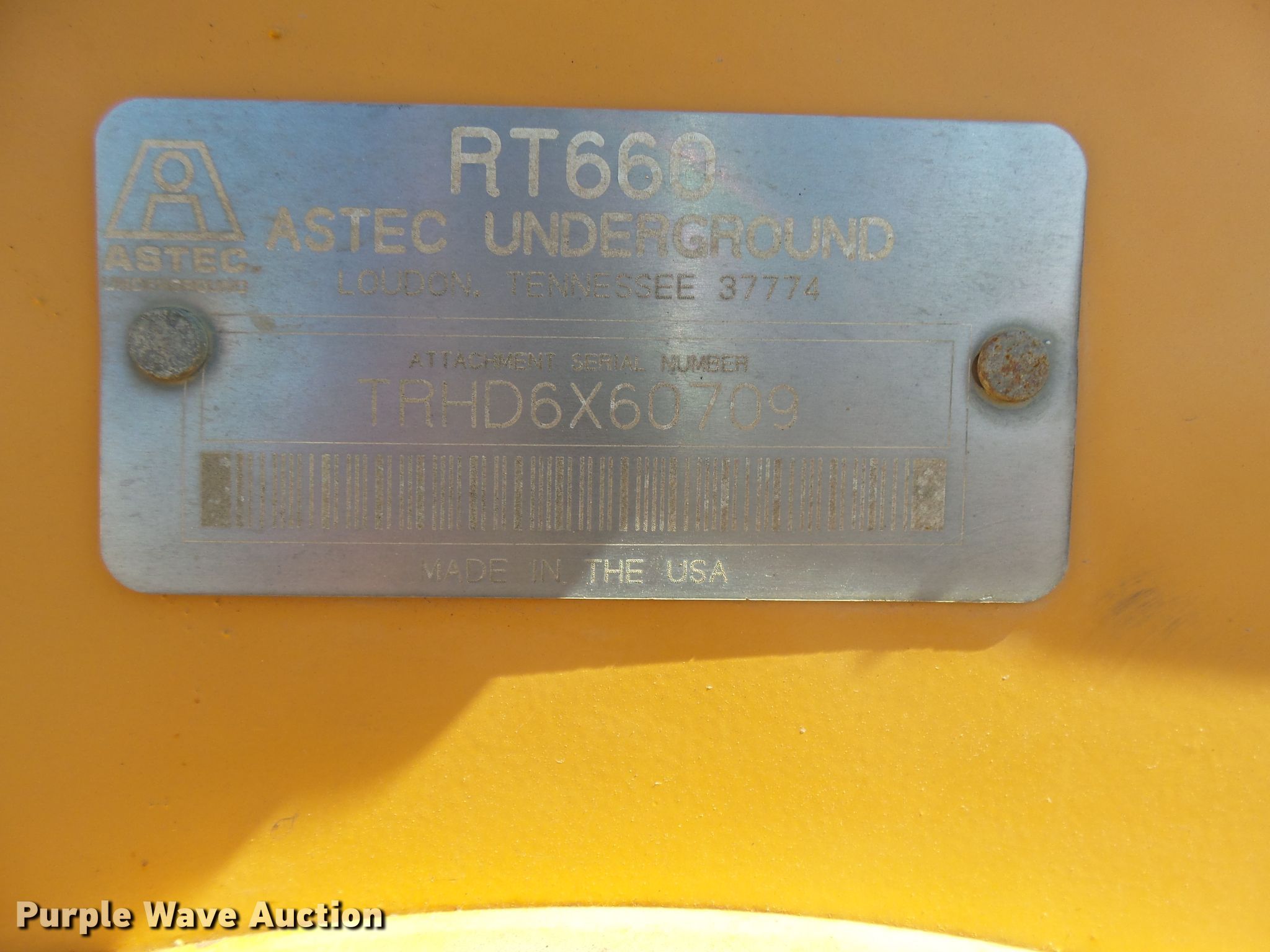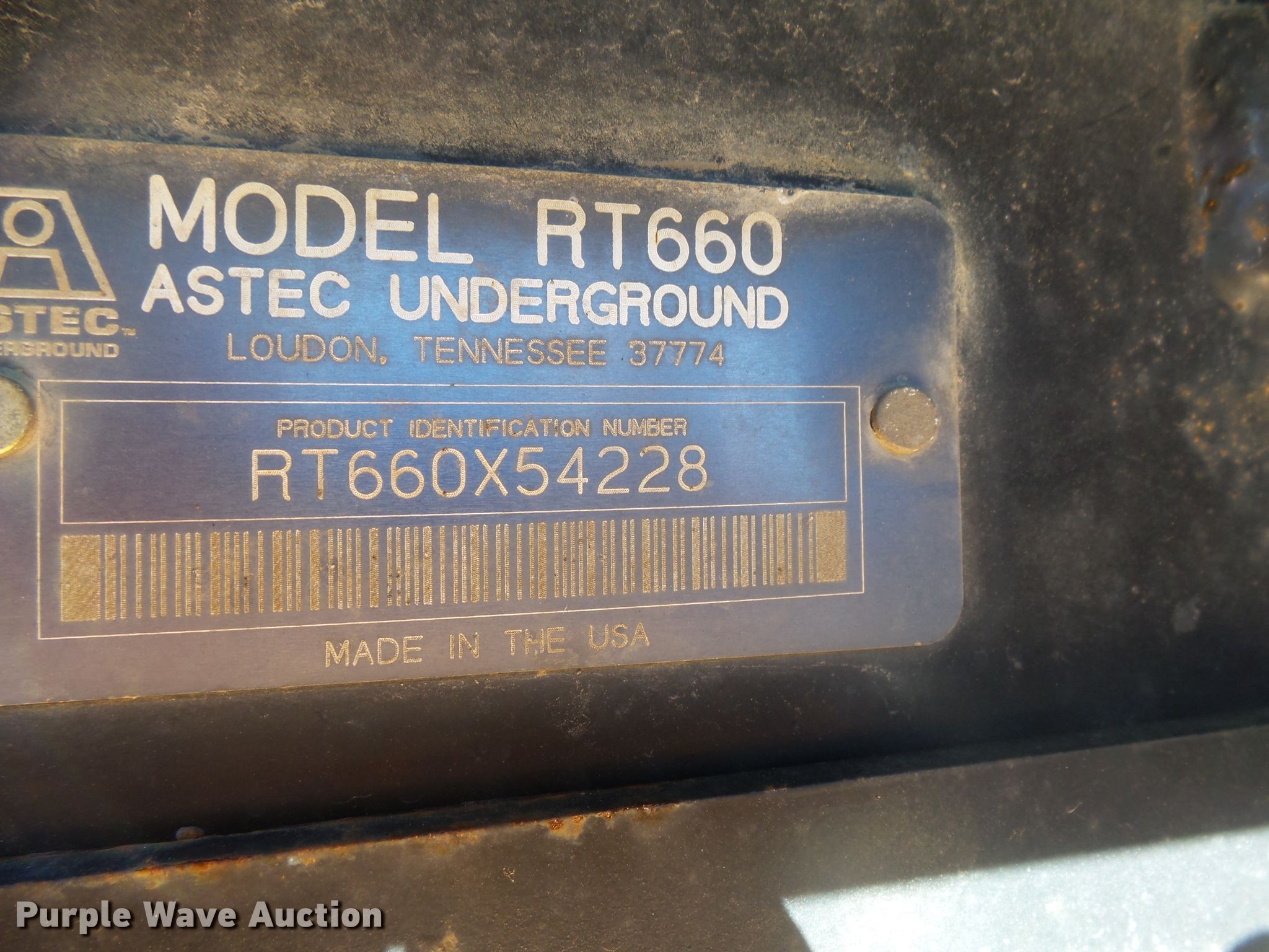Purple Wave is selling a used Trencher or Rock Saw in Iowa. This item is a 2007 Astec RT660 trencher with the following: 904 hours on meter, Serial: RT660X54228