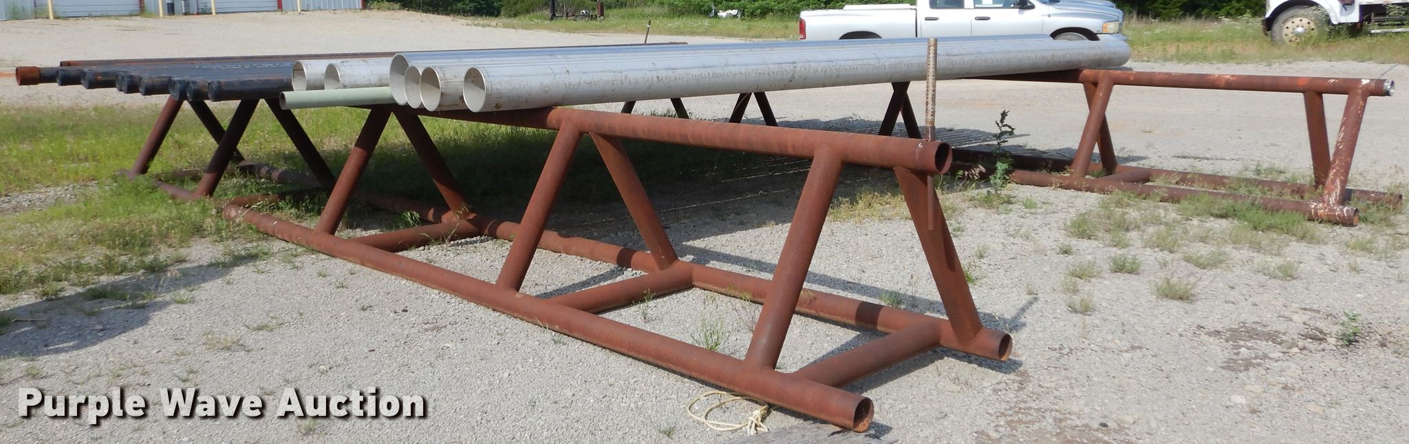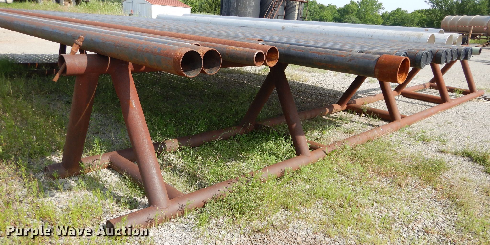 Purple Wave is selling a used Pipe in Oklahoma. This item is a (37) pipes with the following: Approx. 24 25'L x 4" diameter, Schedule 40, Approx. 2 stainless steel pipes, 3" diameter, Approx. (6) 20'L x 8.5" diameter stainless steel pipe, Approx. 20'L x 10 3/4" diameter stainless steel pipe, Approx. 4 20'L x 3" diameter welding pipe, 25'L x 36"H pipe rack