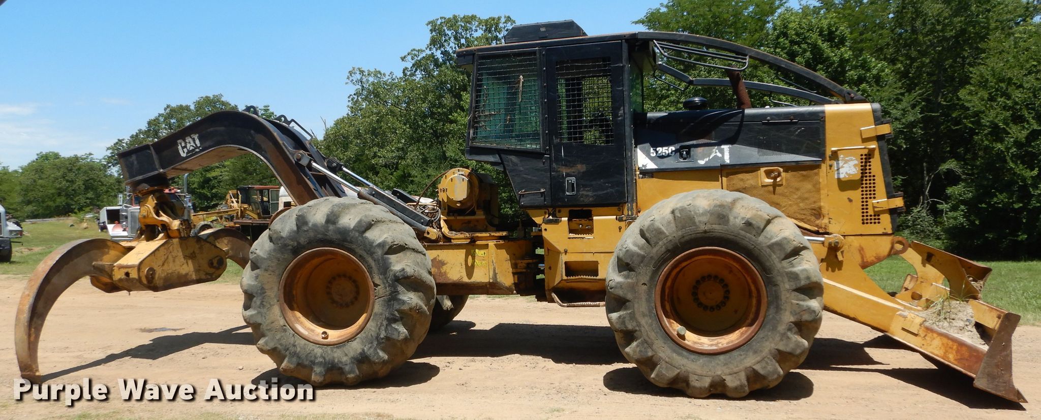 Purple Wave is selling a used Skidder in Oklahoma. This item is a 2009 Caterpillar 525C skidder with the following: 13,312 hours on meter, 1,485 miles on odometer, Caterpillar C7 Acert 6 cylinder diesel engine, 125"W backfill blade, Tiger winch, Grapple, 30.5L-32 tires, Hydraulic leak, Serial CAT0525CV52500742