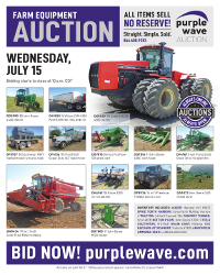 Bids over the amount of $10,000.00 are subject to Purple Wave's qualification process. Verification may include, but is not limited to, providing a bank letter of guarantee, credit references or credit card pre-authorization. Purple Wave may take any or all of these measures at any point during the auction. Purple Wave reserves the right to strike any Internet bid if the bidder refuses or fails to timely cooperate with Purple Wave's efforts to verify the bidder's qualification to bid. By registering to bid in this auction, you authorize all credit references, banks and credit reporting agencies to provide complete information about your credit to Purple Wave. For questions regarding Purple Wave's bid qualification process, please contact Gretchen Hedrick, Credit Specialist, at [email protected] or call 785.229.0361.