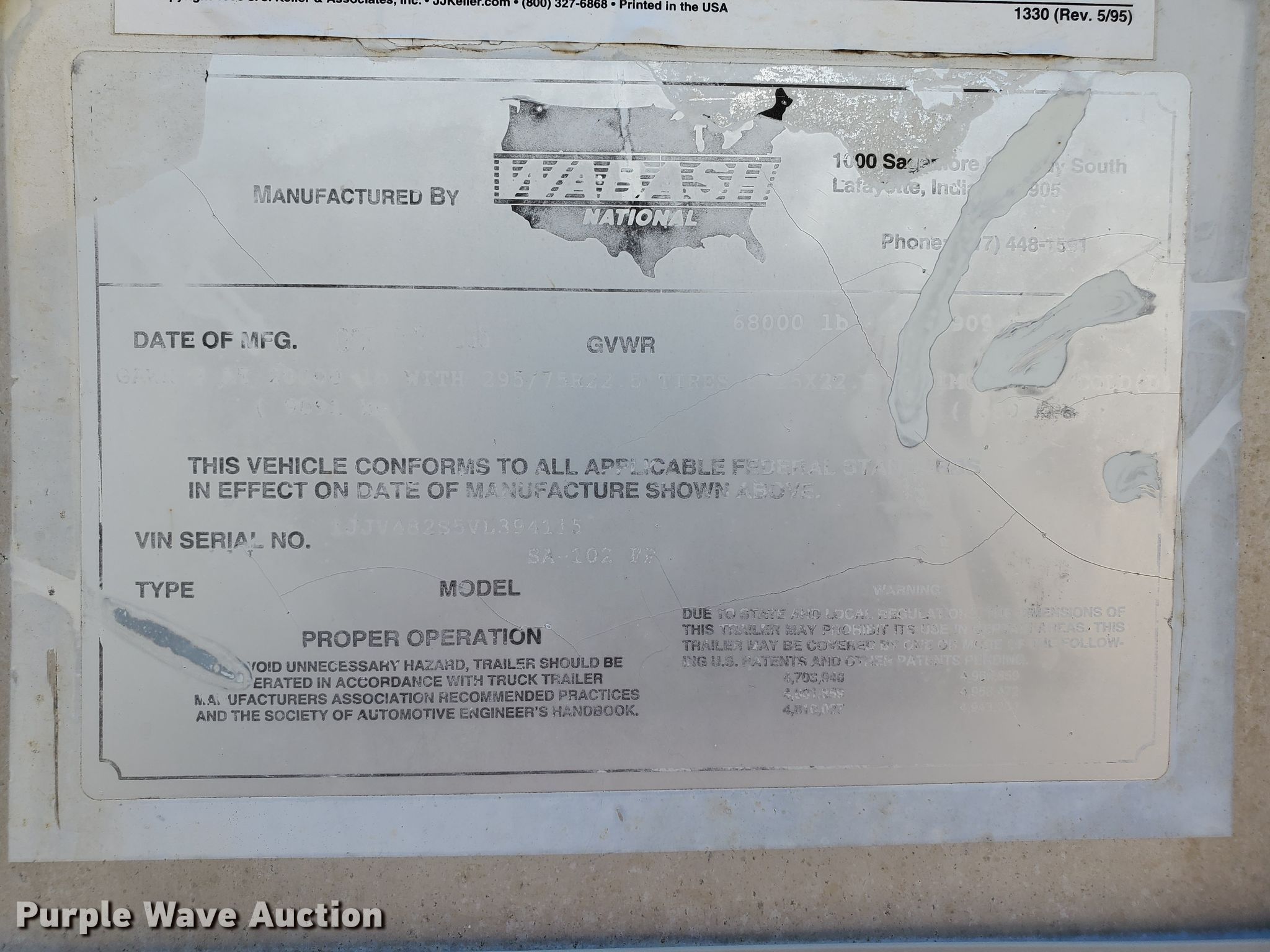 Purple Wave is selling a used Dry Van Trailer in Kansas. This item is a 1997 Wabash SA-102FF dry van trailer with the following: 53'L x 102"W, Wood floor, E-track rail system, Dual leg landing gear, Air suspension, Air brakes, Tandem axle, Steel wheels, 295/75R22.5 tires, GVWR 68,000 lbs
