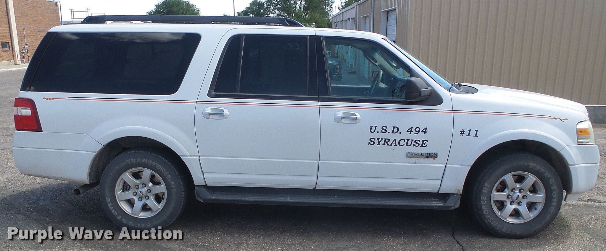 2008 Ford Expedition XLT SUV. 238,396 miles on odometer, Miles may vary, unit still in use. Engine Displacement: 5.4L V8 SOHC 16V, Cylinders: 8, Fuel type: Gas. Transmission Automatic, Four wheel drive. Interior AC, Heat, Seat: Power driver, Power windows, Power locks, Cruise control. Tires Size: LT265/70R17. Notes Decals will be removed prior to auction , Hail damage. Kansas title. 1FMFK16588LA58926. USD 494. 103 Ave F. Syracuse, KS 67878