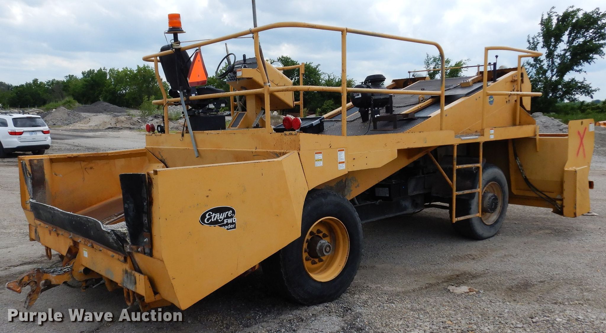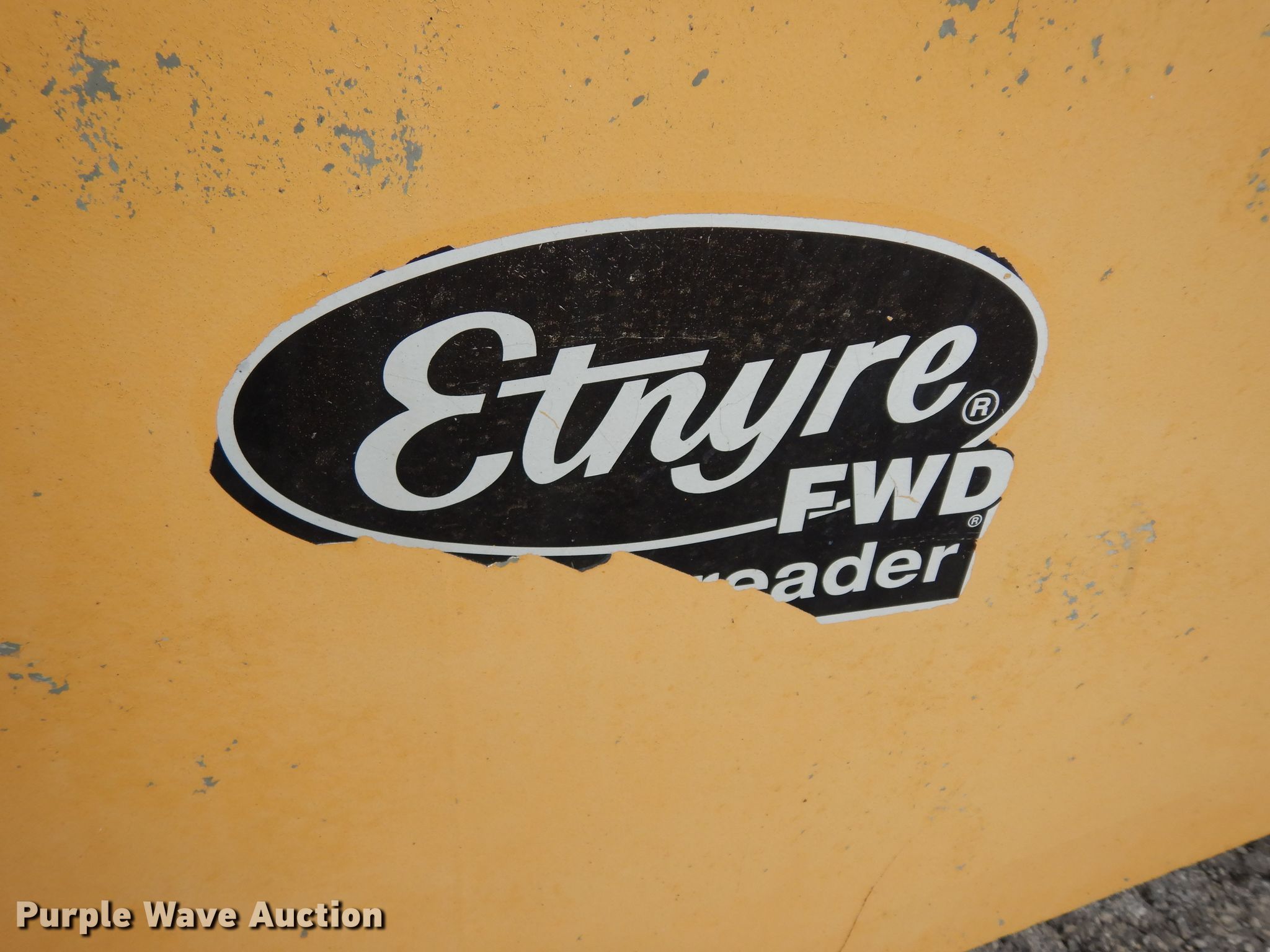 2001 Etnyre FWD chip spreader. Approximately 3,000 hours on unit. Engine Cummins, Cylinders: 6, Fuel type: Diesel, HP: 200. Transmission Hydrostatic. Operational Screed Paving width: 7'4" to 11', Front spread hopper width: 12', Material conveyor Width: 16.5". Tires Size: 385/65R22.5, Brand: Yokohama. Paola, KS 66071