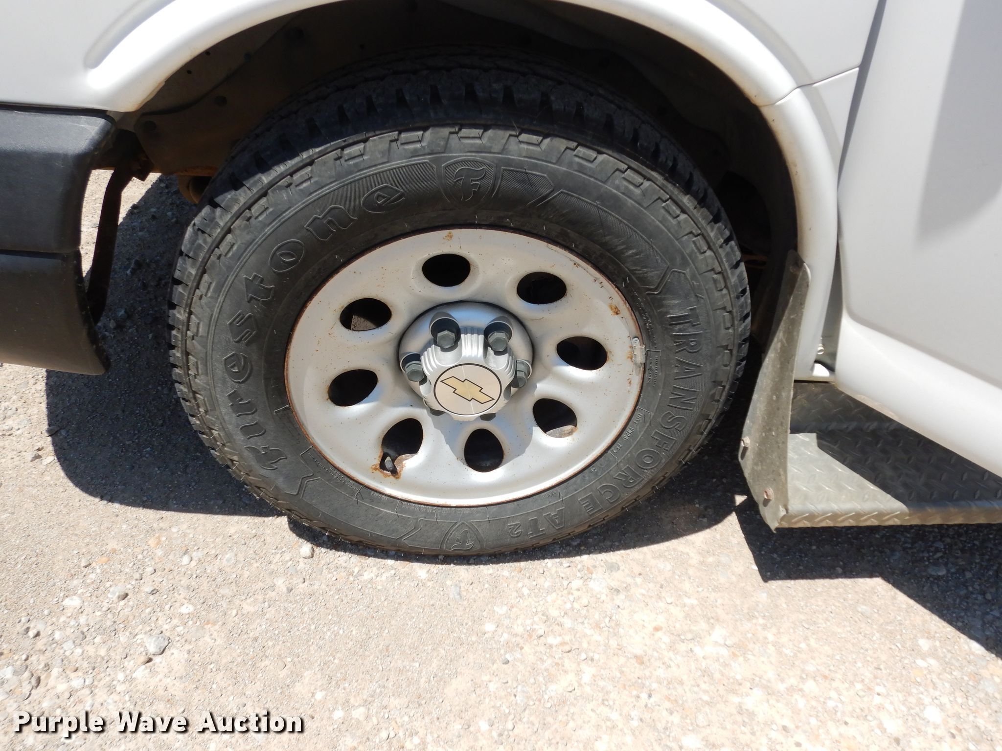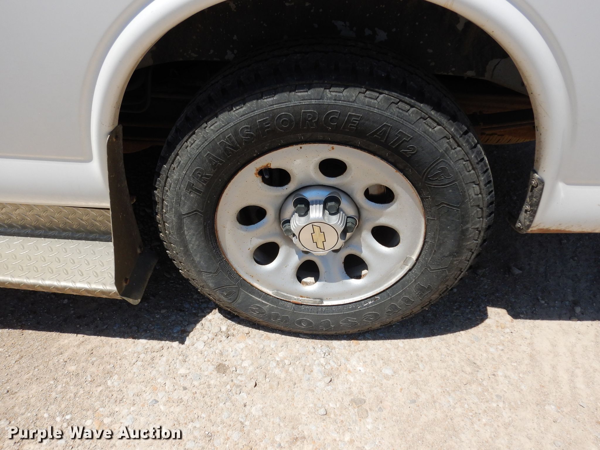 2011 Chevrolet Express 1500 van. 199,833 miles on odometer. Engine Displacement: 5.3L V8 OHV 16V, Cylinders: 8, Fuel type: Gas. Transmission Automatic. Interior AC, Heat, Power windows, Power locks, Cruise control. Tires Size: 245/70R17. Notes Two-way radio not included, Lifters tap, Windshield cracked. Kansas title. 1GNSGBF41B1142114. Perry , KS 66073