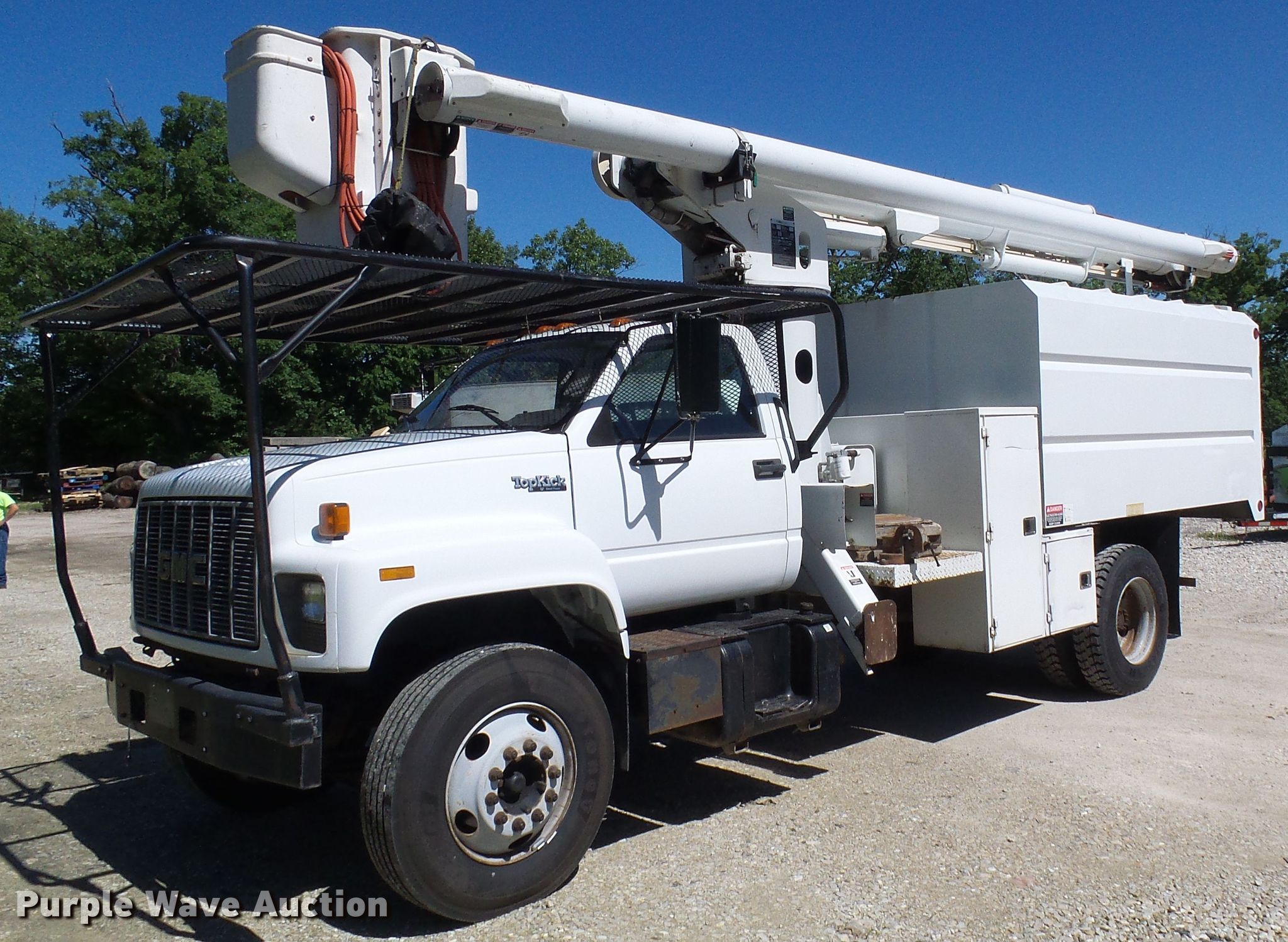 Purple Wave is selling a used Bucket Truck in Missouri. This item is a 1996 GMC TopKick C6500 forestry bucket truck with the following: 17,490 miles on odometer
