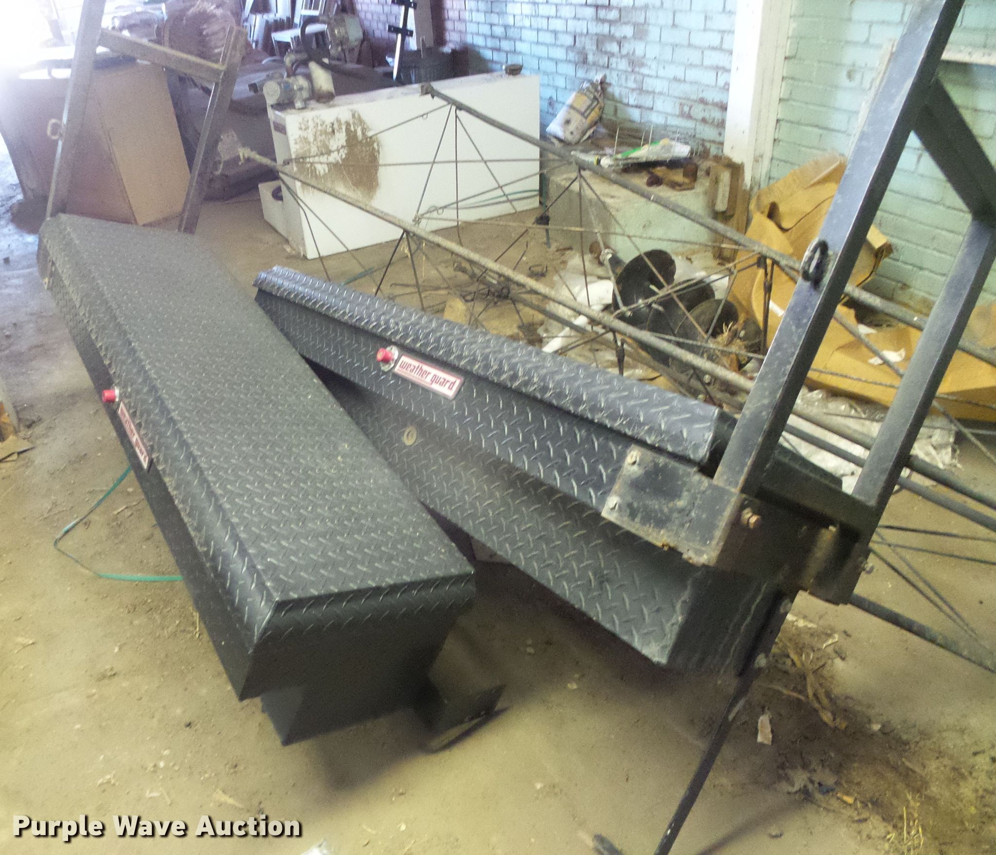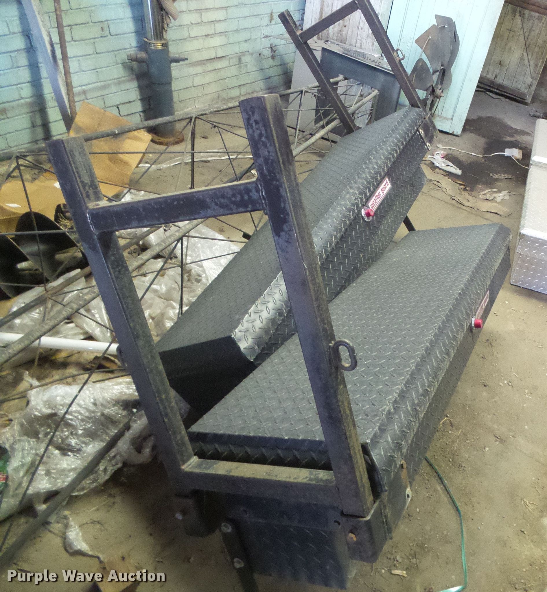 Purple Wave is selling a used Automotive Parts or Acces. in Kansas. This item is a Automotive accessories with the following: Weatherguard L-shaped fuel tank, Pump, Meter, (2) Weatherguard toolboxes, Diamond tread toolbox