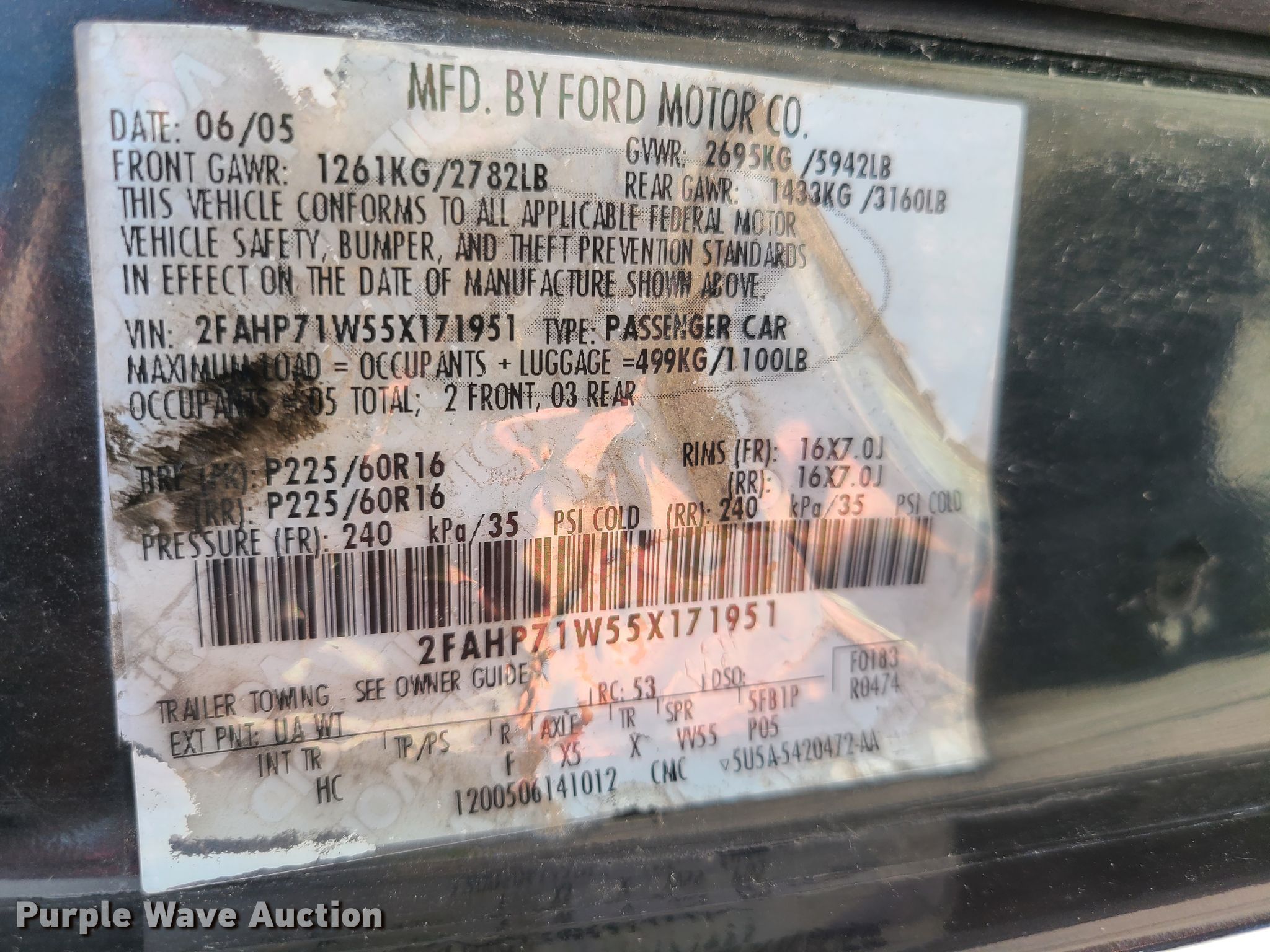 2005 Ford Crown Victoria Police Interceptor. 113,966 miles on odometer. Engine Displacement: 4.6L V8 SOHC 16V, Cylinders: 8, Fuel type: Gas. Transmission Automatic. Interior AC, Heat. Tires Size: 225/60R16. Notes Police radio and dash lights not included. Missouri title. 2FAHP71W55X171951. City of Raytown. 10014 E 65th St. Raytown, MO 64133