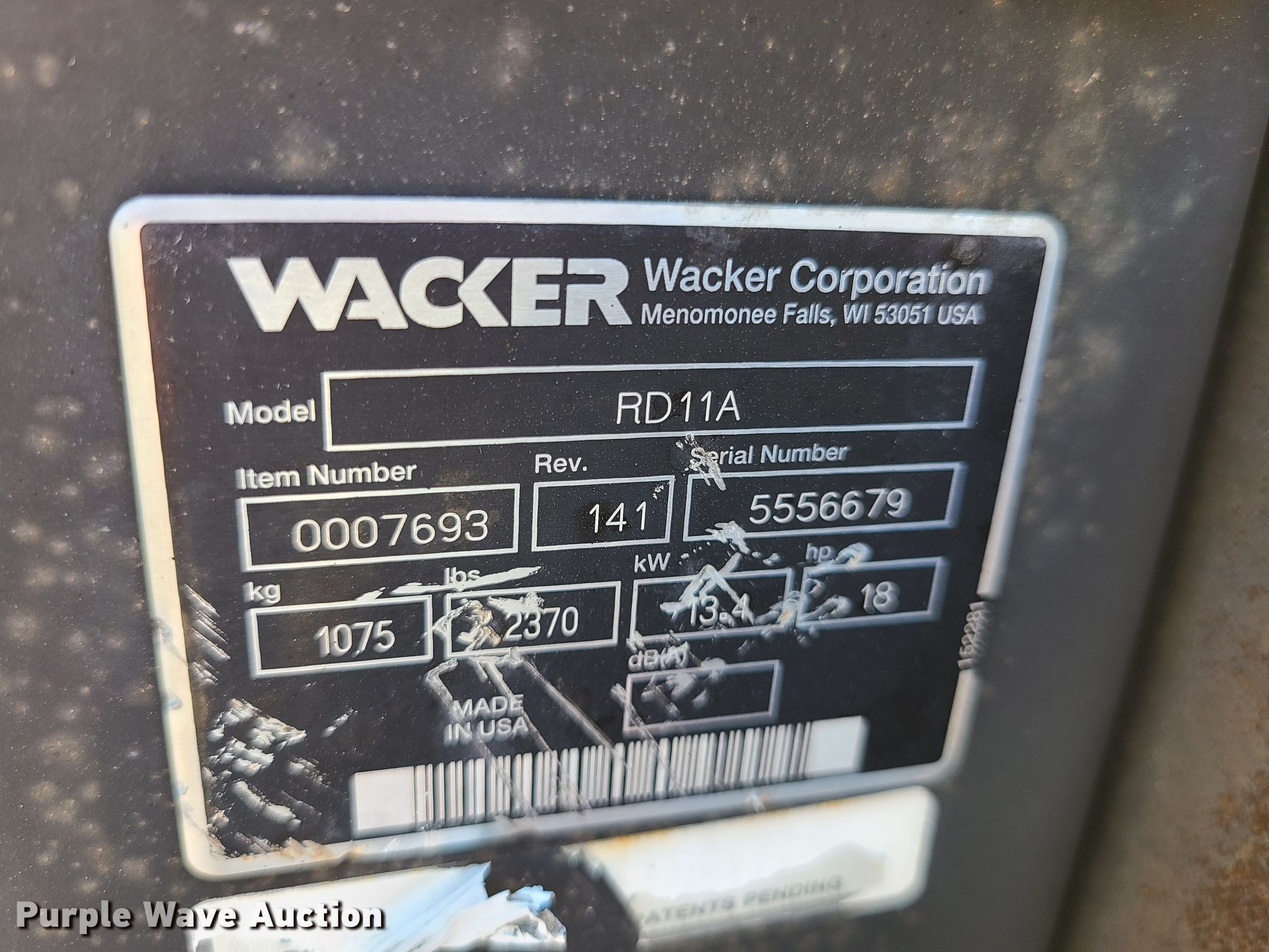 Purple Wave is selling a used Double Drum Roller Compactor in Missouri. This item is a Wacker RD11A double drum roller with the following: Serial: 5556679