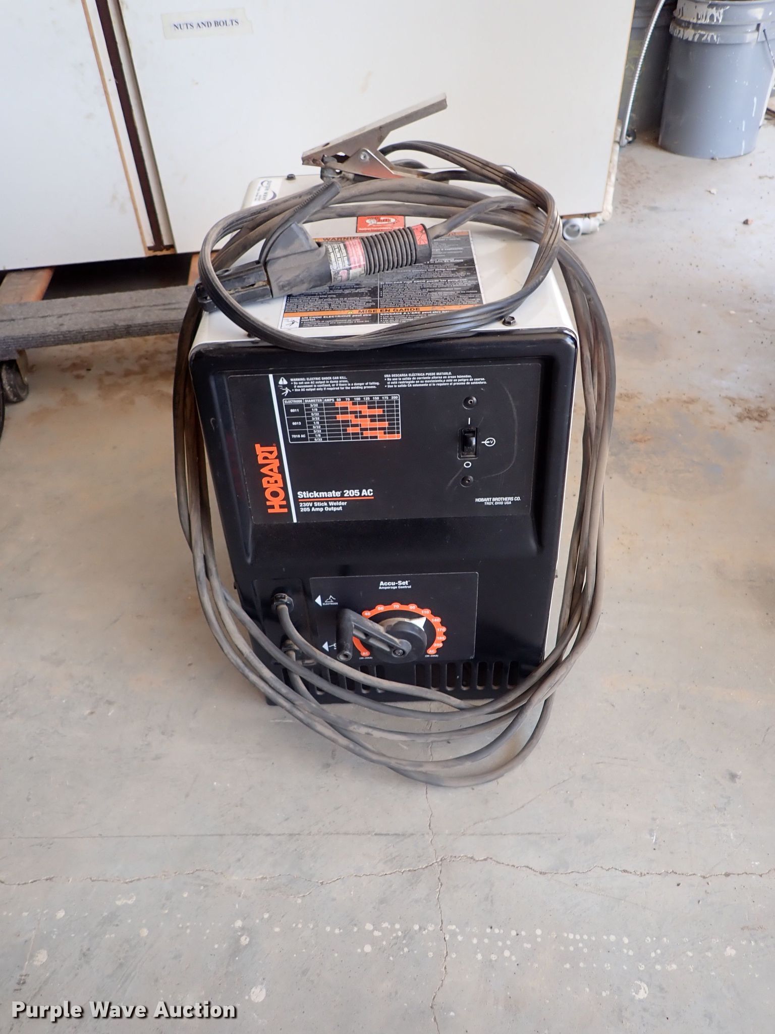 Purple Wave is selling a used Welder (Manual) in Kansas. This item is a Hobart Stickmate 205 AC stick welder with the following: 230V, 205 amp output, Serial ME374043Y