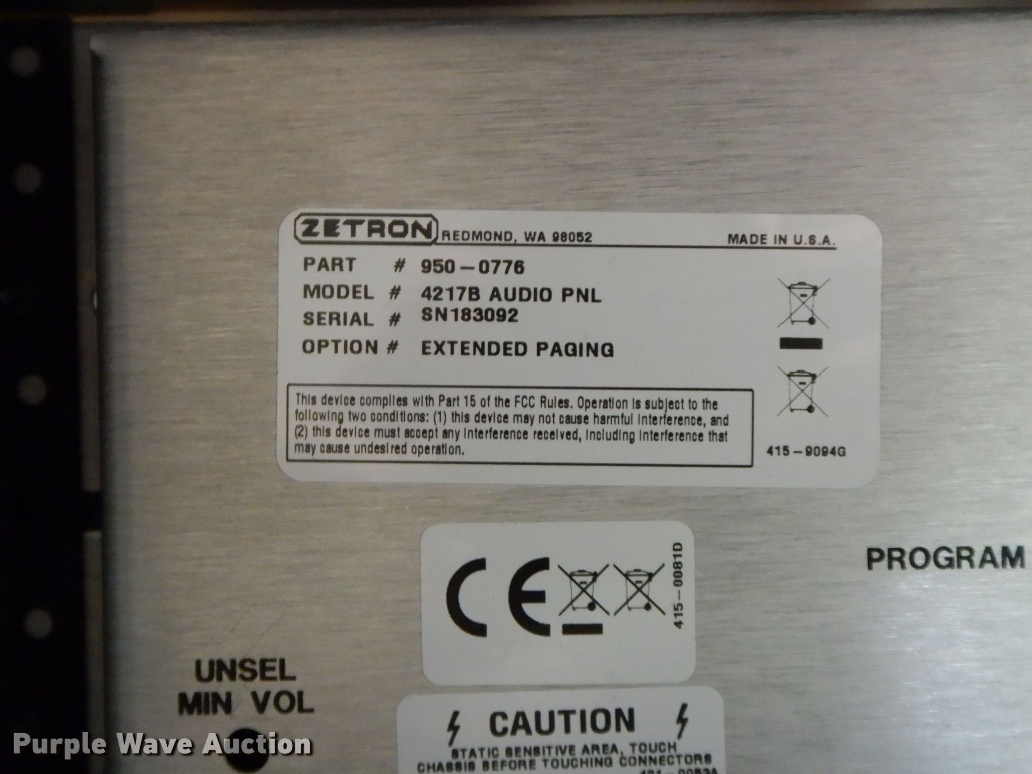 Electronics. Approx. 5 Zetron 4217B audio panels, Approx. 5 Zetron M4010TRHI interfaces, MultiTech MT5600 series multimodems Serial 8889637. Stone County Emergency Services. 105 Stonebridge Parkway. Branson West, MO 65737
