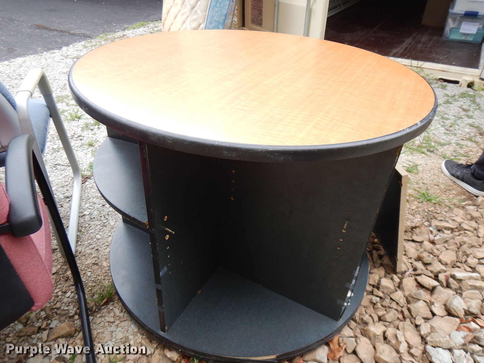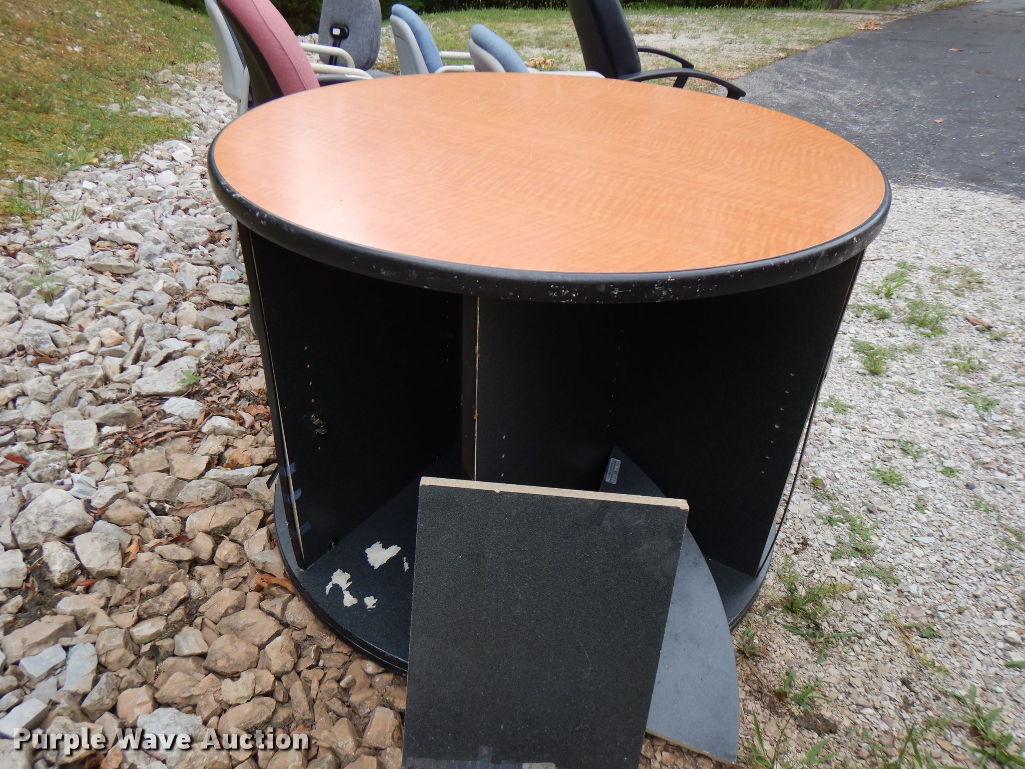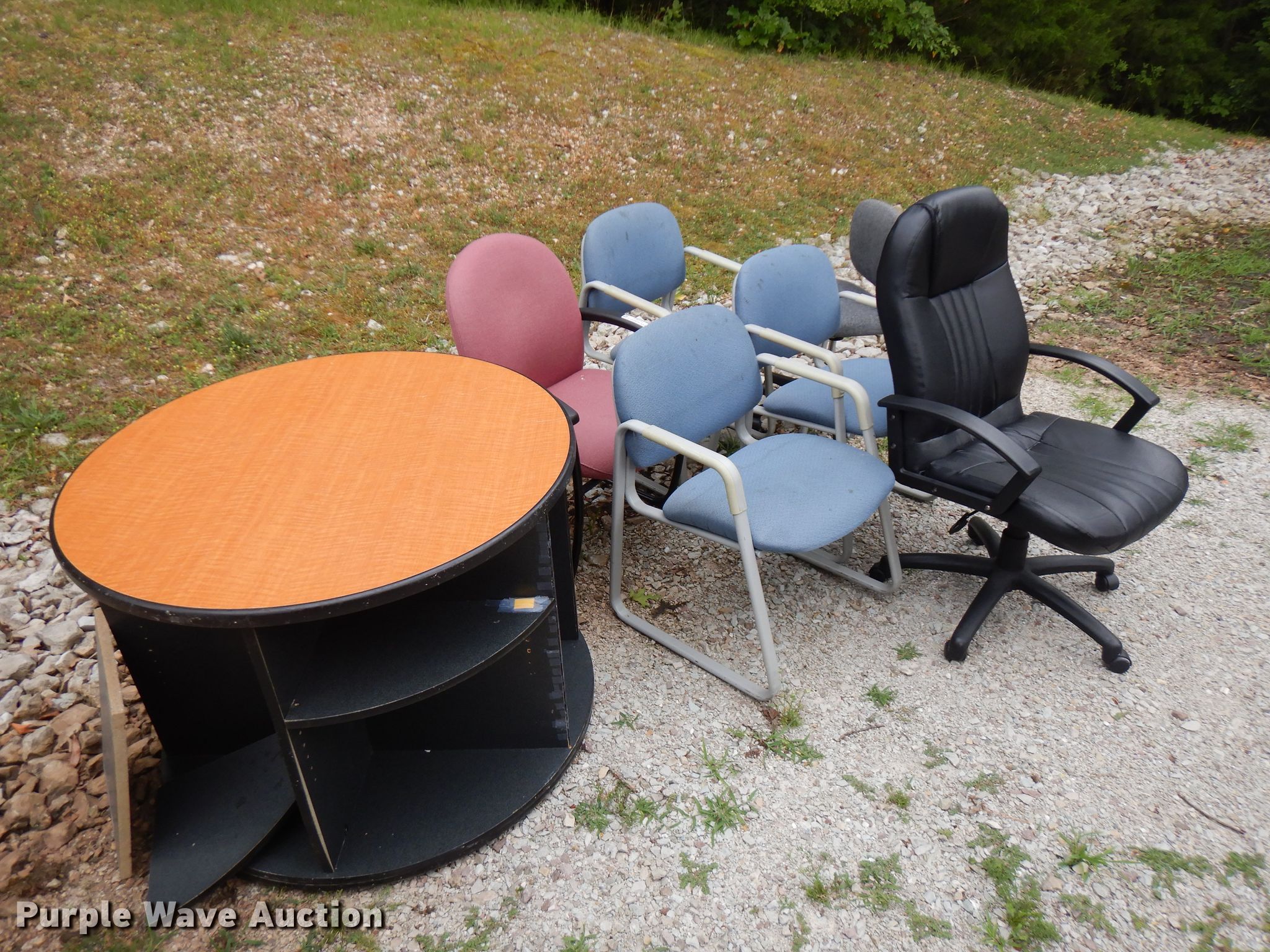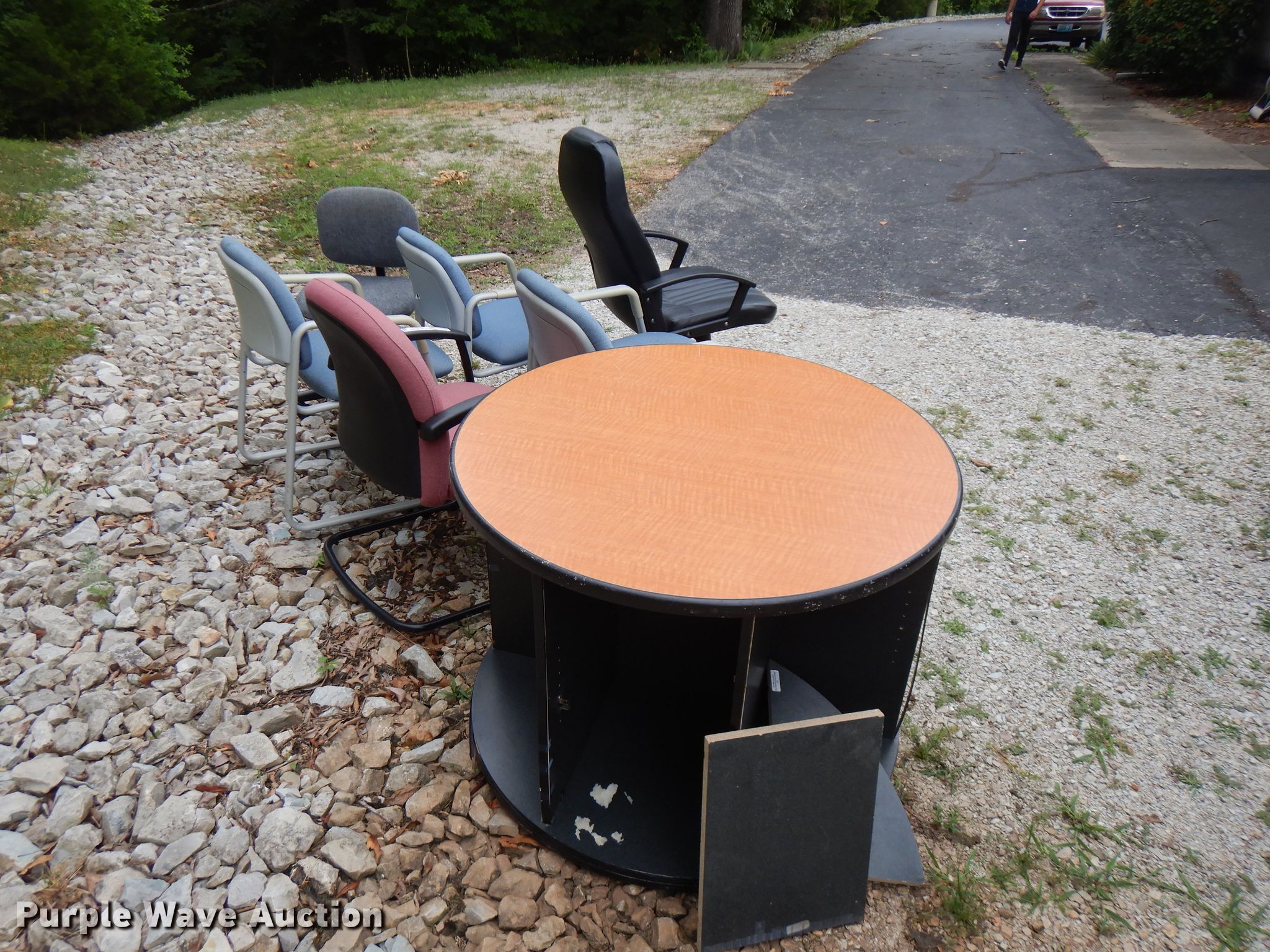 Purple Wave is selling a used Furniture in Missouri. This item is a Furniture with the following: Approx. 6 chairs, Round rotating desk