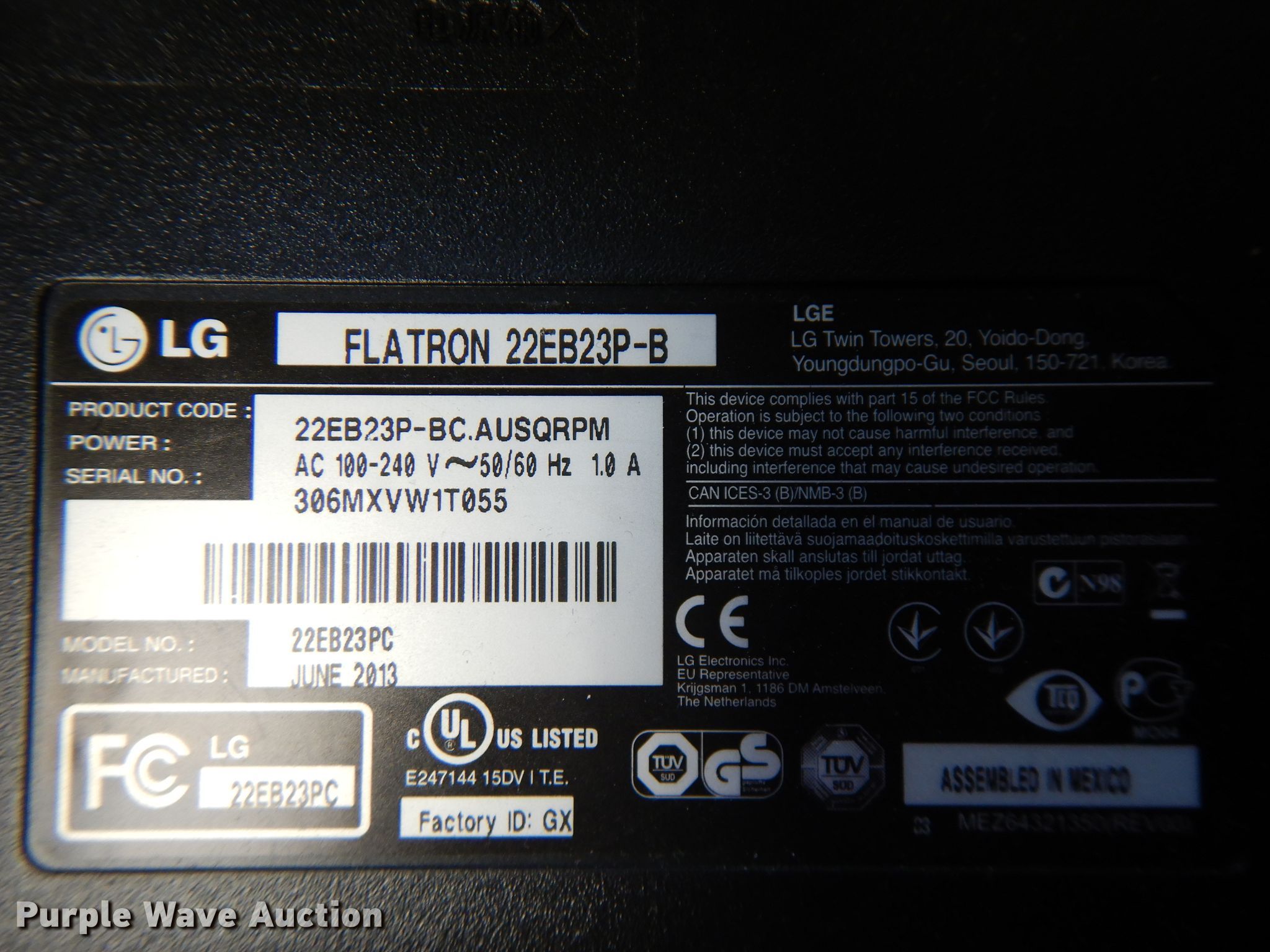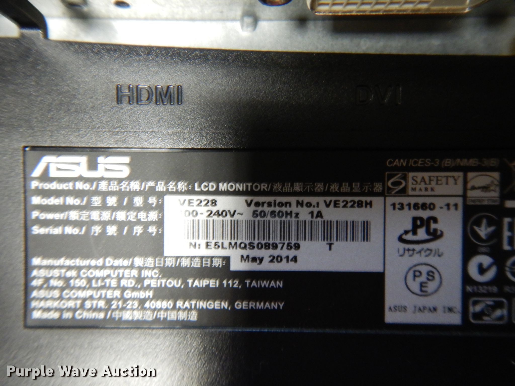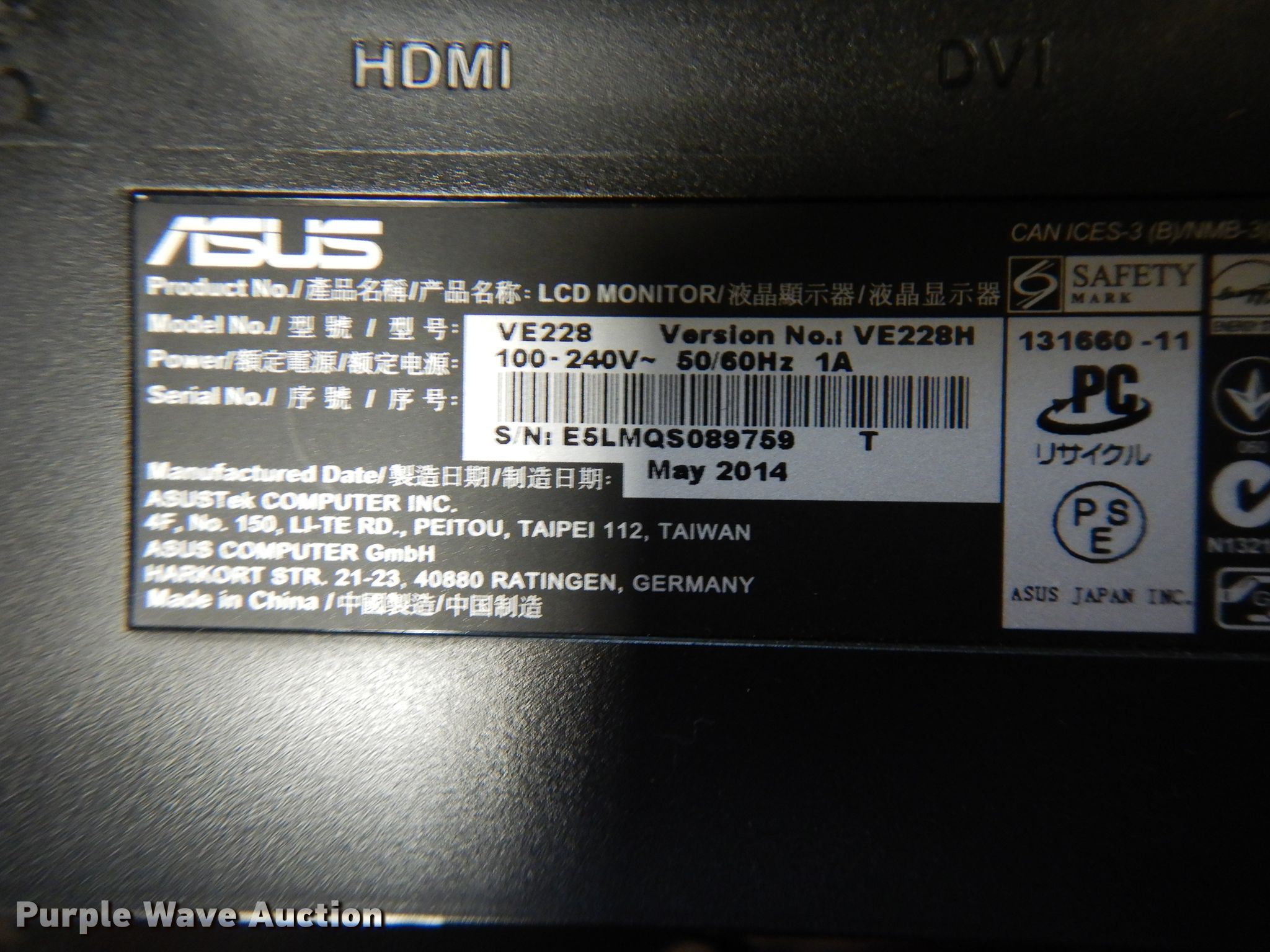 Purple Wave is selling a used Computers in Missouri. This item is a (6) monitors with the following: Asus VE228, 19", (5) LG 22EB23PC, 19", (14) 14" monitor stands