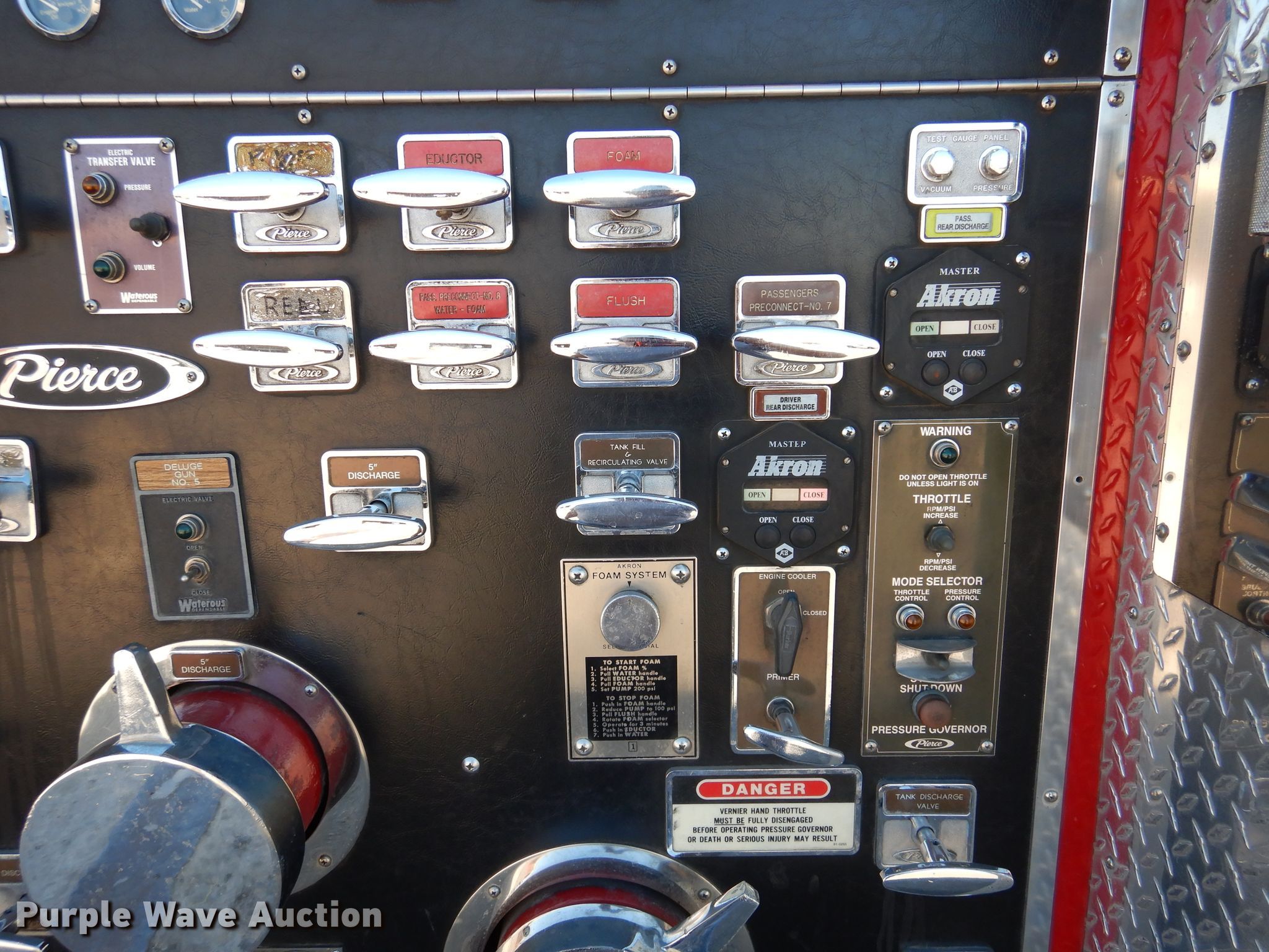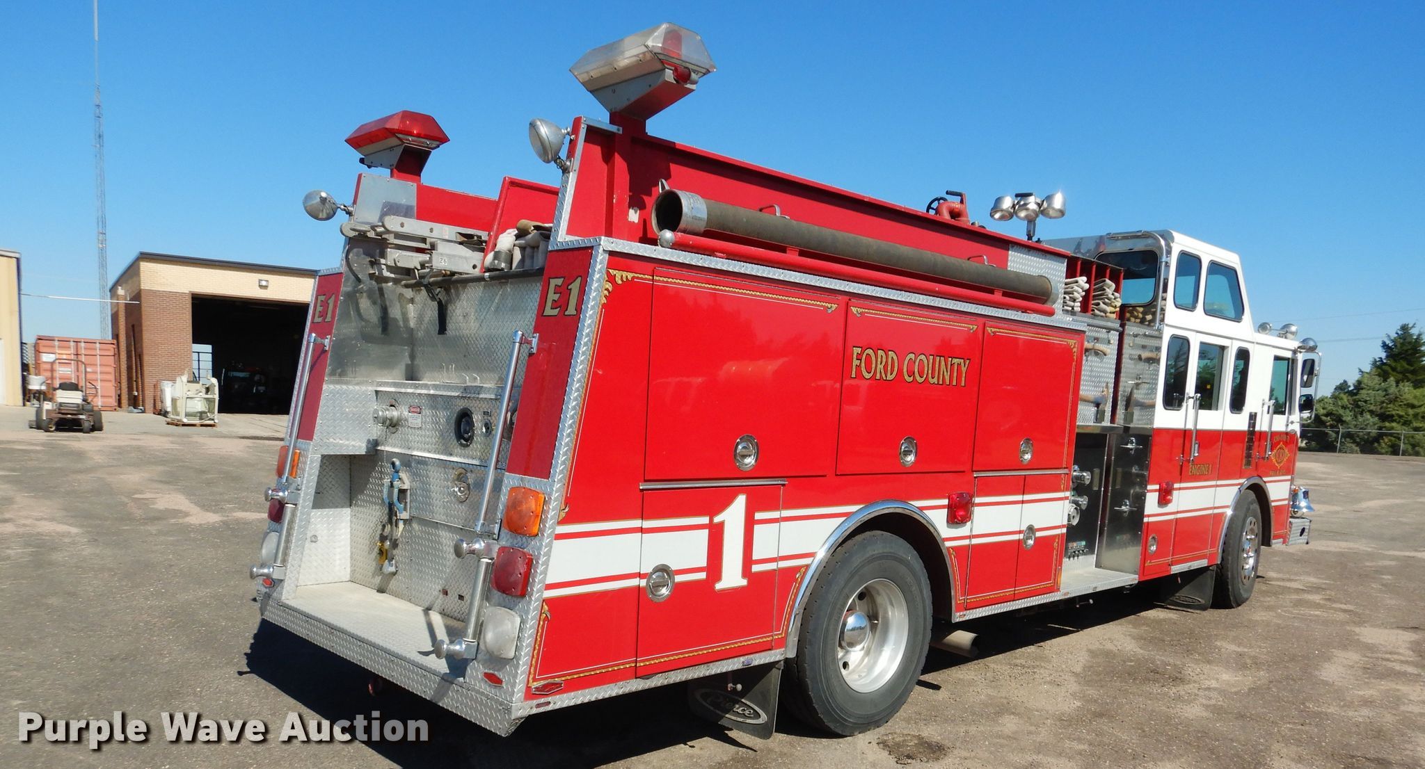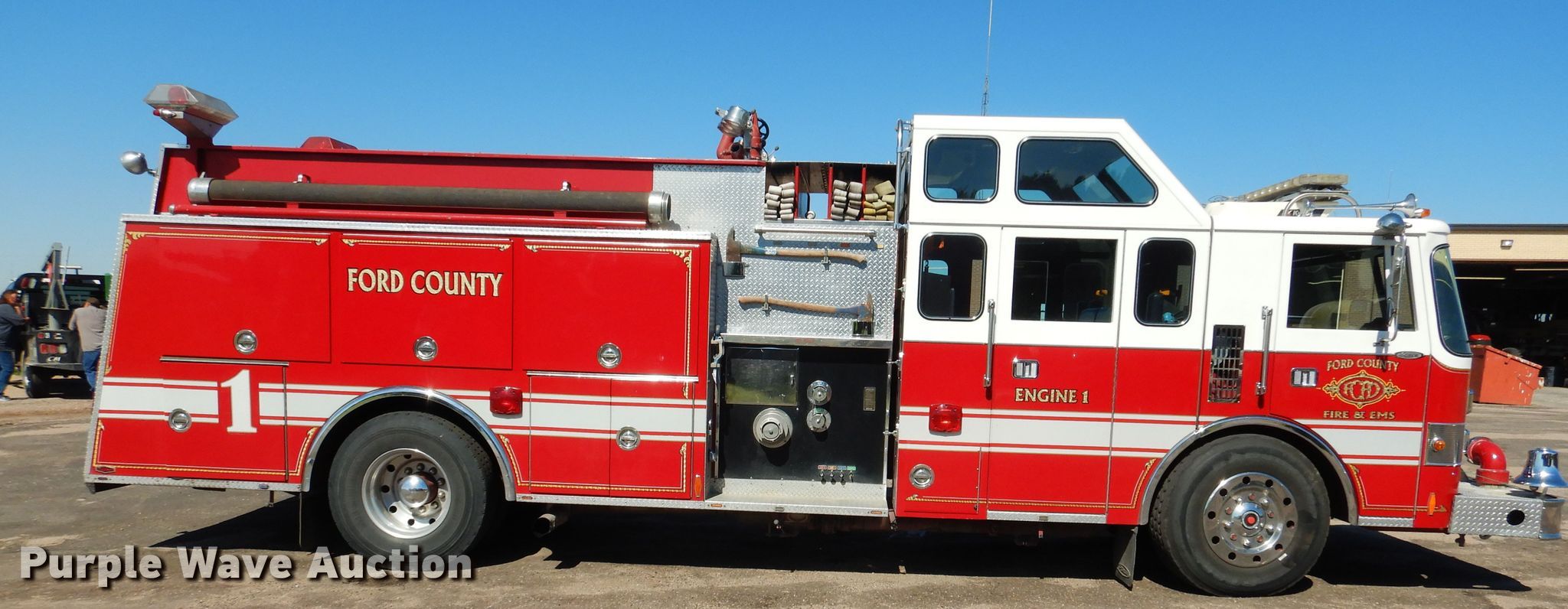 1989 Pierce Lance pumper fire truck. 52,017 miles on odometer. Engine Cummins 400, Cylinders: 6, Fuel type: Diesel. Transmission Allison HT740, Automatic. Chassis Axles: Single, Suspension: Spring, Brakes: Air, GVWR: 42,000 lbs. Interior AC, Heat, Heated mirrors. Operational Fire truck Waterous Pump 2000gpm, 1,000 gal water tank, Akron foam eductor, Deck gun plumbing in place, Preconnects: 7 (4) cross lays, (3) hose bed.. Tires Front: 12R22.5, Rear: 385/65R22.5. Notes Fire hoses not included. Kansas title. Exempt from mileage requirements. 1P9CT02K1KA040609. Ford County. 10974 113 Rd. Dodge City, KS 67801