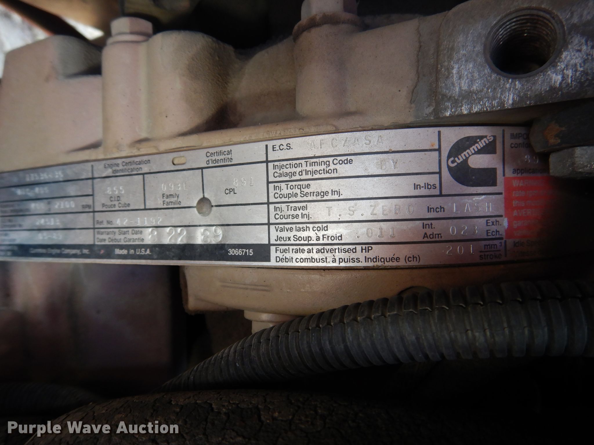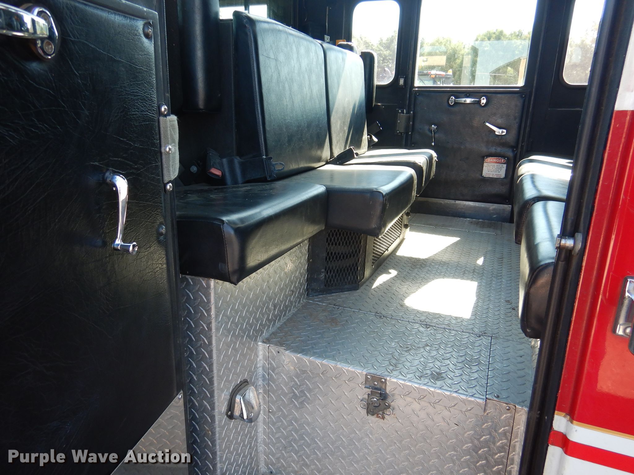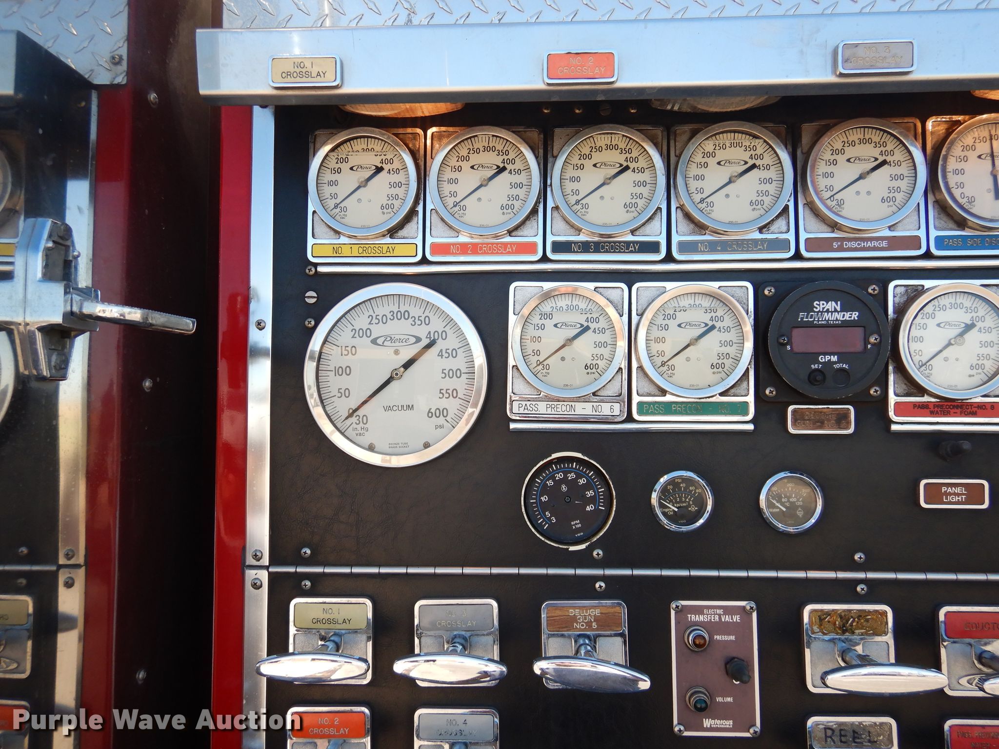 1989 Pierce Lance pumper fire truck. 52,017 miles on odometer. Engine Cummins 400, Cylinders: 6, Fuel type: Diesel. Transmission Allison HT740, Automatic. Chassis Axles: Single, Suspension: Spring, Brakes: Air, GVWR: 42,000 lbs. Interior AC, Heat, Heated mirrors. Operational Fire truck Waterous Pump 2000gpm, 1,000 gal water tank, Akron foam eductor, Deck gun plumbing in place, Preconnects: 7 (4) cross lays, (3) hose bed.. Tires Front: 12R22.5, Rear: 385/65R22.5. Notes Fire hoses not included. Kansas title. Exempt from mileage requirements. 1P9CT02K1KA040609. Ford County. 10974 113 Rd. Dodge City, KS 67801