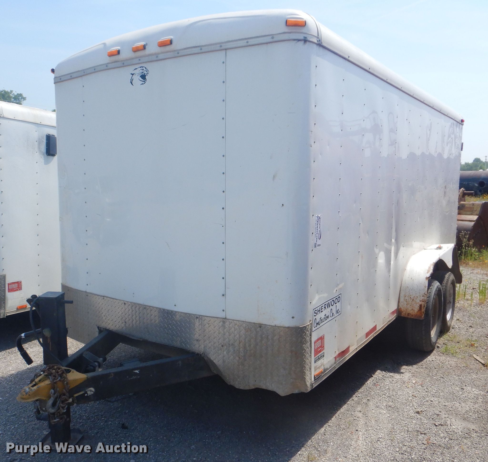 2007 Forest River enclosed cargo trailer. 20'L overall, 16.5'L x 8'W cargo body, Wood deck, Single leg landing gear, 2 5/16" ball hitch, Spring suspension, Electric brakes, Tandem axle, ST225/75R15 tires, GVWR 7,000 lbs, GAWR 3,500 lbs. Oklahoma title. 5NHUTB6207Y055019. Sherwood Construction. 5407 N 145th E Ave. Owasso, OK 74055